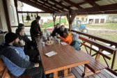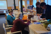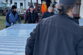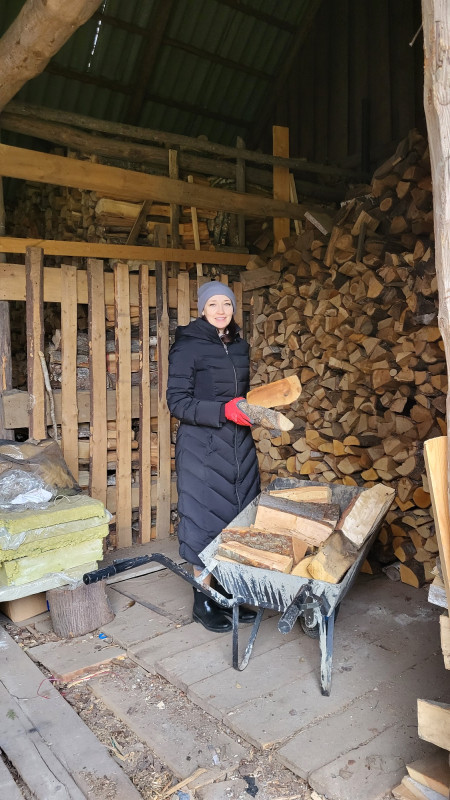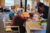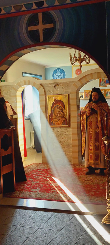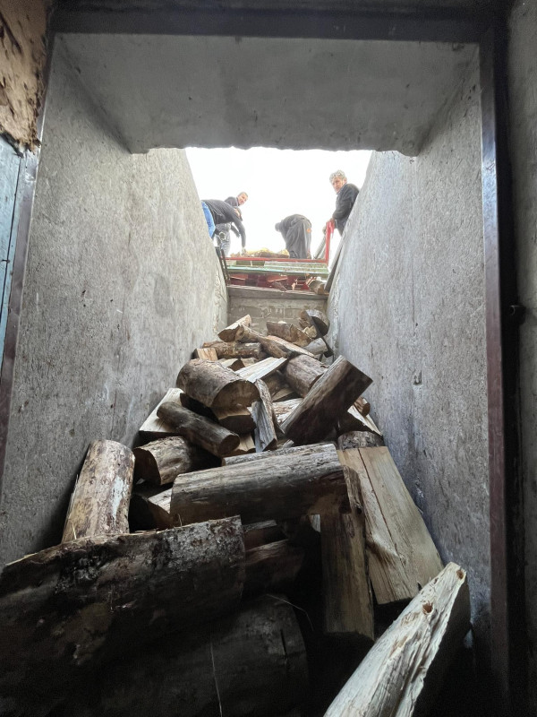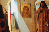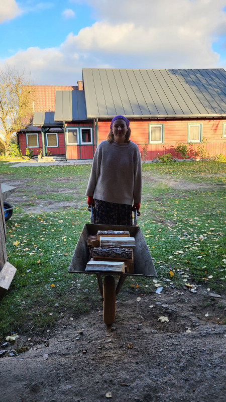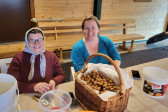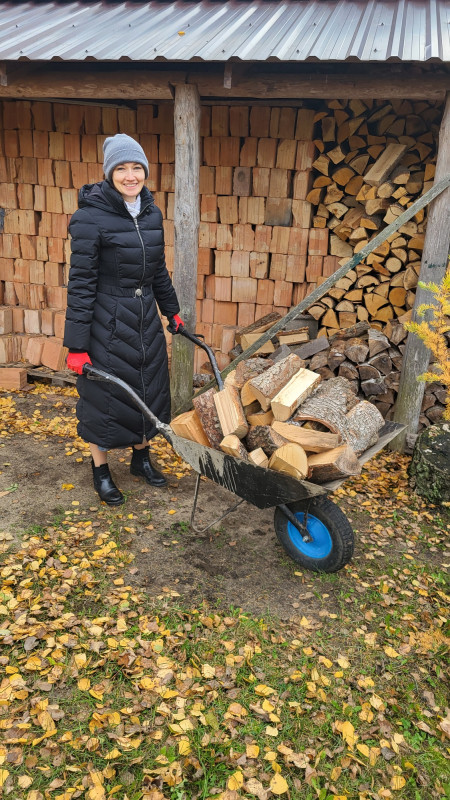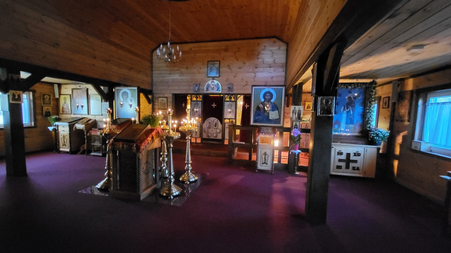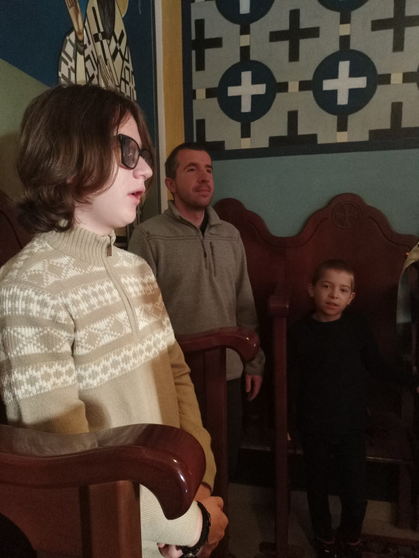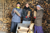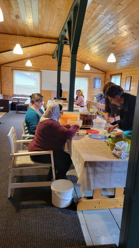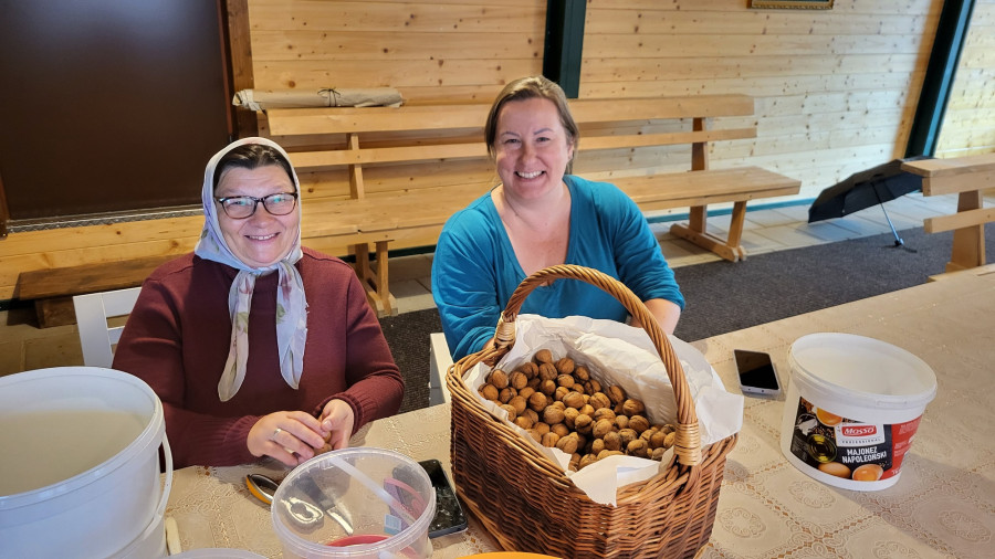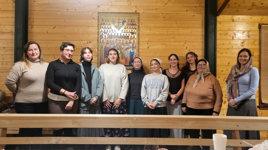 Wraz z biciem monasterskich dzownów opuściłyśmy nasze monasterskie kielie i udaliśmy się do cerkwi na Św. Liturgię. Po nabożeństwie Siostry ugościły nas śniadaniem. Naładowani duchowo i fizycznie ruszyliśmy do posłuszanij. Podzielono nas na grupy, które kolejno zajęły się przecieraniem i czyszczeniem desek na nowe ikony z monasterskiej pracowni. W klasztornej kuchni obierano i czyszczono orzechy oraz pigwę. Natomiast na monasterkim podwórzu szykowano i przewożono drewno na opał. Każdej tej czynności towarzyszyły nam Siostry, którym zadawane były liczne pytania o życie monastyczne. Po pracy czekał na nas pyszny monasterski obiad. Po posiłku mogłyśmy wejść do nowopowstałej cerkwi św. Katarzyny i obejrzeć postępy prac.