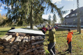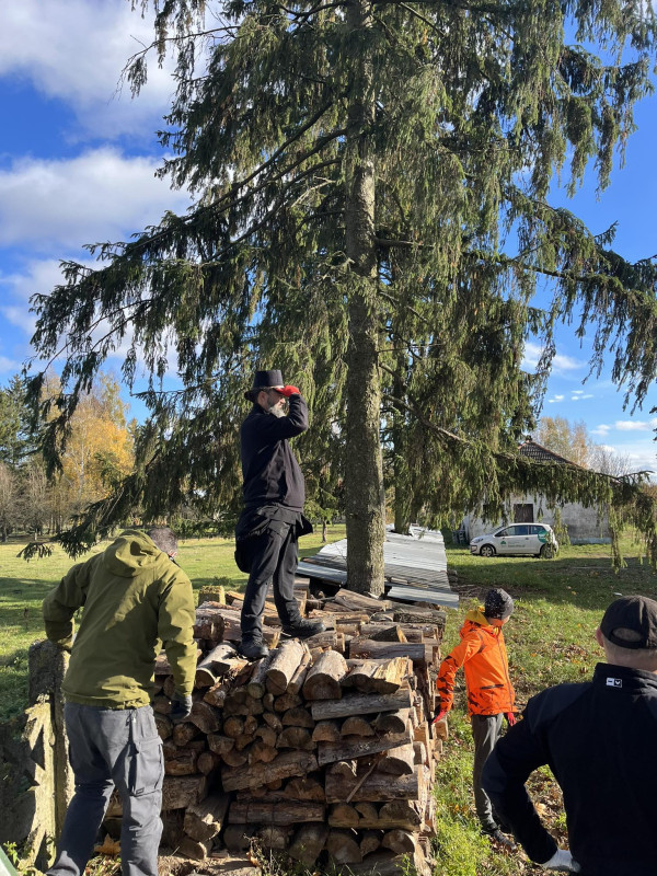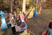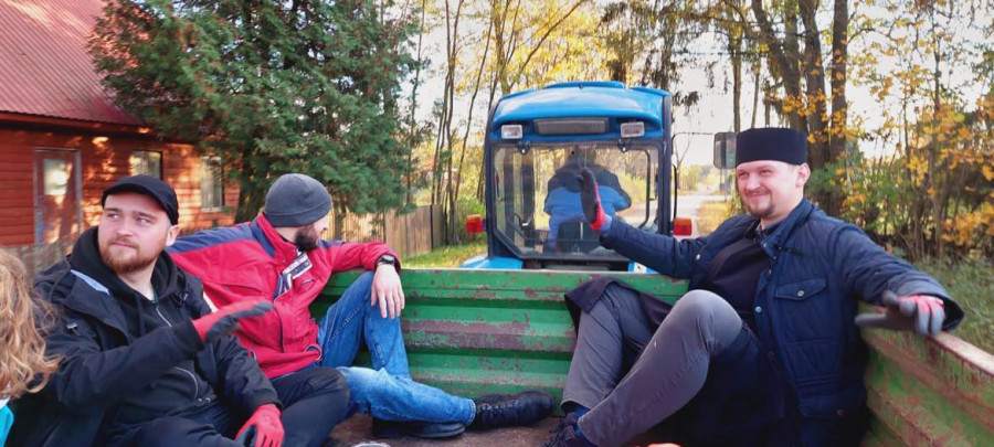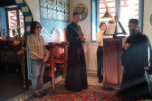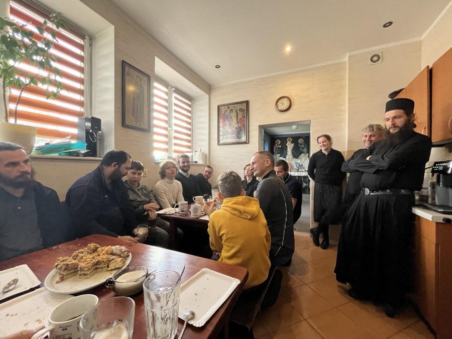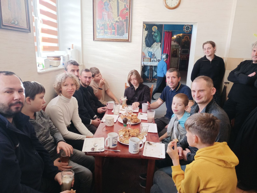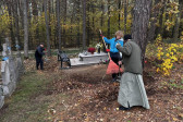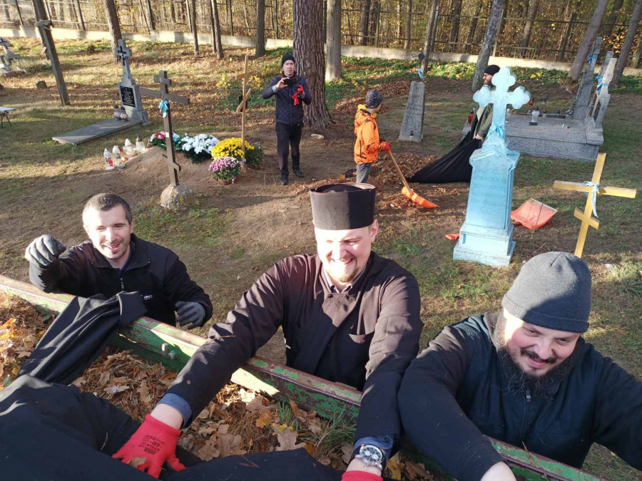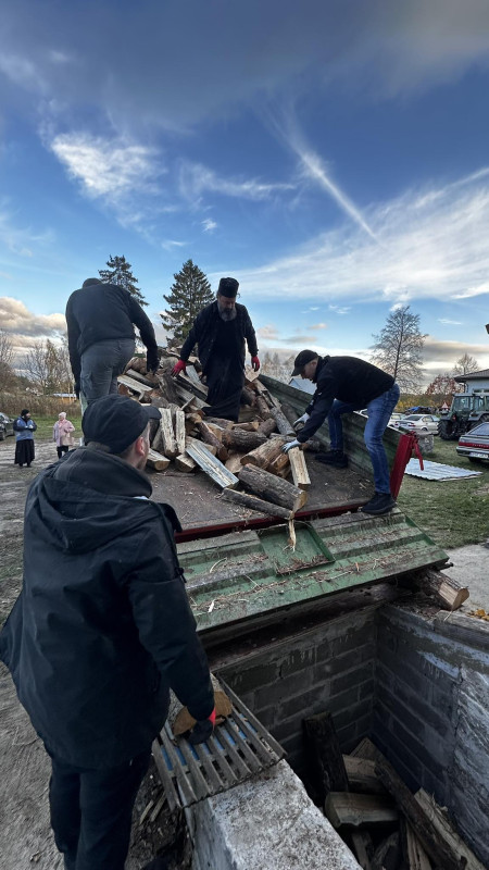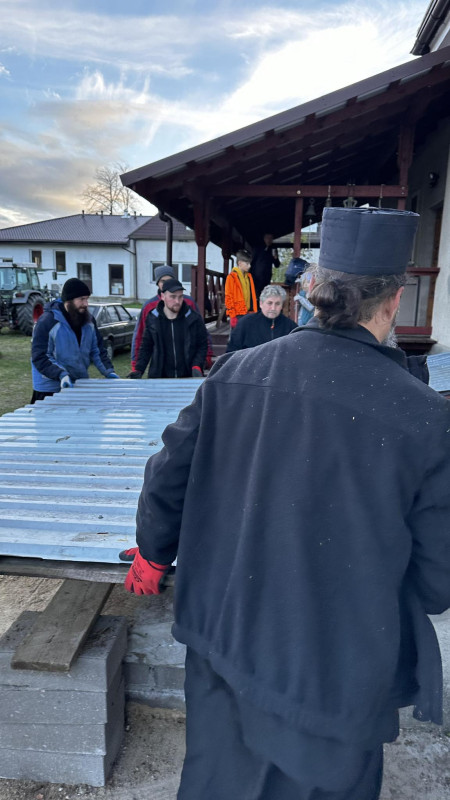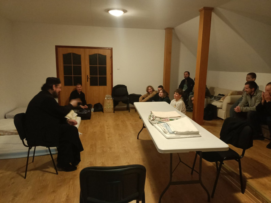 Sobotni słoneczny poranek rozpoczęliśmy od wspólnej modlitwy podczas św. Liturgii w cerkwi św. Nekatariusza. Tego dnia zanoszono szczególne modlitwy za dusze zmarłych, gdyż była to rodzicielska dmitrewskaja subbota. Po nabożeństwie Bracia ugościli nas kawą i herbatą oraz monasterskimi wypiekami i po krótkim odpoczynku w swoich pokojach był to wstęp do obiadu. Naładowani duchowo i fizycznie ruszyliśmy do posłuszanij. Liczną grupę mężczyzn podzielono na 3 zespoły, które kolejno zajęły się sprzątaniem otoczenia cerkwi św. Dymitra, podwórza monasterskiego oraz przewozem opału do monasterskiej kotłowni. Każdej grupie dowodził jeden z Ojców klasztoru, dzięki czemu mogliśmy rozmawiać o życiu monastycznym, jak i o przyziemnych potrzebach i planach Braci klasztoru. Dla niektórych młodych ludzi był to pierwszy kontakt z prawosławnym monastycyzmem. Po posłuszaniju przed samym wyjazdem Ojcowie ugościli nas swoimi tradycyjnymi wyrobami, czyli serami monasterskimi.
