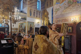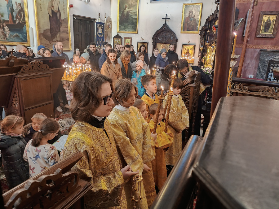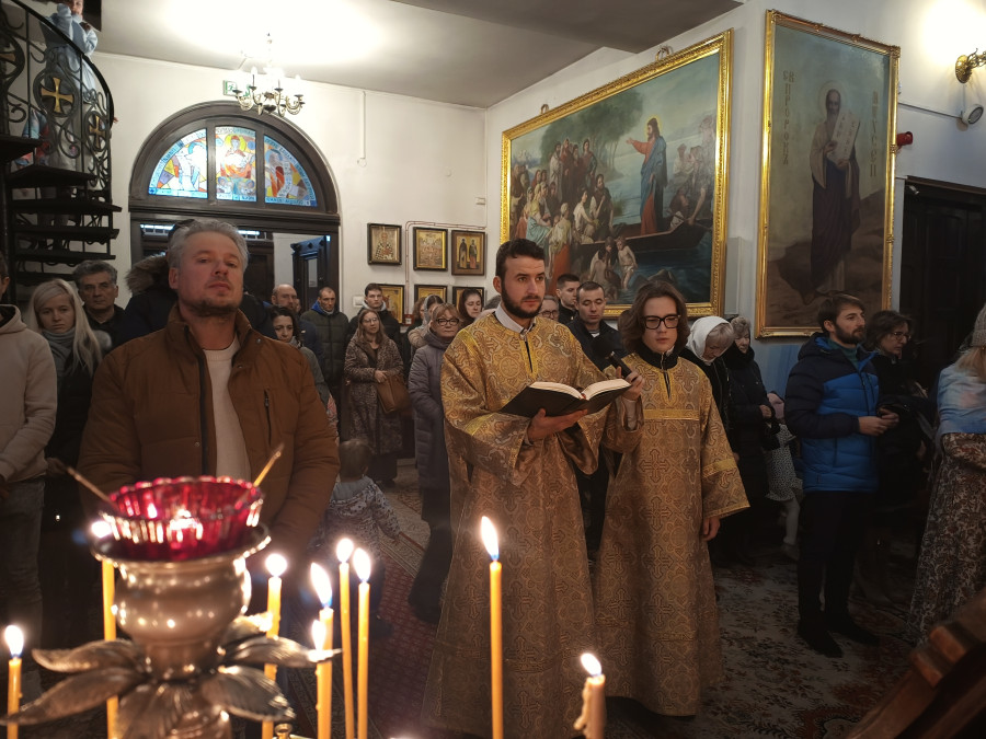W naszej parafii w ten niedzielny, listopadowy poranek (26.11.2023 r.) odbyły się trzy Boskie Liturgie: o godz. 7.00, 8.30 oraz 10.00. Po głównej służbie duchowni wyszli na środek świątyni pokłonić się ikonie św. Jana Chryzostoma, którego pamięć dzisiaj wspominamy. Na koniec proboszcz parafii, ks. Adam Misijuk pozdrowił wszystkich zebranych i życzył błogosławieństwa Bożego na cały tydzień. Po wszystkich nabożeństwach były rozdawane czotki uświęcone na św. Górze Atos.