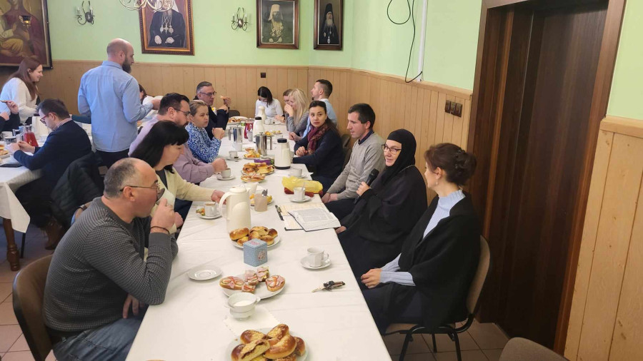 Po drugiej i trzeciej liturgii w sali parafialnej odbyły się spotkania z m. Katarzyną, ihumenią Monasteru św. Katarzyny w Zaleszanach. Tematem spotkań było historie z życia św. Jana Chryzostoma i św. proroka Daniela. Na zakończenie głos zabrał ks. Adam Misijuk dziękując matuszce za piękną naukę, która z pewnością przyda się słuchaczom w tracie postu.