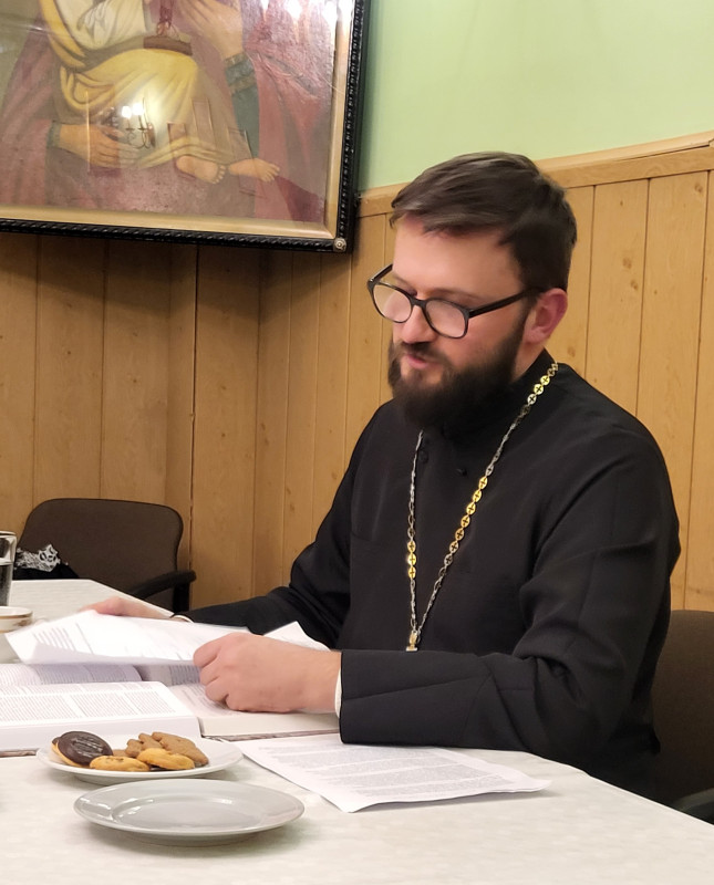 Wykład prowadził ks. Remigiusz Sosnowy, który dołożył wielu starań aby w sposób ciekawy i obszerny przybliżyć postać króla i proroka Dawida, świętego Starego Testamentu, a protoplastę rodu z którego narodził się Chrystus. Przedstawił czas młodości, kiedy to wręcz niezauważalny pasterz Dawid syn Jessego przeistacza się w odważnego zwycięskiego dowódcę oddziału króla Saula (X wiek przed Chrystusem). Król Dawid stał się dla ludu Izraela symbolem mesjańskim potwierdzonym przez proroka Samuela. Pierwsza Księga Samuela, opisuje : „Wziął więc Samuel róg z oliwą i namaścił go pośrodku jego braci. Począwszy od tego dnia, duch Pański opanował Dawida…”(1Sm16,13). Czyn namaszczenia jest dotychczas zachowany w obecnej prawosławnej liturgice jako miropomazanije.