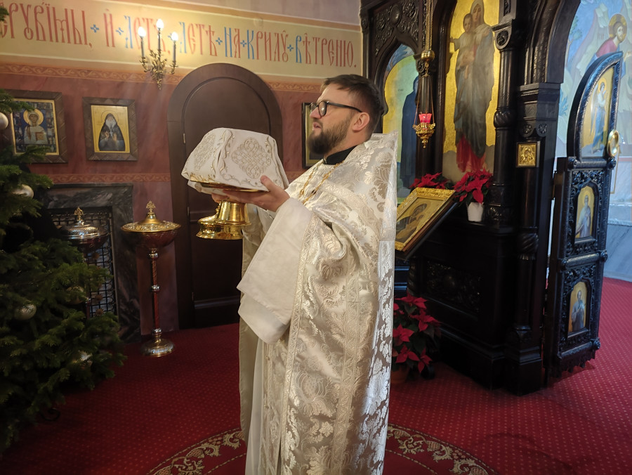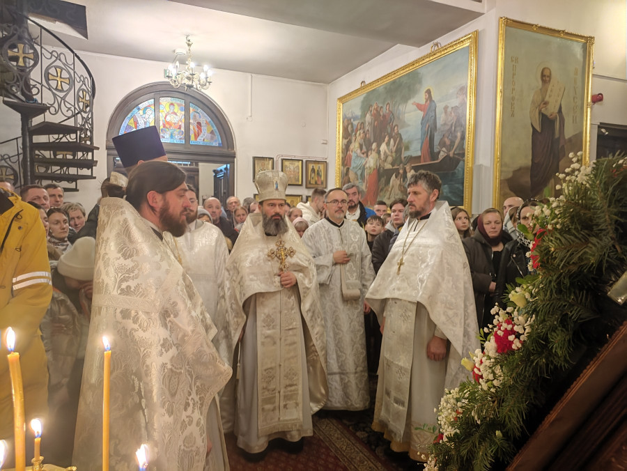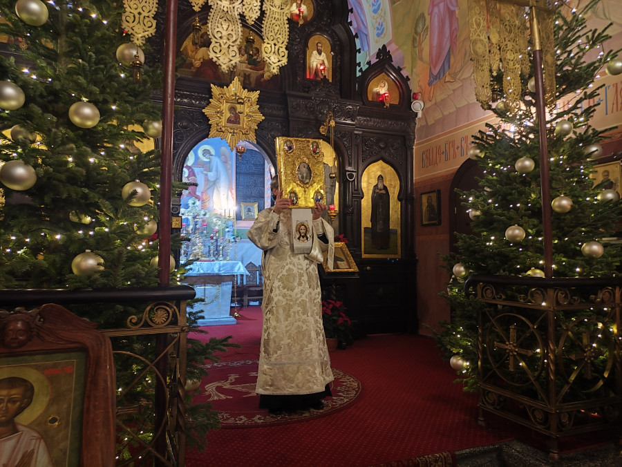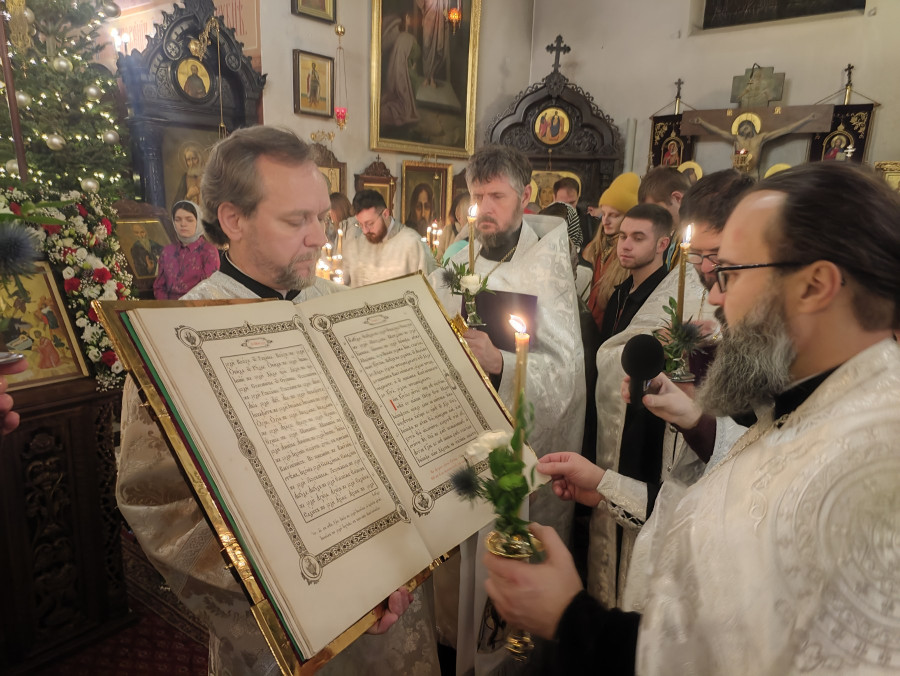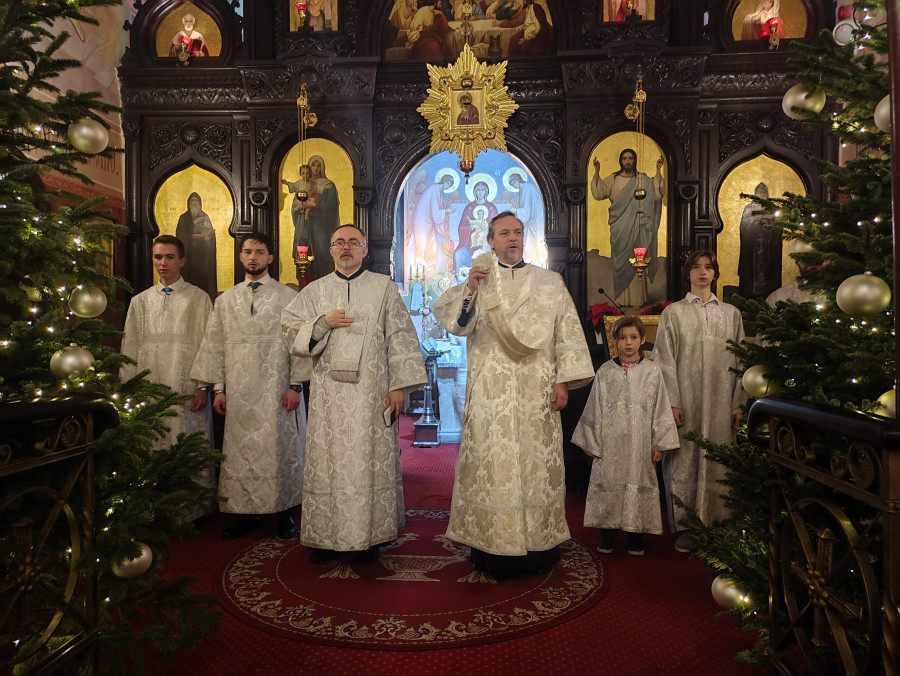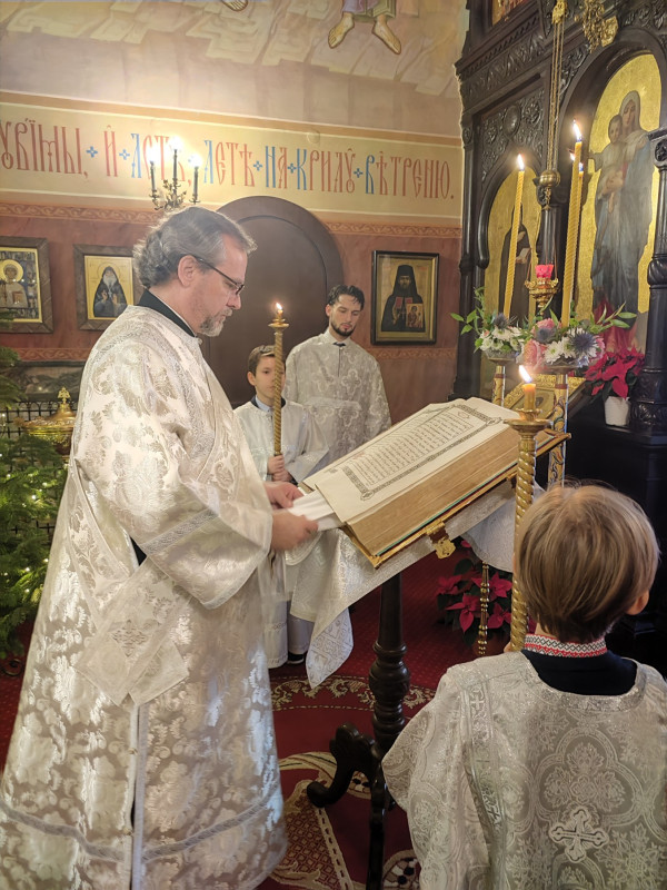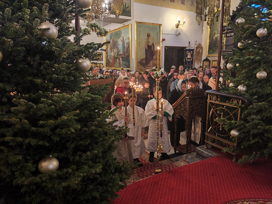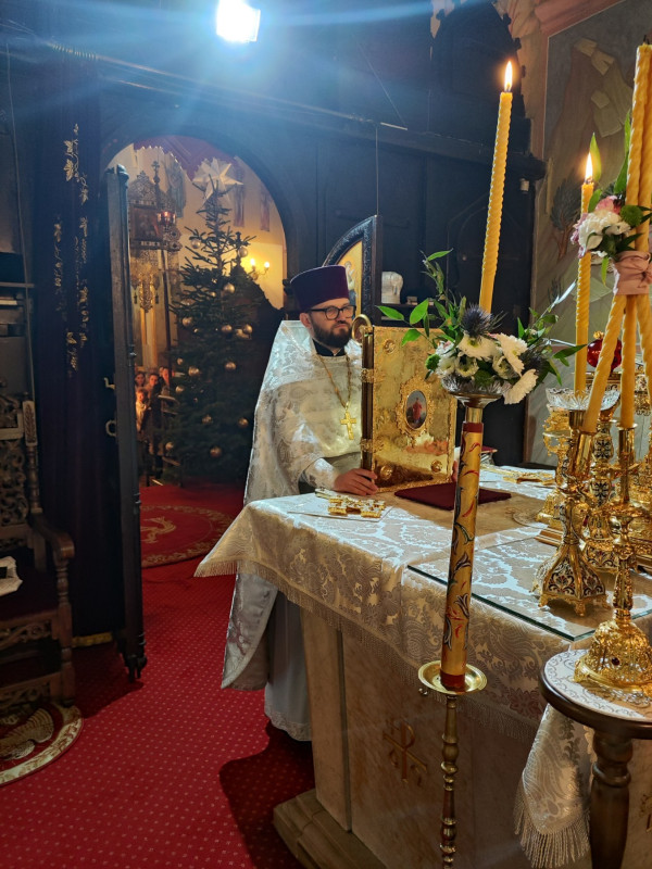 W naszej parafii świętowanie rozpoczęliśmy o 22.00 (06.01.2024 r.) od całonocnego czuwania składającego się z powieczerza oraz jutrzni, a następnie odsłużona została Boska Liturgia św. Bazylego Wielkiego. Dla tych, którzy nie mogli przybyć, kolejna Liturgia odbyła się o 9.00. Na koniec obydwu nabożeństw głos zabrał proboszcz parafii, ks. Adam Misijuk, który złożył wszystkim zebranym serdeczne życzenia bożonarodzeniowe.