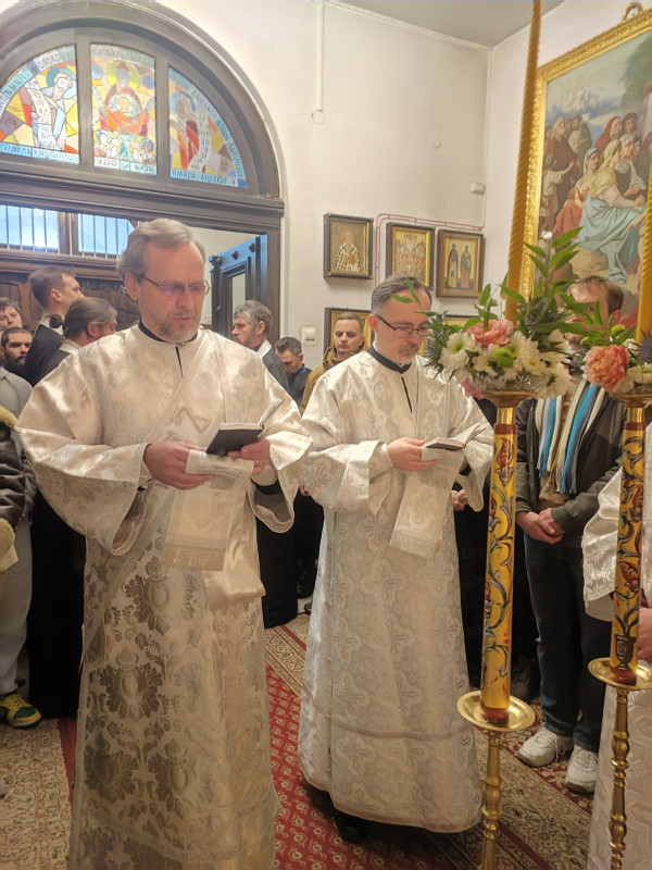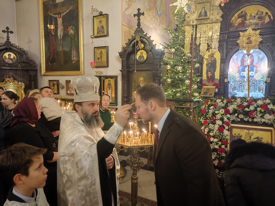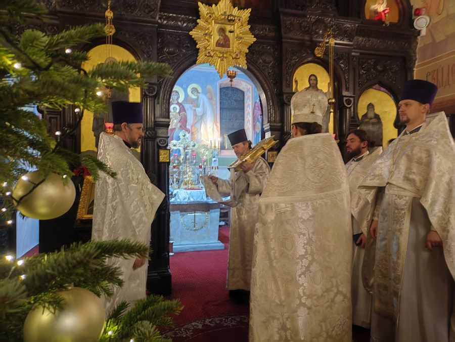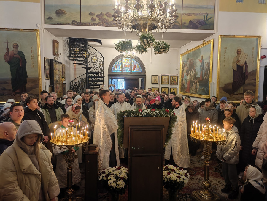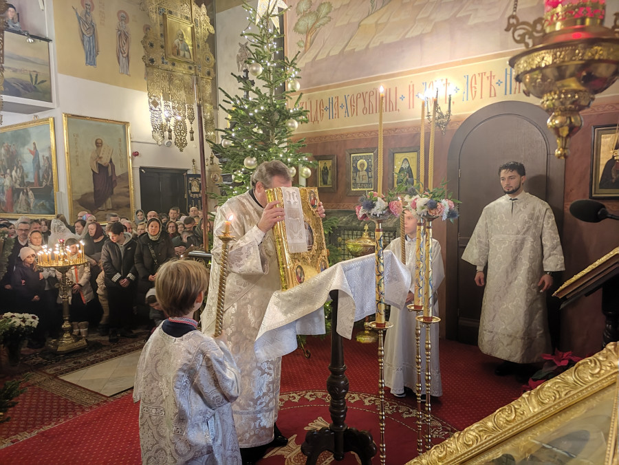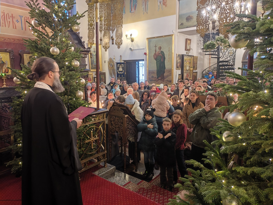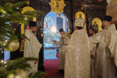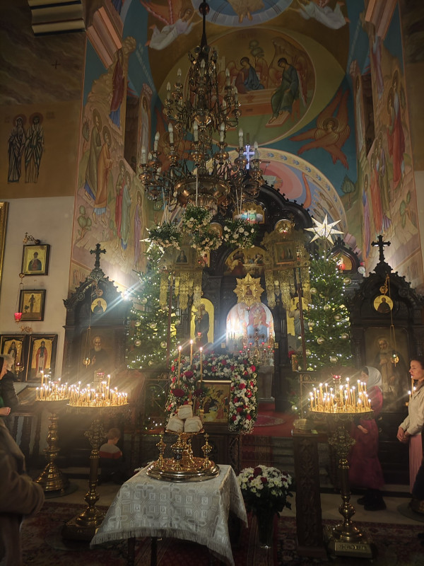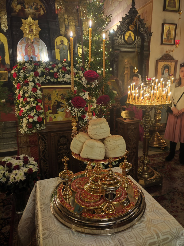 W naszej parafii świętowanie rozpoczęliśmy o 22.00 (06.01.2024 r.) od całonocnego czuwania składającego się z powieczerza oraz jutrzni, a następnie odsłużona została Boska Liturgia św. Bazylego Wielkiego. Dla tych, którzy nie mogli przybyć, kolejna Liturgia odbyła się o 9.00. Na koniec obydwu nabożeństw głos zabrał proboszcz parafii, ks. Adam Misijuk, który złożył wszystkim zebranym serdeczne życzenia bożonarodzeniowe.