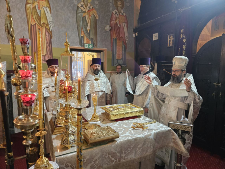 W naszej świątyni odbyły się w ten niedzielny poranek 3 Boskie Liturgie: o godz. 7.00, 8.30 oraz 10.00. Po głównej Liturgii wszyscy duchowni wyszli na środek cerkwi, aby pokłonić się ikonie św. Bazylego Wielkiego, zaś proboszcz parafii, ks. Adam Misijuk, pozdrowił świątecznie wszystkich zebranych oraz życzył błogosławionej niedzieli.