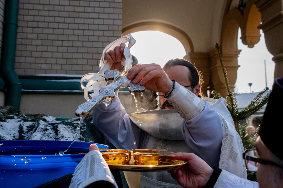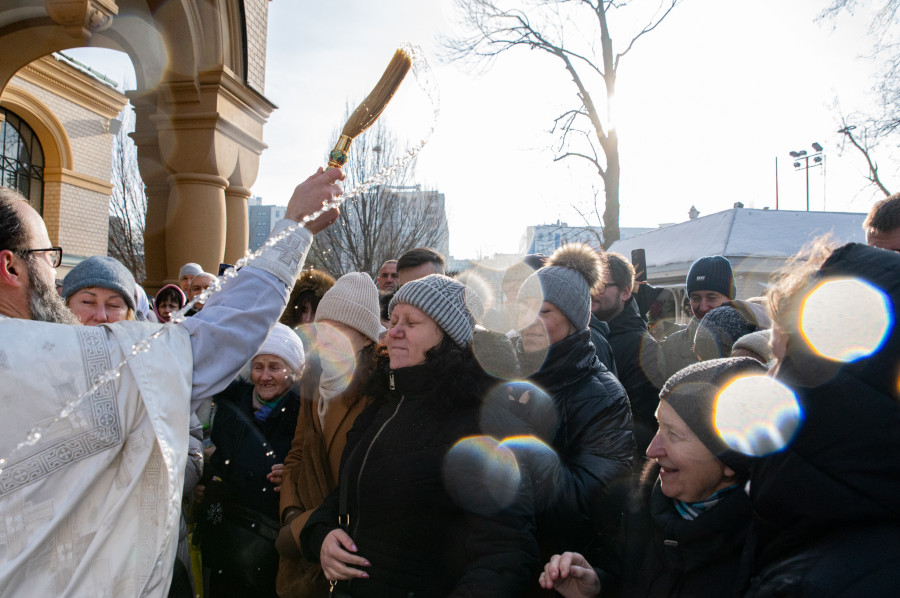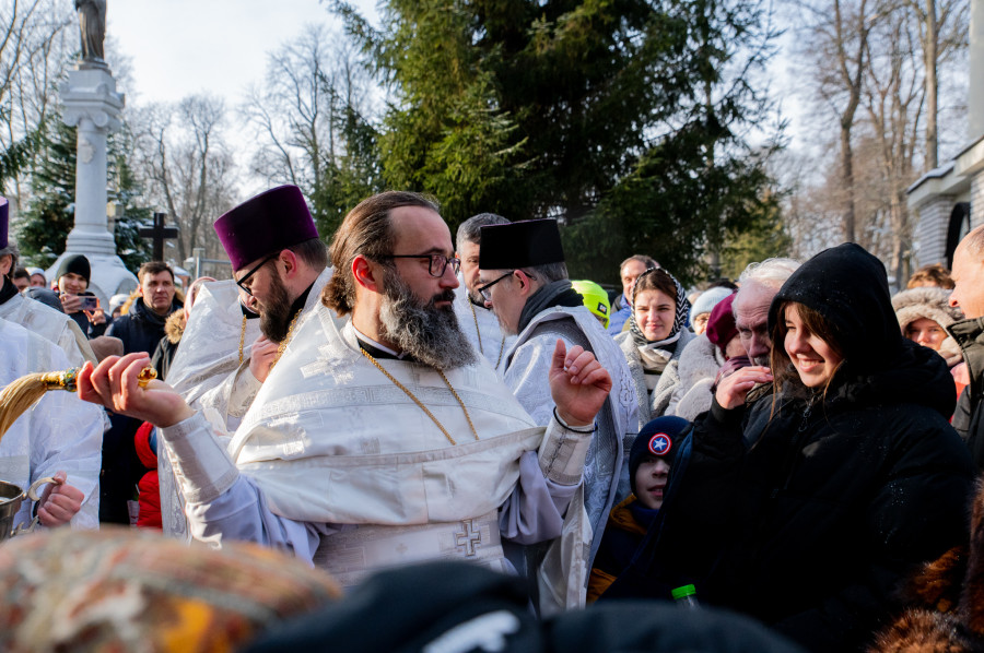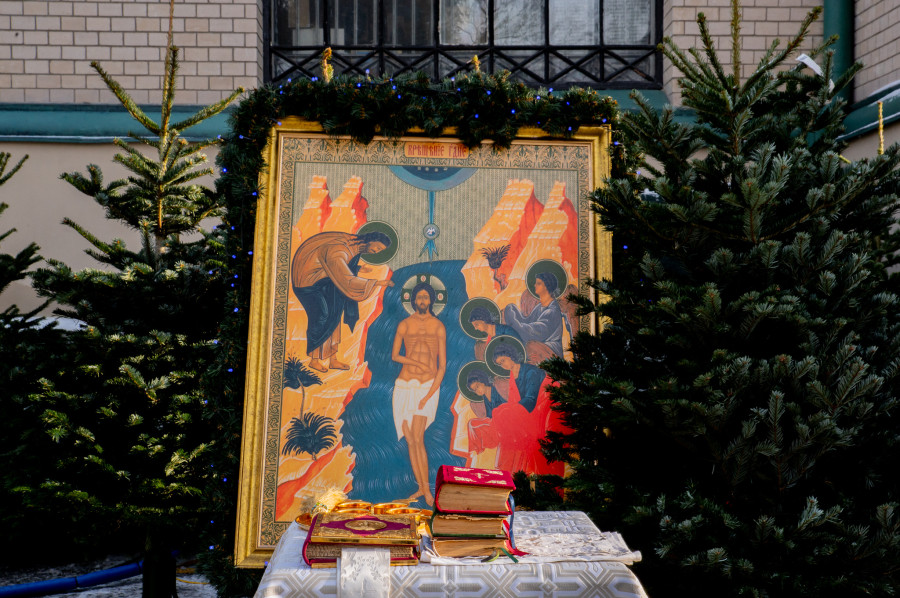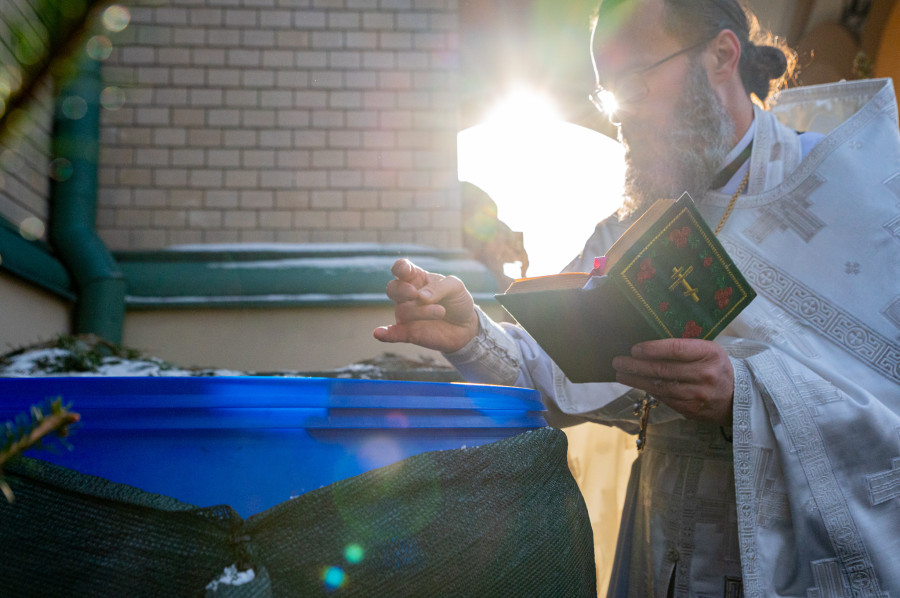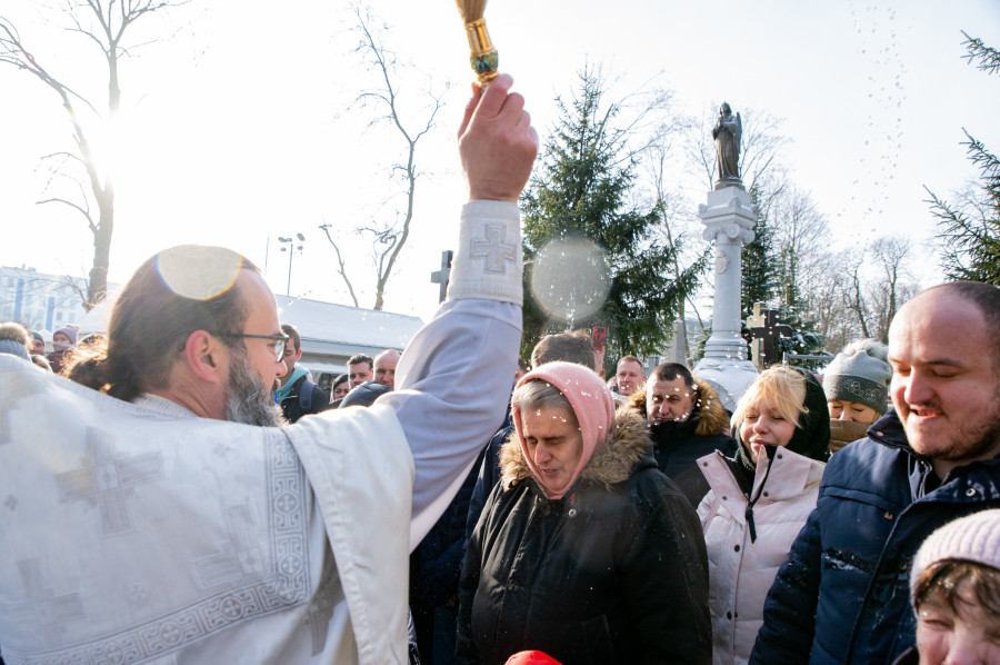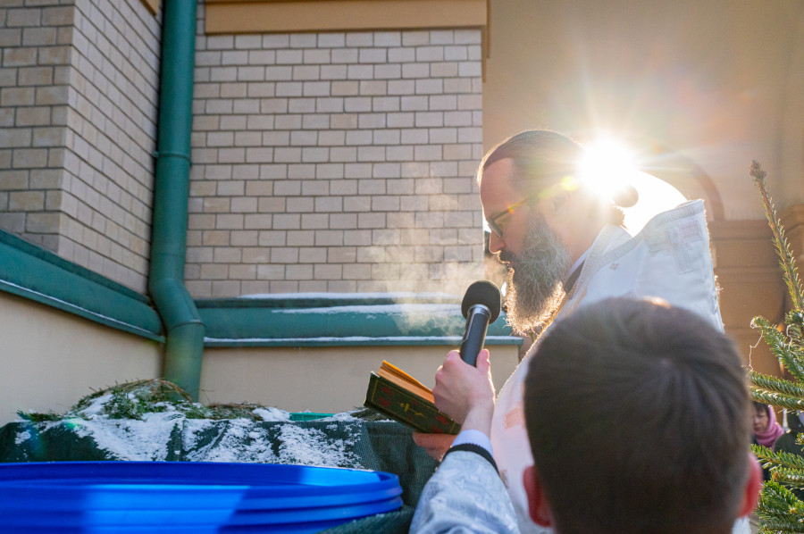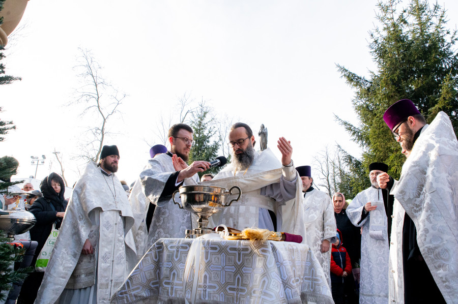 Bezpośrednio po liturgii miało miejsce Wielkie poświęcenie wody na podwórzu przed cerkwią. Przy trzykrotnym pogrążaniu krzyża w zbiorniku z wodą i śpiewie troparionu Epifanii zostały wypuszczone w niebo białe gołąbki – symbol czystości i obecności Ducha Świętego w momencie chrztu Chrystusa w Jordanie.