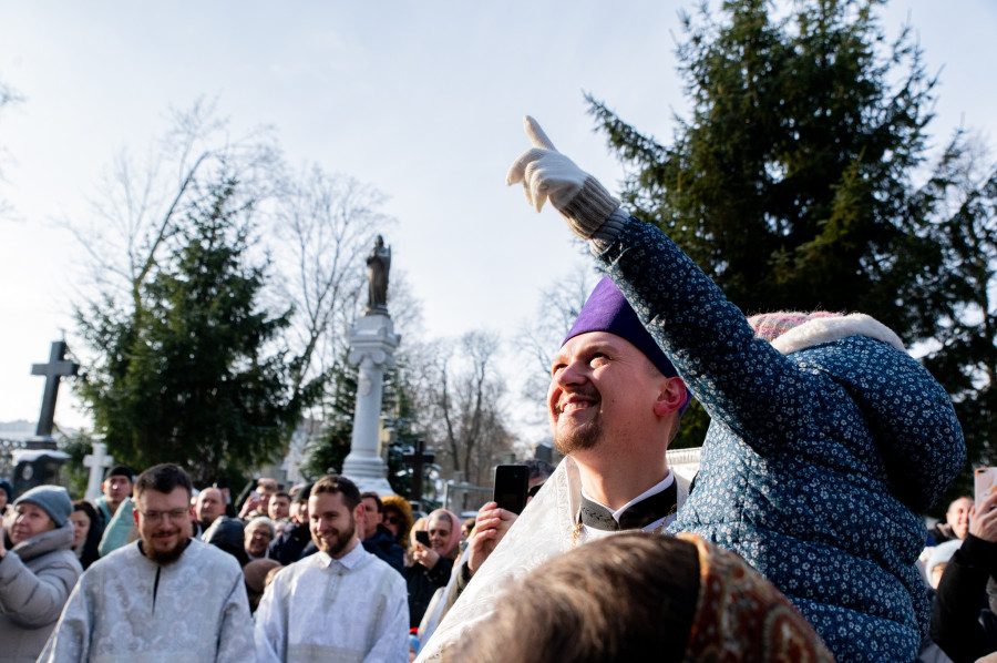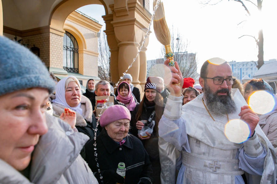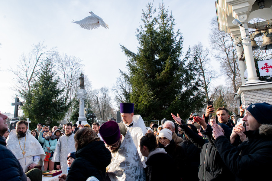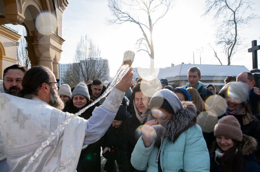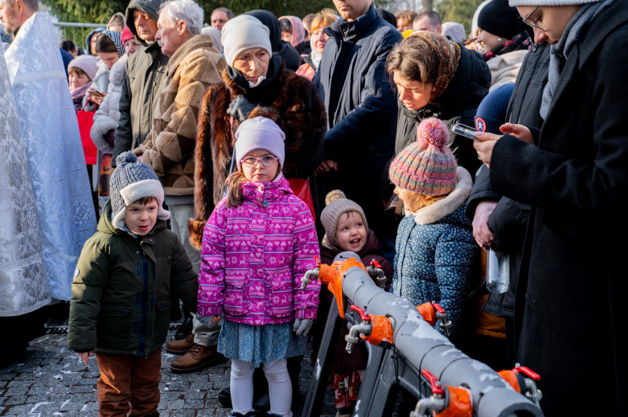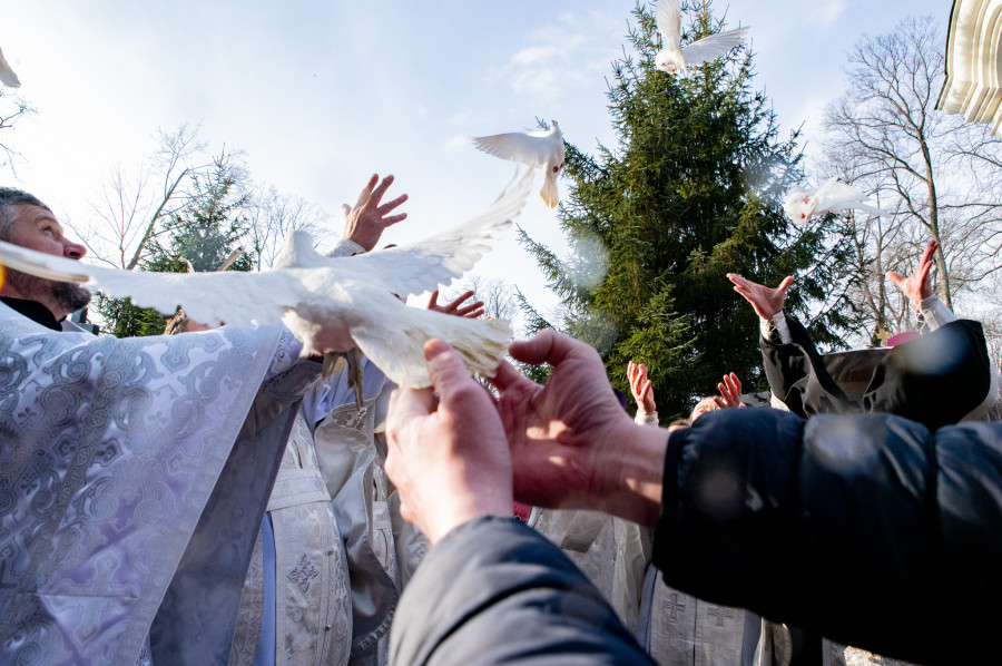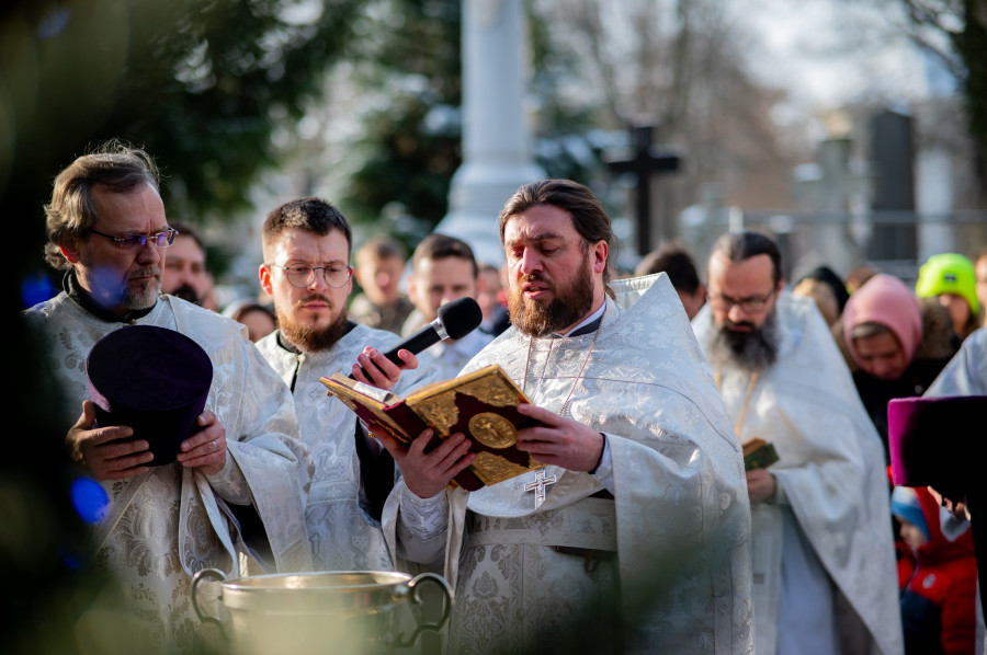 Bezpośrednio po liturgii miało miejsce Wielkie poświęcenie wody na podwórzu przed cerkwią. Przy trzykrotnym pogrążaniu krzyża w zbiorniku z wodą i śpiewie troparionu Epifanii zostały wypuszczone w niebo białe gołąbki – symbol czystości i obecności Ducha Świętego w momencie chrztu Chrystusa w Jordanie.
