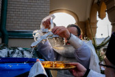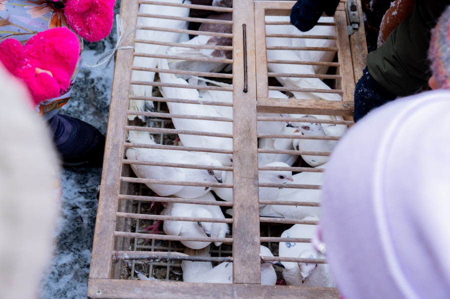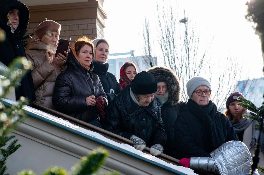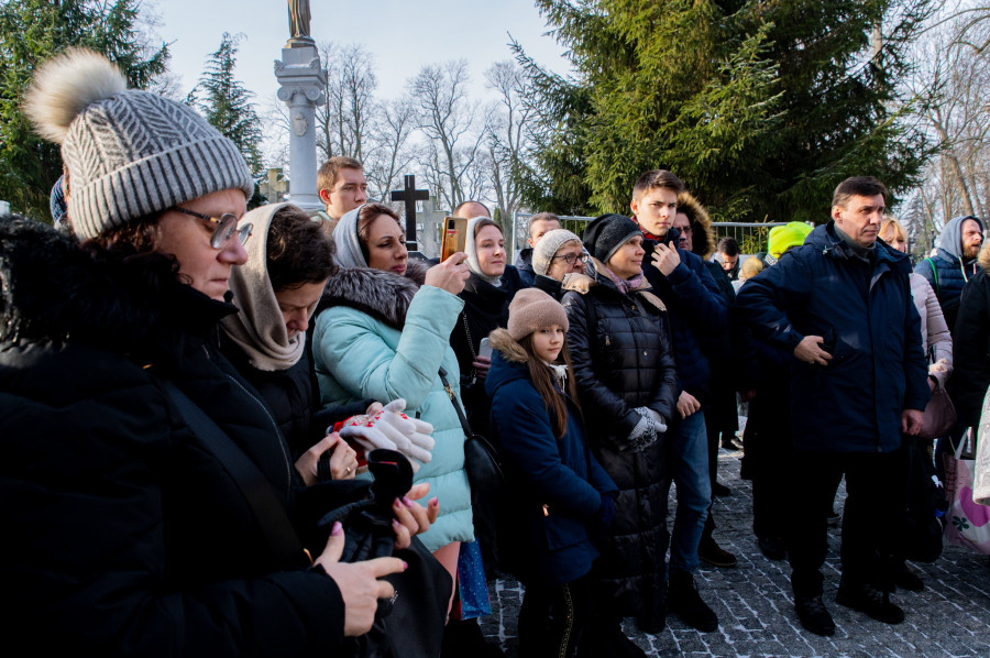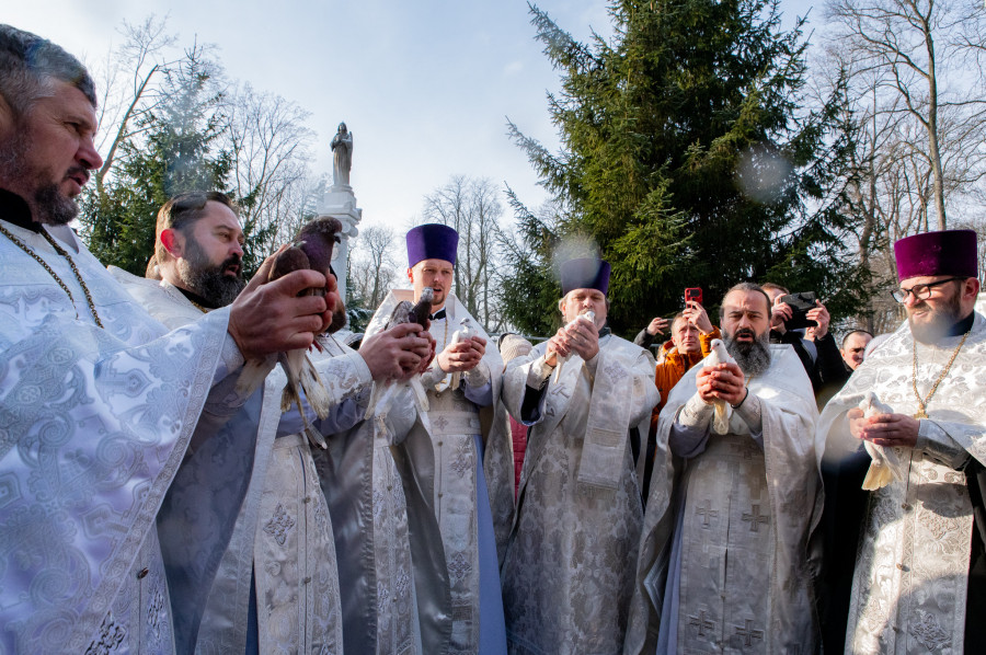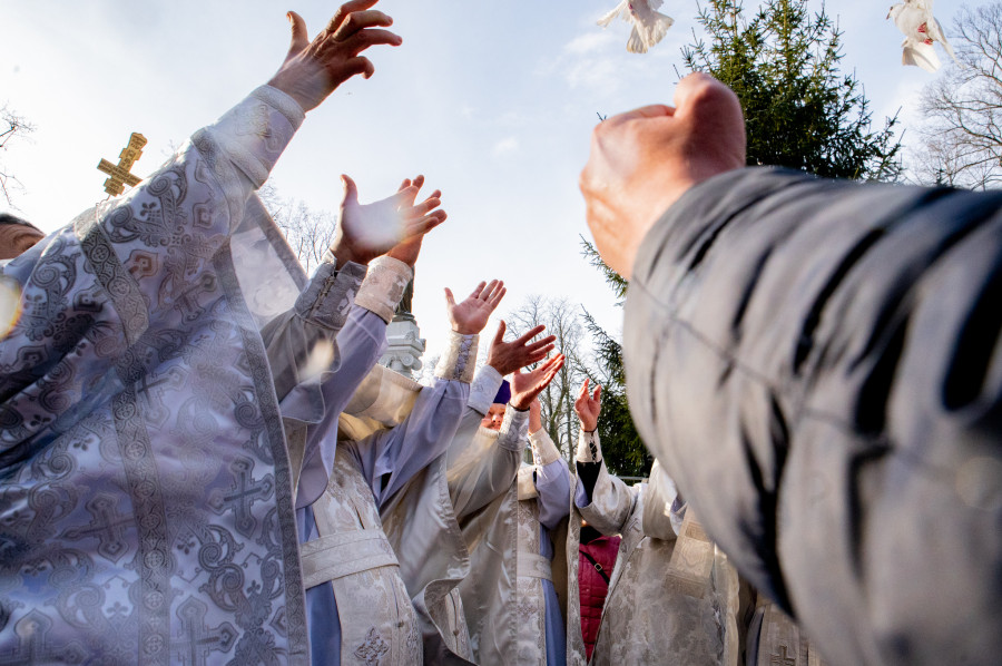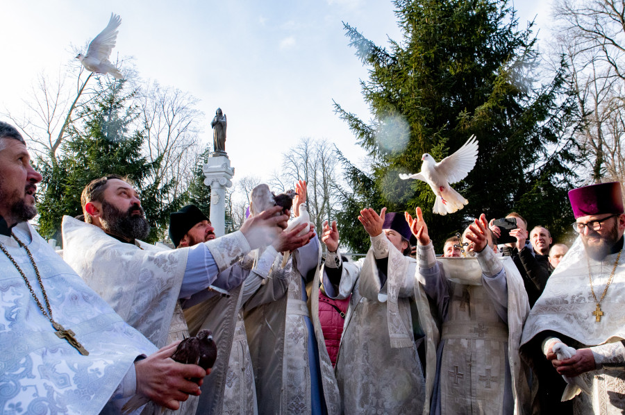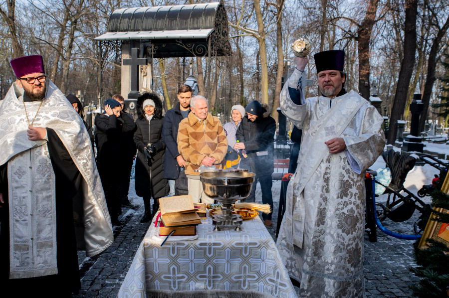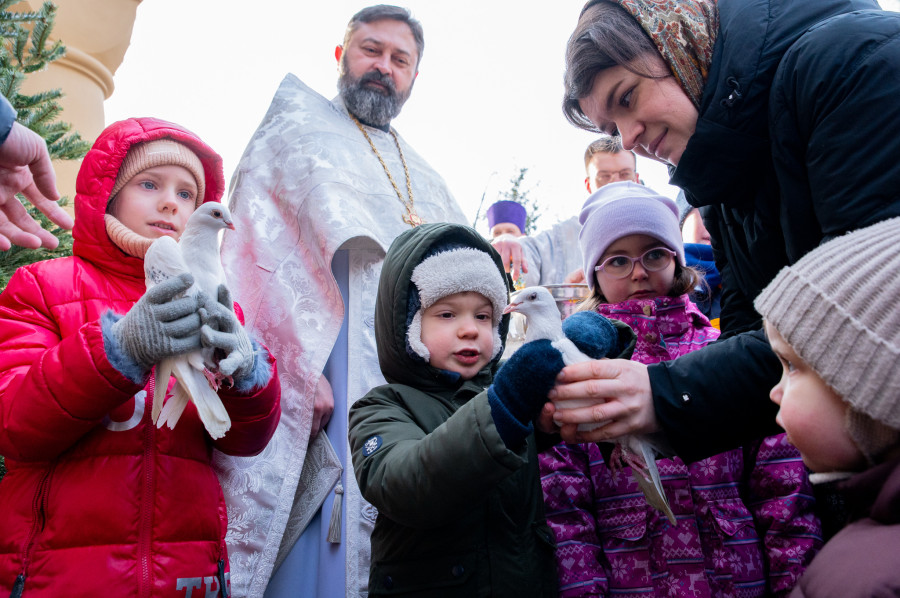 Bezpośrednio po liturgii miało miejsce Wielkie poświęcenie wody na podwórzu przed cerkwią. Przy trzykrotnym pogrążaniu krzyża w zbiorniku z wodą i śpiewie troparionu Epifanii zostały wypuszczone w niebo białe gołąbki – symbol czystości i obecności Ducha Świętego w momencie chrztu Chrystusa w Jordanie.
