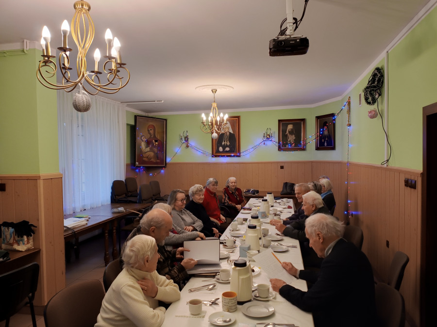 24 stycznia 2024 r. w naszej parafii odbyło się kolejne spotkanie seniorów. Rozpoczęliśmy tradycyjnie od Boskiej Liturgii o godz. 9.00. Następnie udaliśmy się do sali parafialnej, gdzie wspólnie śpiewaliśmy przy kawie i herbacie kolędy. Później o. Remigiusz wygłosił prelekcję pt. "Przebaczenie - klucz do Niebios", gdzie prześledził relacje z różnymi grupami ludzi oraz w jaki sposób te osoby mogły nas zranić, co wymaga przebaczenia. Na koniec odbył się wspólny posiłek.