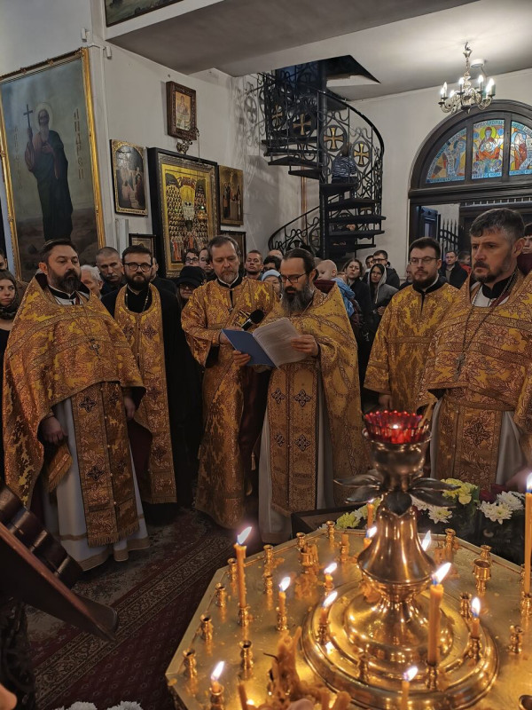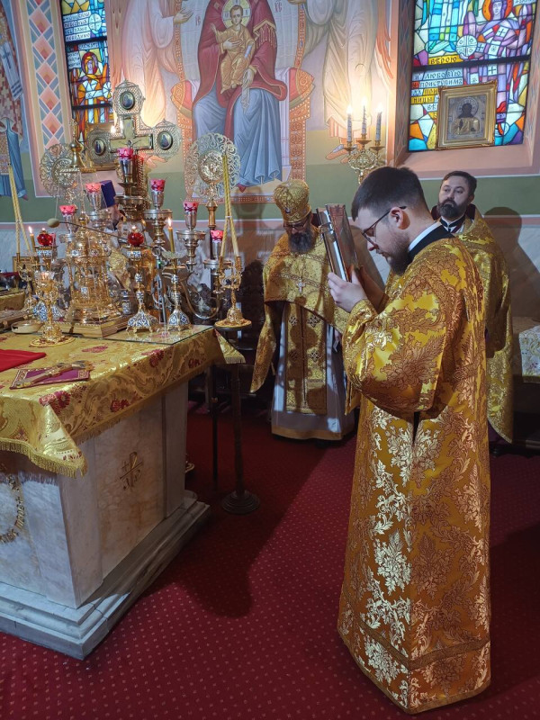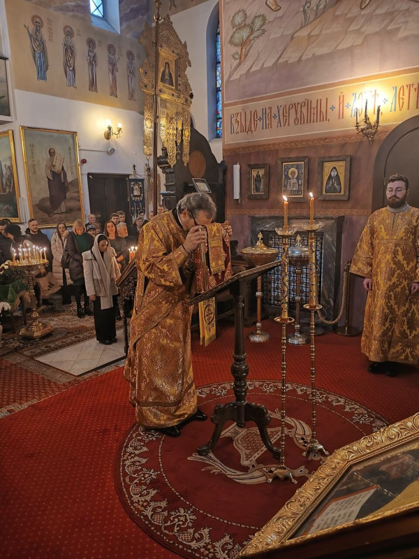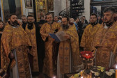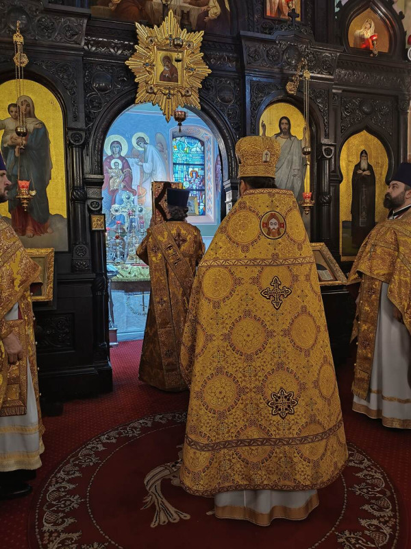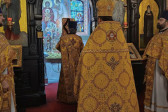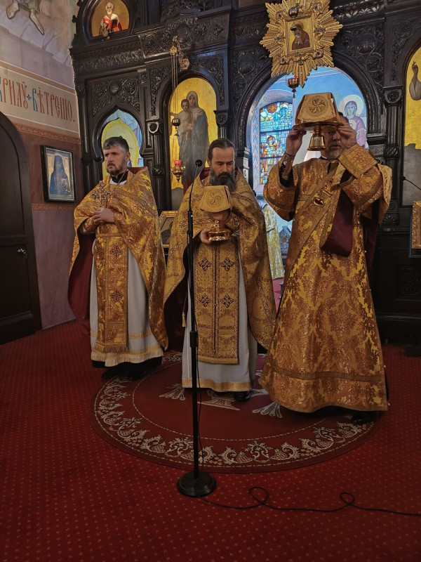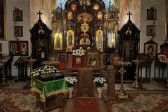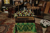 W ten niedzielny poranek w naszej parafii odbyły się trzy Boskie Liturgie: o godz. 7.00, 8.30 oraz 10.00. Od wczorajszego całonocnego czuwania wolską parafię odwiedziły relikwie wybranych świętych z Ławry Kijowsko-Peczerskiej, aby wszyscy mogli pokłonić się świętościom i otrzymać łaskę Św. Ducha. Po głównej Liturgii duchowni wyszli na środek świątyni i oddali cześć przybyłym świętym, zaś proboszcz parafii, ks. Adam Misijuk, pozdrowił wszystkim zebranych oraz życzył wiele zdrowia, błogosławieństwa Bożego i spokojnej niedzielii.