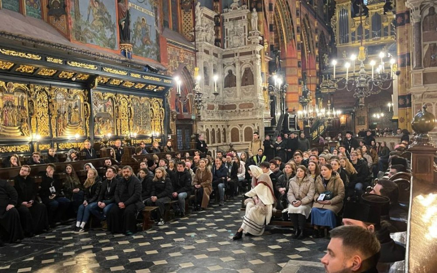 Drugi dzień tegorocznych obchodów Światowego Dnia Młodzieży Prawosławnej, sobota, był okazją do lepszego poznania historii i zabytków Krakowa. Z samego rana uczestnicy wydarzenia wyruszyli na Zamek Królewski na Wawelu, gdzie pod okiem profesjonalnych przewodników poznawali wszystkie interesujące fakty na temat tego ważnego dla historii Polski miejsca. Następnie ich rolę przejęła młodzież z bractwa w Krakowie, która oprowadzała zebranych po Starym Mieście. Dopełnieniem tego była popołudniowa wizyta w Bazylice Mariackiej i zorganizowany dla uczestników ŚDMP wykład na temat najcenniejszego zabytku świątyni – unikatowego na skalę światową, gotyckiego ołtarza dłuta Wita Stwosza. Specjalnie na tę okazję duchowieństwo opiekujące się bazyliką odstąpiło od panujących w tym miejscu zwyczajów i dokonało uroczystego otwarcia ołtarza poza wyznaczonymi godzinami. Ogromne prezbiterium kościoła z trudem zmieściło młodych prawosławnych. Na zakończenie niezwykle interesującego spotkania wszyscy zebrani uroczyście odśpiewali kondakion do Bogurodzicy „Waleczna Hetmanko” (cs. Wzbrannoj Wojewodie). Bezpośrednio z Bazyliki Mariackiej wszyscy udali się do pobliskiej cerkwi Zaśnięcia Bogarodzicy, gdzie pod przewodnictwem przybyłych hierarchów odprawione zostało całonocne czuwanie.