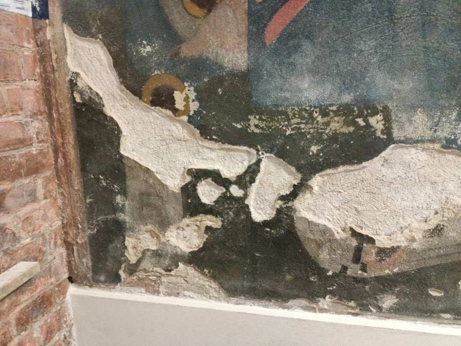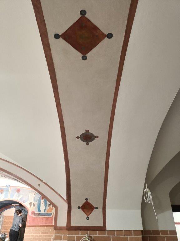 Równolegle wykonano prace konserwatorskie w obrębie ceglanego i tynkarskiego wystroju wnętrza, bez których efekt prac przy malowidłach byłby niepełny.