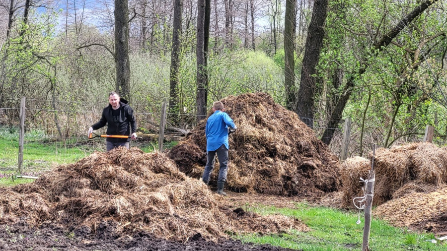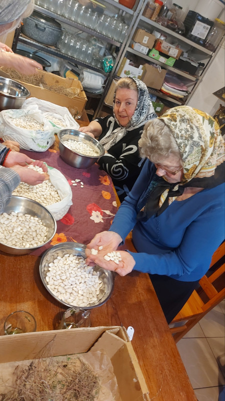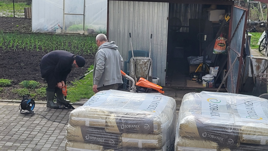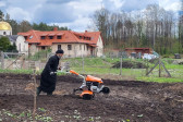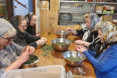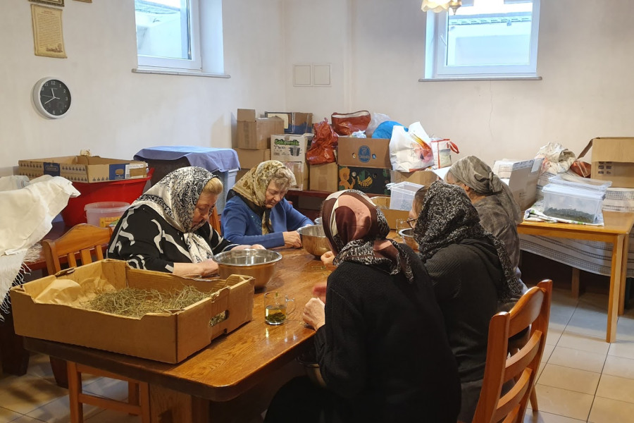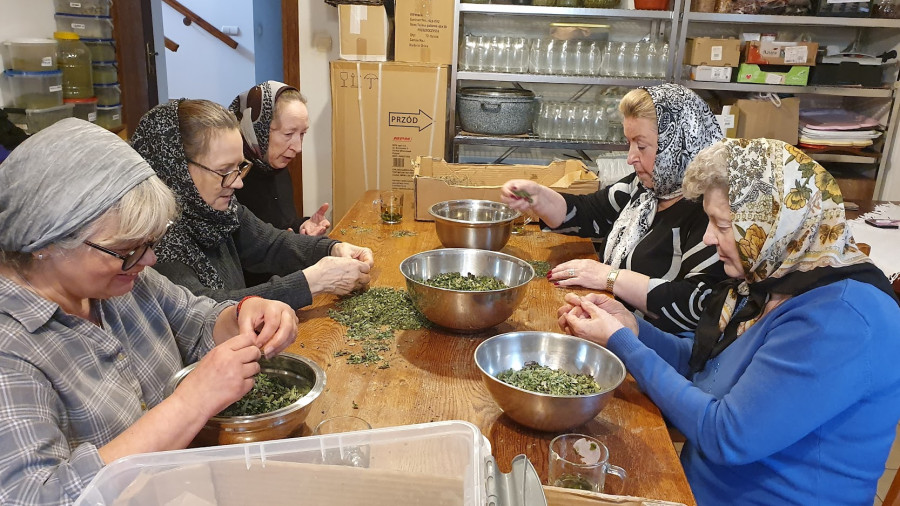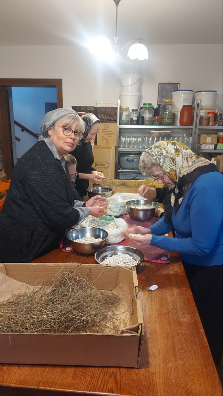 Tworzymy mini zespoły robocze: sprzątamy świątynię, malujemy ławki, które staną przy trawnikach, łupiemy orzechy, skubiemy listki mięty i tymianku, myjemy butelki potrzebne do przetworów. Panowie przerzucają do magazynków worki z opałem, uruchamiają nowy traktorek, skręcają meble ogrodowe.