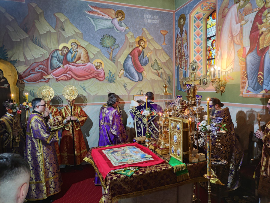 W naszej parafii rozpoczęliśmy obchody święta od całonocnego czuwania w sobotę o godz. 17.00. Następnego dnia odbyły się dwie Boskie Liturgie: o godz. 7.00 oraz 9.00. Głównej Liturgii przewodniczył J.E. Wielce Błogosławiony Sawa, Metropolita Warszawski i Całej Polski w asyście J.E. Najprzewielebniejszego Grzegorza, Arcybiskupa Bielskiego oraz miejscowych kapłanów i zaproszonego duchowieństwa. Przed Liturgią J.E. metropolita Sawa udzielił święceń lektorskich Tomaszowi Korzunowi, zaś przed Małym Wejściem przyznał nagrody paschalne: prawo noszenia mitry ks. prot. dr Piotrowi Kosińskiemu; prawo noszenia skufijki ks. Dawidowi Martyniukowi. Słowo pouczenia wygłosił J.E. arcybiskup Grzegorz, w którym przedstawił duchową postać św. Jana Klimaka i ukazał, jak trudna jest czysta modlitwa we współczesnej miejskiej pustyni.