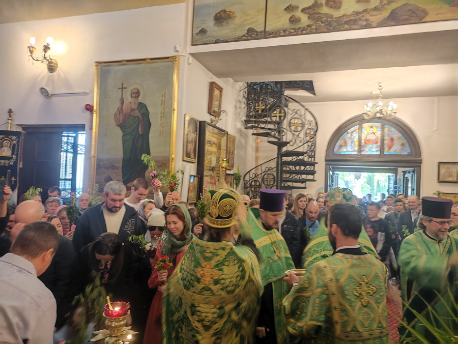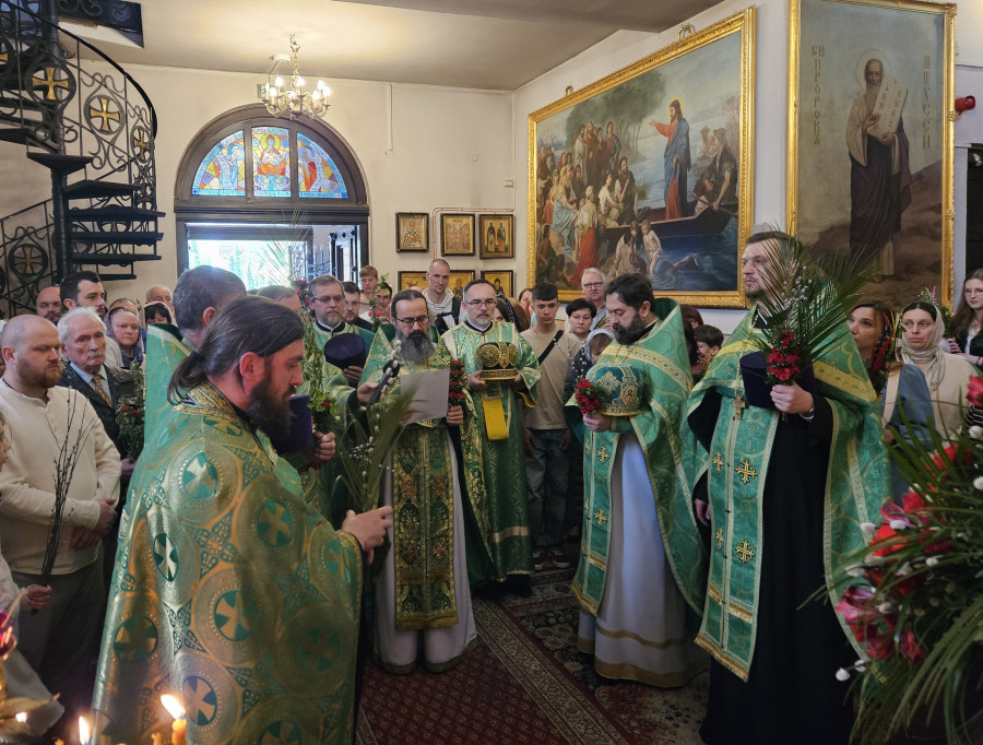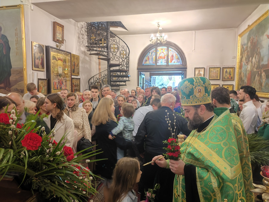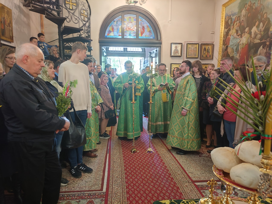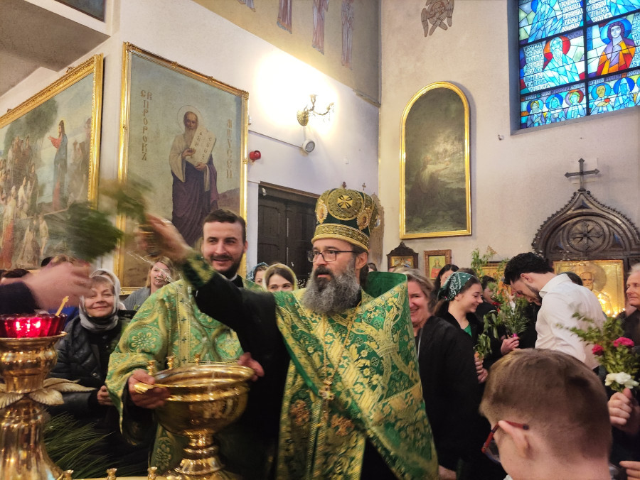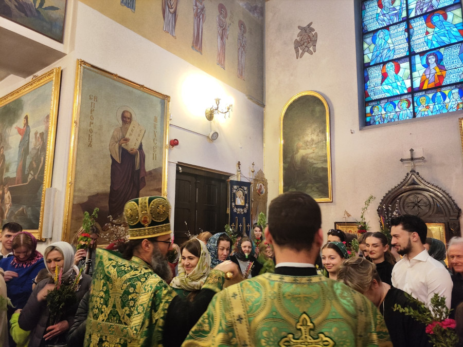 Następnego dnia, o godz. 7.00, 8.30 oraz 10.00 były sprawowane świąteczne Liturgie, na zakończenie których duchowni czytali modlitwę i święcili palmy, wierzby i inne rośliny, które tak pięknie przyozdabiają zielone kompozycje, tworzone przez wiernych na ten wyjatkowy dzień. Po głównej Liturgii ks. proboszcz, Adam Misijuk, serdecznie pozdrowił wszystkich zebranych i życzył błogosławionej niedzieli.