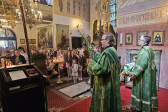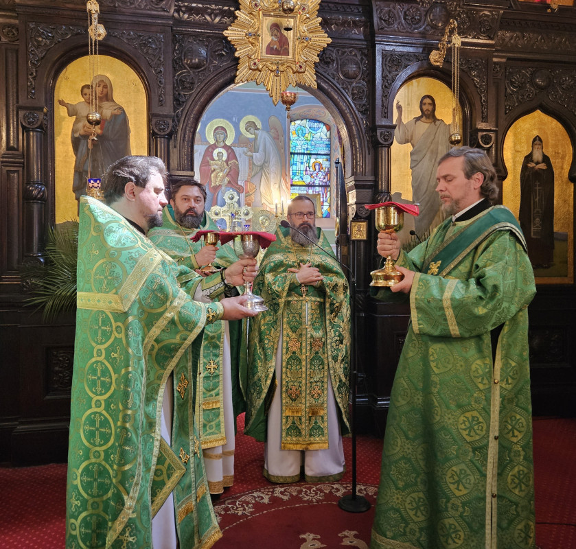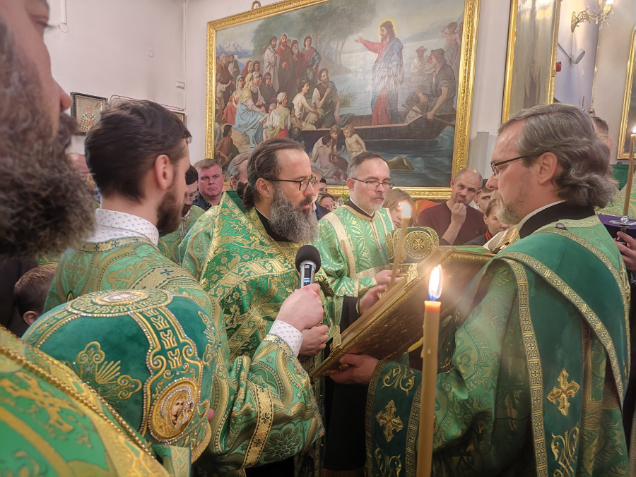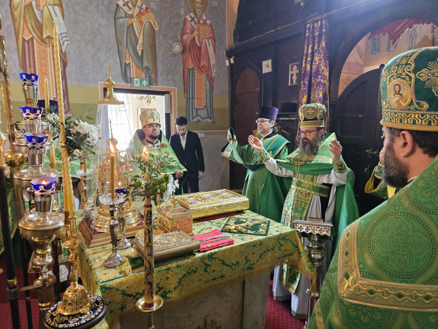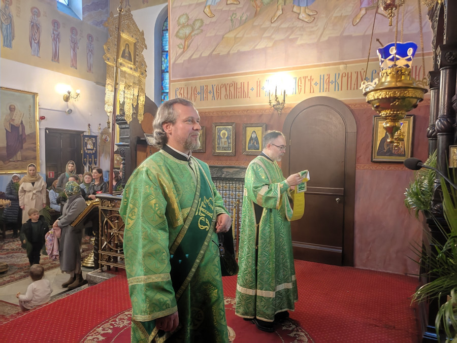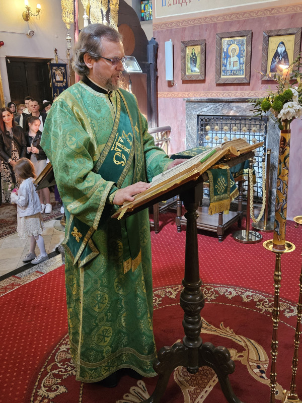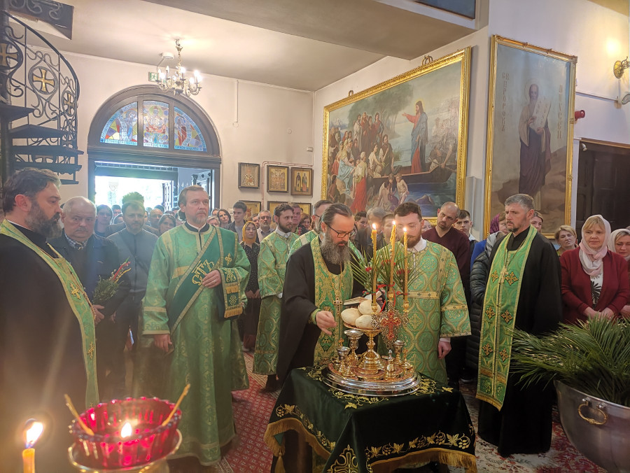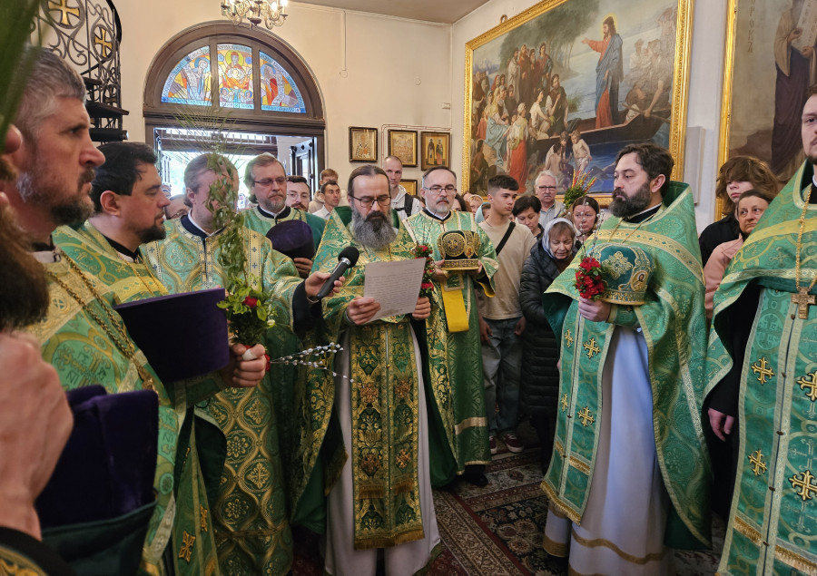 Następnego dnia, o godz. 7.00, 8.30 oraz 10.00 były sprawowane świąteczne Liturgie, na zakończenie których duchowni czytali modlitwę i święcili palmy, wierzby i inne rośliny, które tak pięknie przyozdabiają zielone kompozycje, tworzone przez wiernych na ten wyjatkowy dzień. Po głównej Liturgii ks. proboszcz, Adam Misijuk, serdecznie pozdrowił wszystkich zebranych i życzył błogosławionej niedzieli.