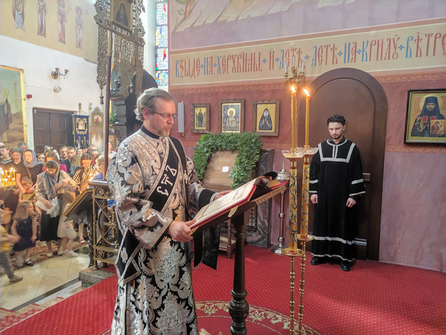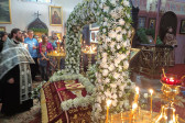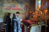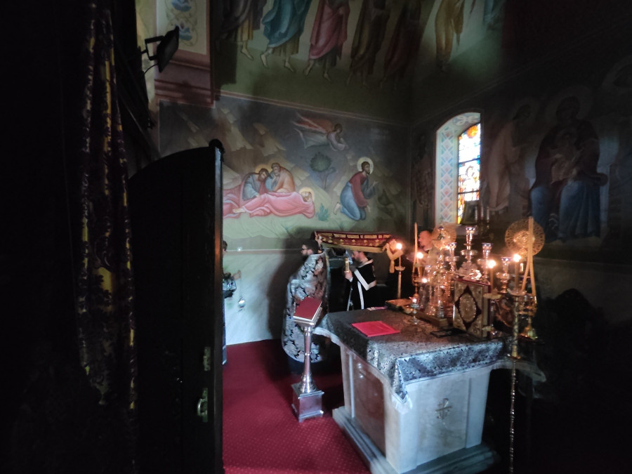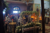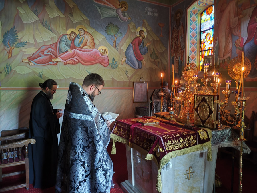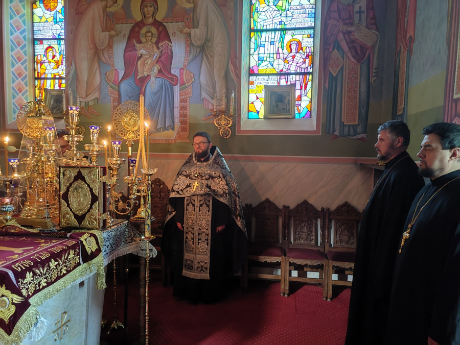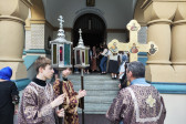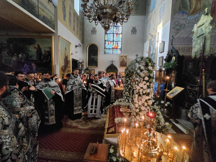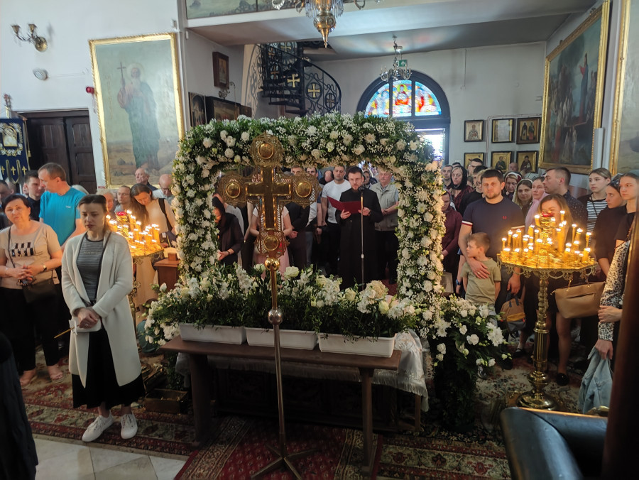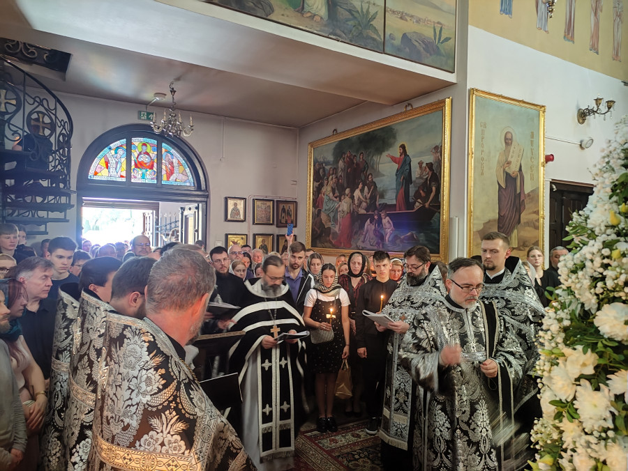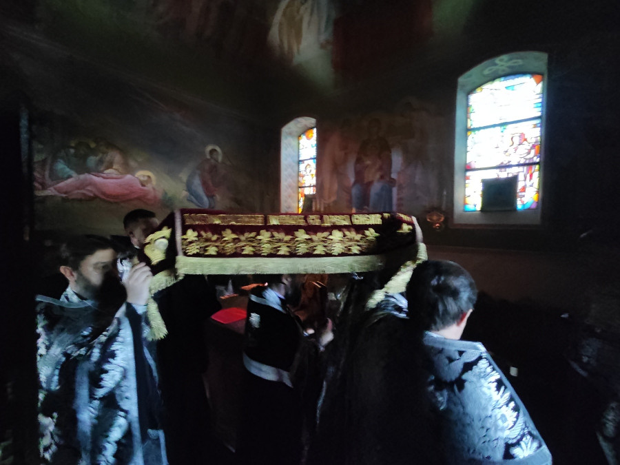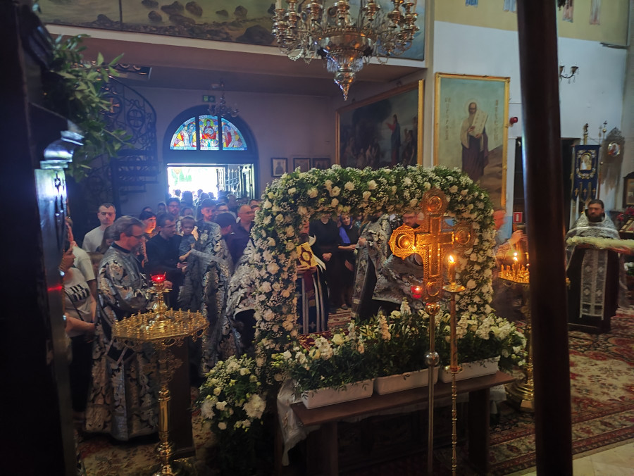 W naszej parafii o godz. 7.00 rozpoczęły się królewskie godziny kanoniczne, zaś o godz. 16.00 odbyła się wieczernia Wielkiego Piątku z wyniesieniem Całunu (scs. płaszczennicy), a od razu po niej jutrznia Wielkiej Soboty. Pięknie przystrojony Grób w obfitości białych kwiatów napełniał wiernych pewnością nadchodzącego Zmartwychwstania. Na koniec słowo wygłosił proboszcz parafii, ks. Adam Misijuk, który zwrócił uwagę słuchaczy na teksty liturgiczne jutrzni. Ukazują one paradoks Stwórcy, który poddaje się cierpieniu zadawanemu przez Swe stworzenie, aby następnie je zbawić.