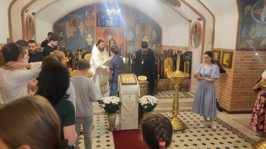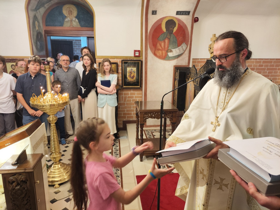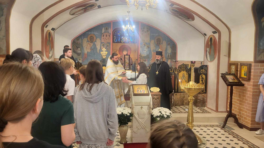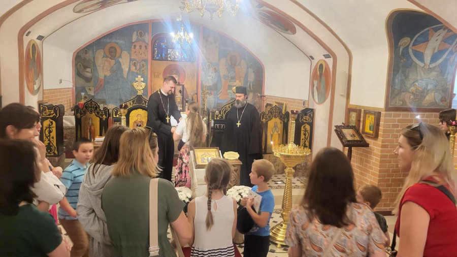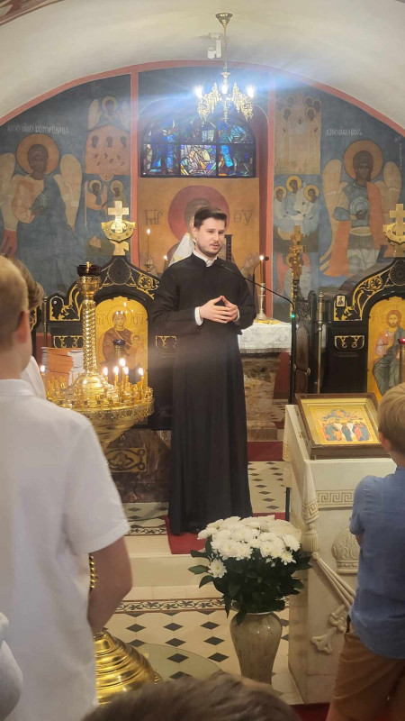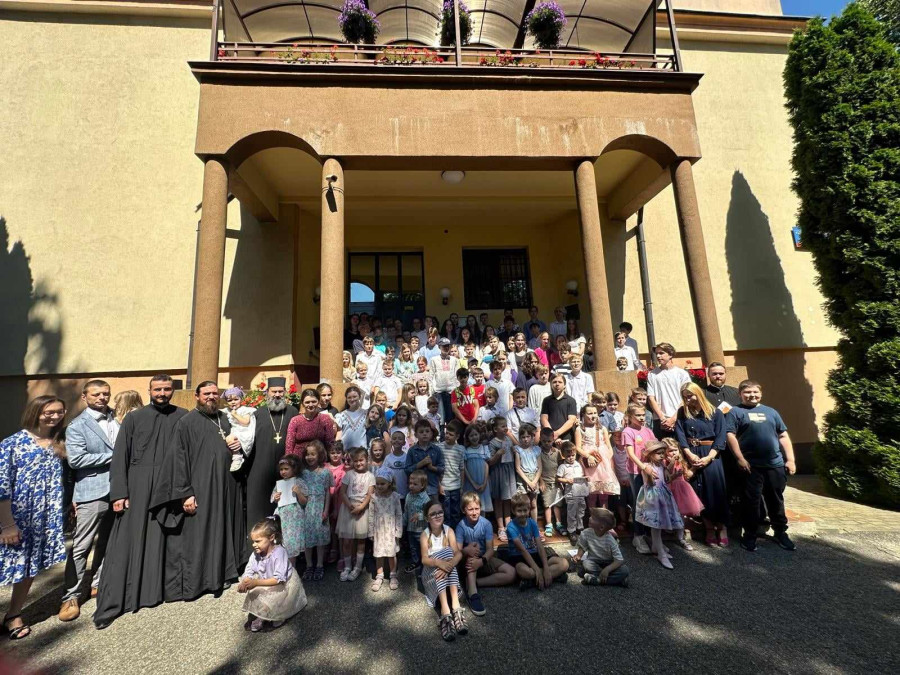 W naszej parafii w ten radosny dzień odbyły się 3 Boskie Liturgie: o godz. 7.00, 8.30 oraz 10.00. Po drugiej liturgii odbyło się uroczyste zakończenie roku szkolnego w Punkcie Katechatycznym przy Prawosławnej Parafii św. Jana Klimaka na Woli w Warszawie. Głos zabrał proboszcz parafii, ks. Adam Misijuk, który podziękował Radzie Rodziców, wychowawcom, nauczycielom, wszystkim zaangażowanym w katechizację, rodzicom i uczniom za wspólnie spędzony rok. Przedszkolaki otrzymały dyplomy w domu parafialnym, zaś reszta uczniów odebrała świadectwa ukończenia religii w roku szkolnym 2023/2024 w świątyni. Następnie wszyscy udali się przed plebanię, gdzie miało miejsce pamiątkowe zdjęcie. Na koniec odbył się festyn na święzym powietrzu, gdzie dzieci mogły skorzystać z wielu atrakcji, m.in. dmuchanych zamków i zabaw przygotowanych przez animatorów, oraz poczęstunku.