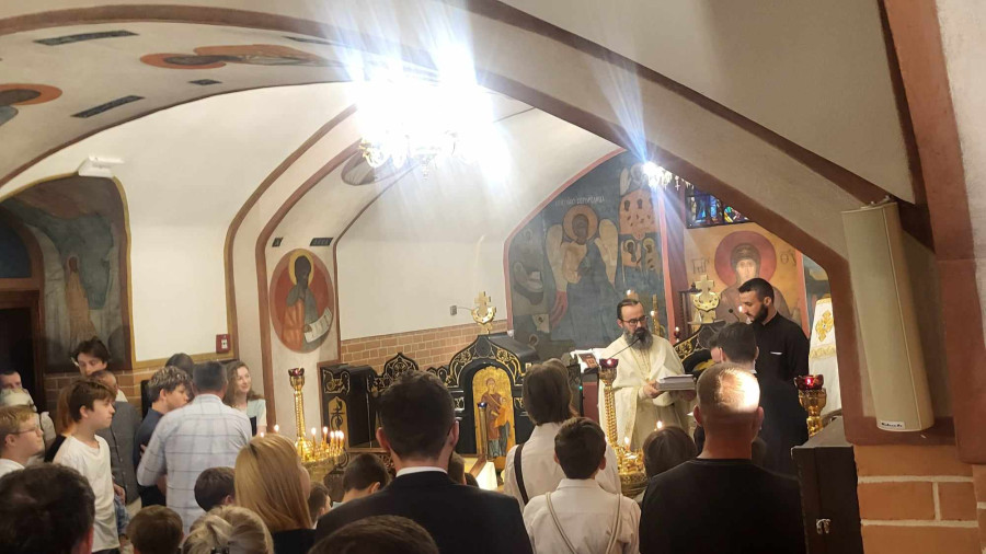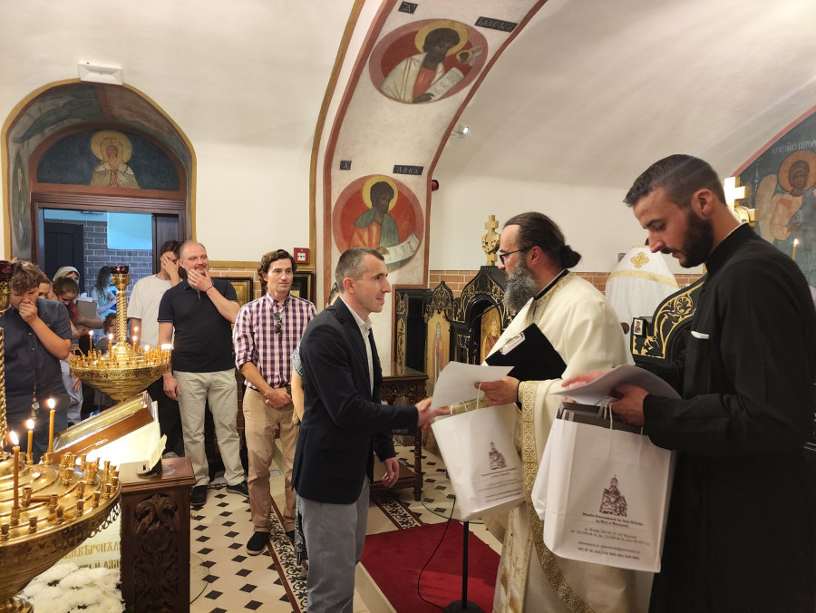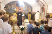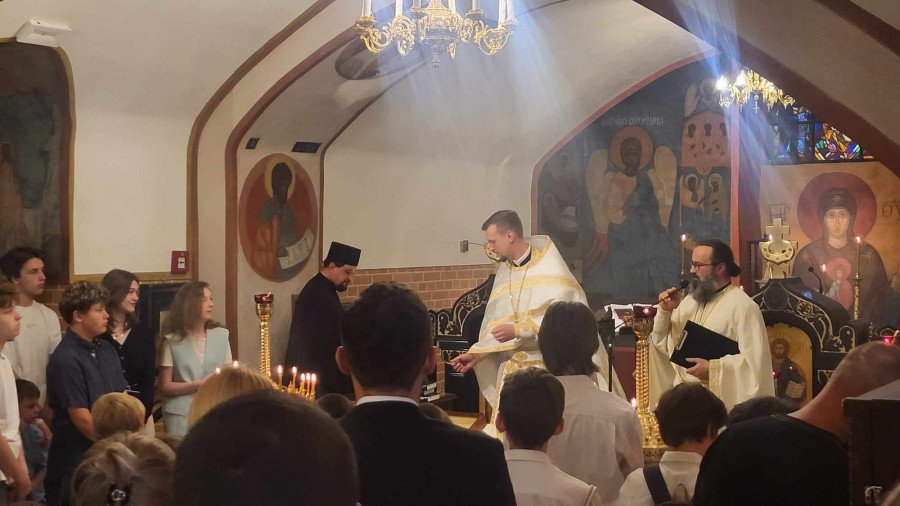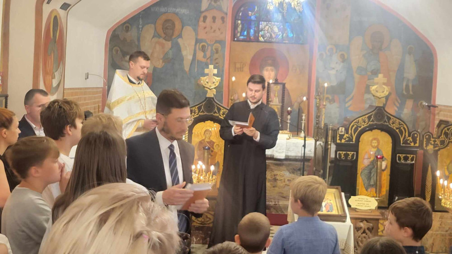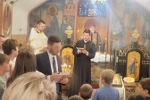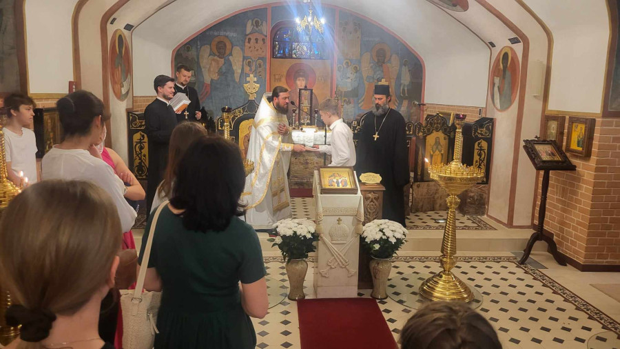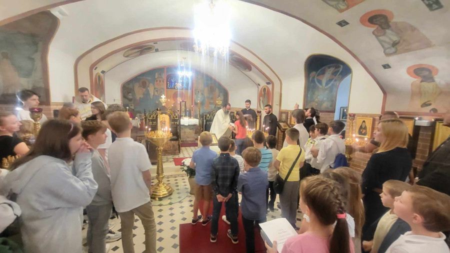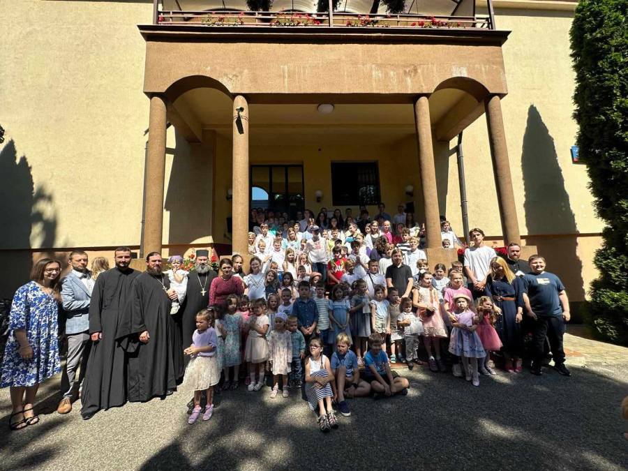 W naszej parafii w ten radosny dzień odbyły się 3 Boskie Liturgie: o godz. 7.00, 8.30 oraz 10.00. Po drugiej liturgii odbyło się uroczyste zakończenie roku szkolnego w Punkcie Katechatycznym przy Prawosławnej Parafii św. Jana Klimaka na Woli w Warszawie. Głos zabrał proboszcz parafii, ks. Adam Misijuk, który podziękował Radzie Rodziców, wychowawcom, nauczycielom, wszystkim zaangażowanym w katechizację, rodzicom i uczniom za wspólnie spędzony rok. Przedszkolaki otrzymały dyplomy w domu parafialnym, zaś reszta uczniów odebrała świadectwa ukończenia religii w roku szkolnym 2023/2024 w świątyni. Następnie wszyscy udali się przed plebanię, gdzie miało miejsce pamiątkowe zdjęcie. Na koniec odbył się festyn na święzym powietrzu, gdzie dzieci mogły skorzystać z wielu atrakcji, m.in. dmuchanych zamków i zabaw przygotowanych przez animatorów, oraz poczęstunku.