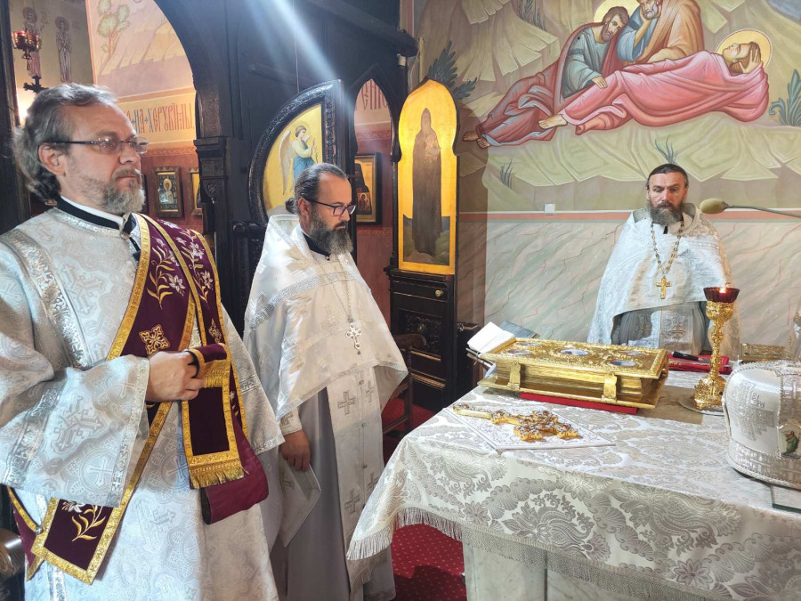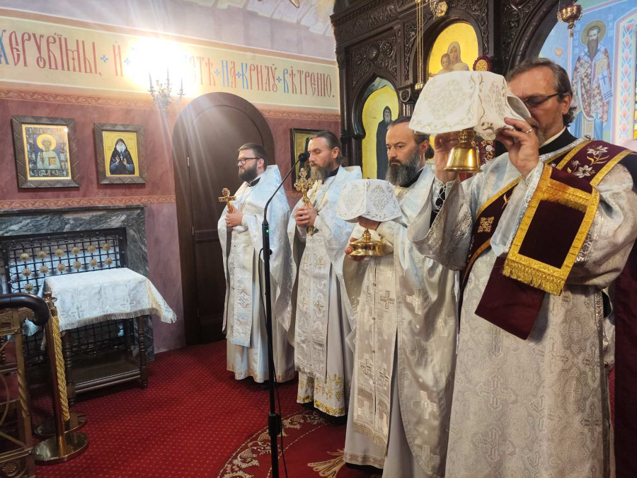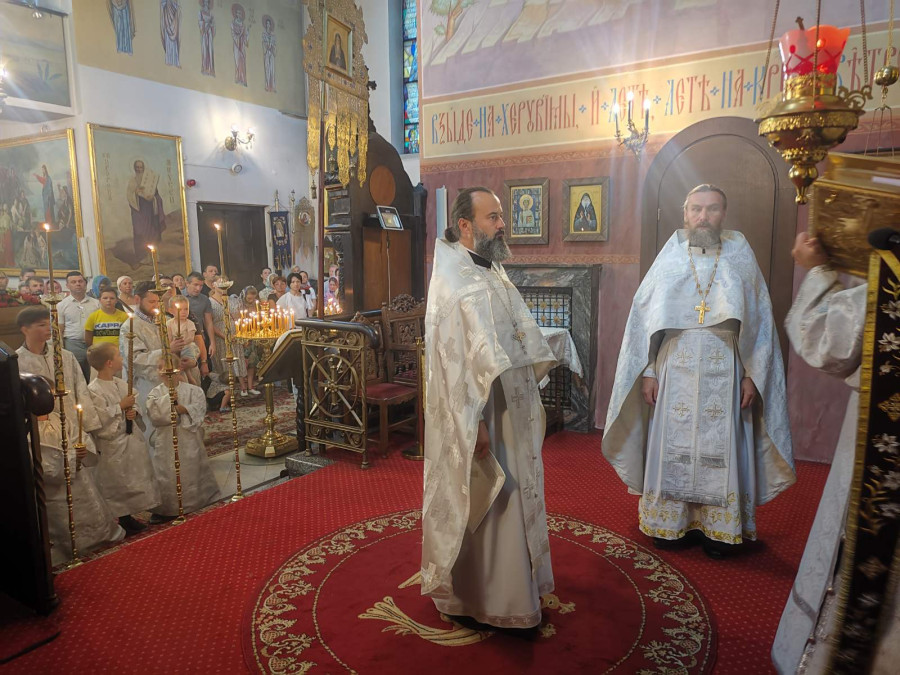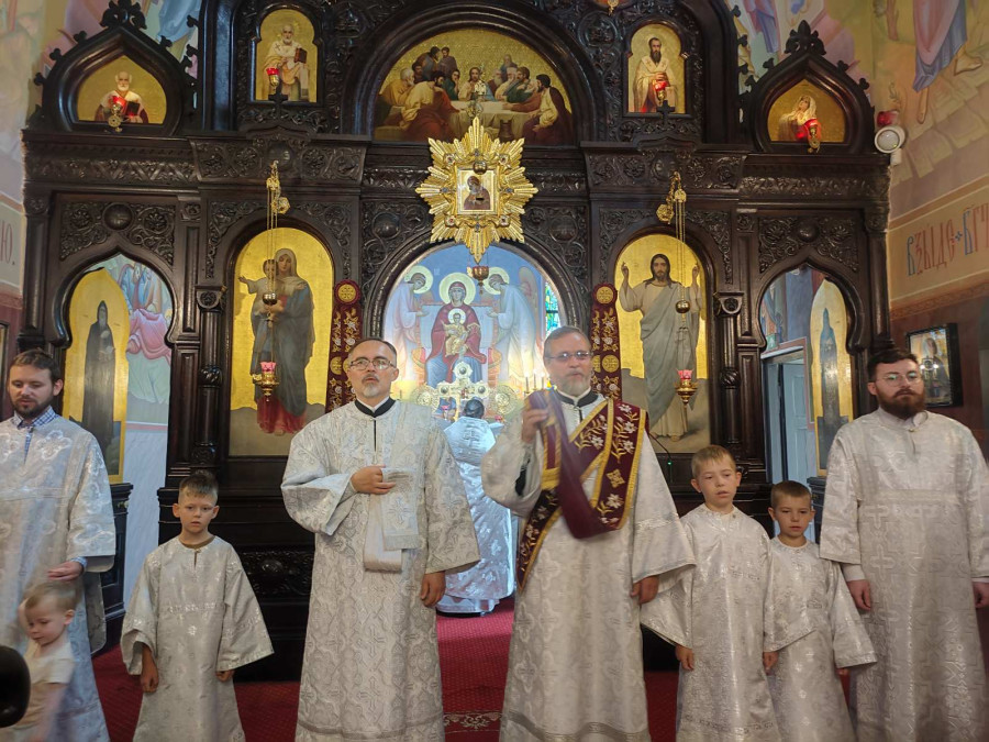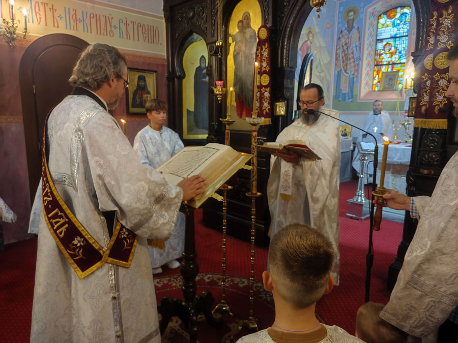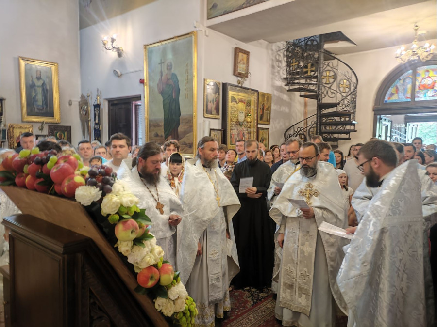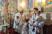 W naszej parafii w ten niedzielny poranek odbyły się dwie Boskie Liturgie: 7.00 oraz 9.00. Po głównej służbie duchowni wyszli na środek świątyni pokłonić się ikonie Przemienienia Pańskiego, zaś proboszcz parafii, ks. Adam Misijuk, pozdrowił wszystkich zebranych oraz życzył błogosławionej niedzieli.