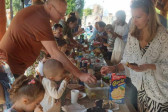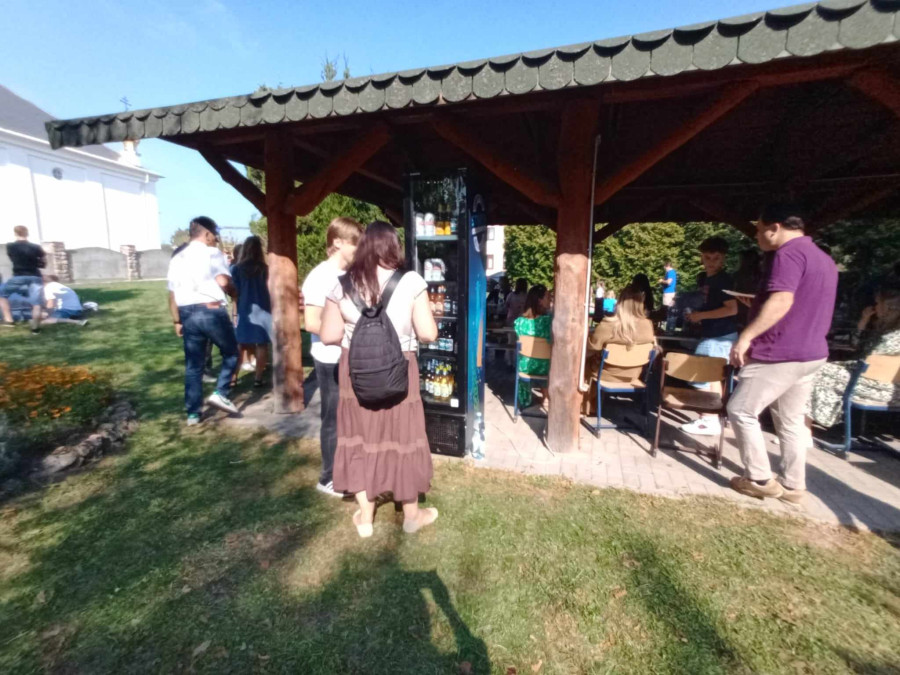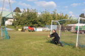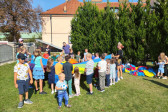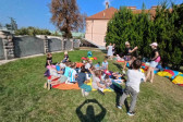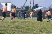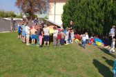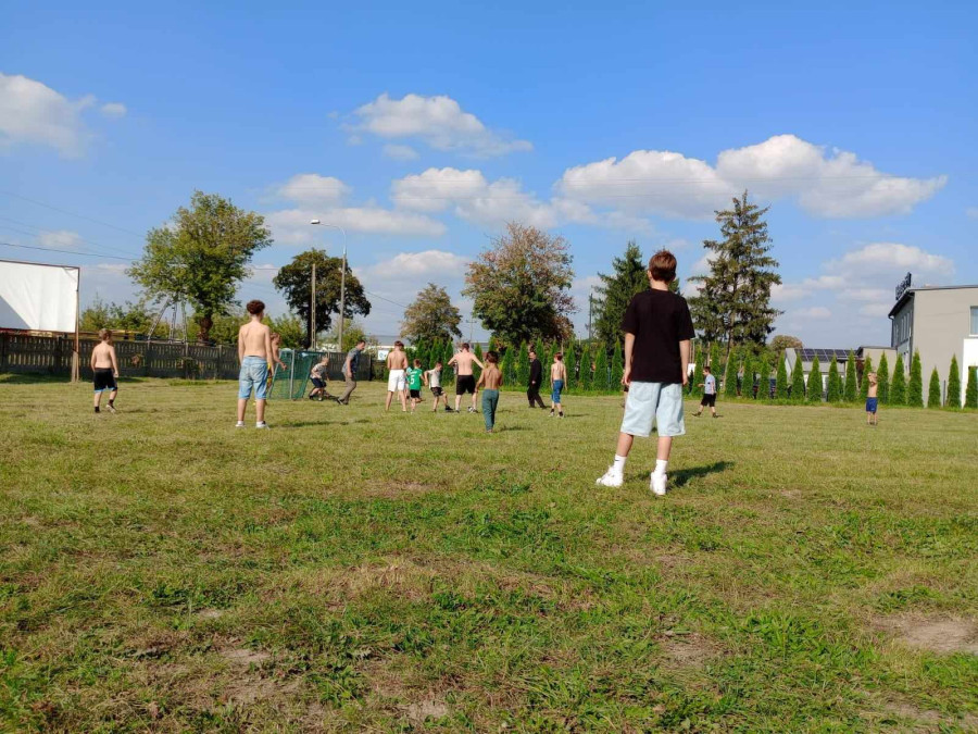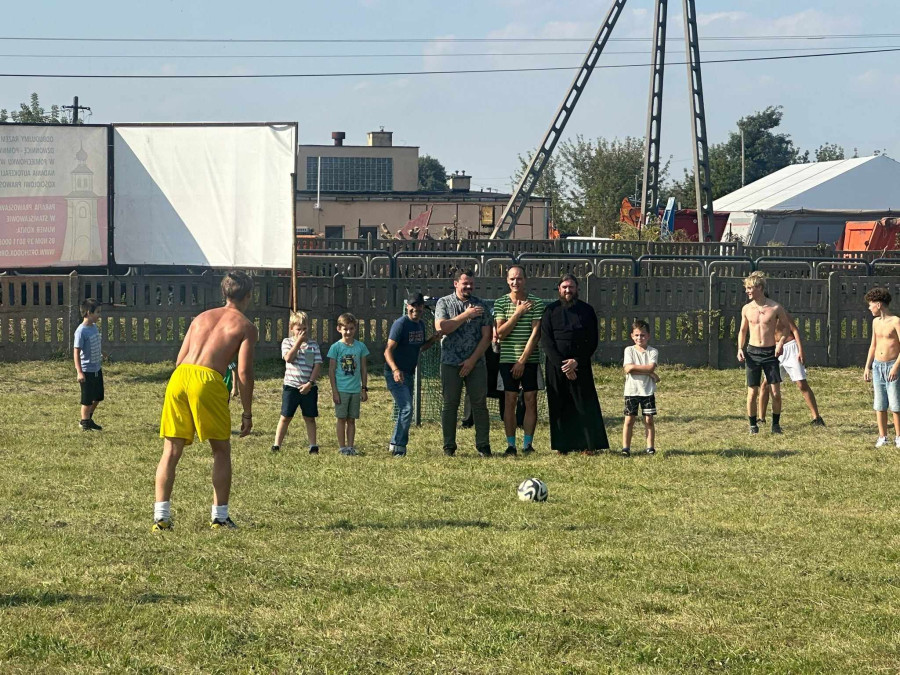 Wspólną agapę rozpoczęliśmy modlitwą. Pyszne kiełbaski i warzywa z grilla, jak również sałatki i ciasta przywiezione przez rodziców dodały wszystkim sił i energii do zabawy. Po posiłku dzieci mogły pobawić się z animatorami, skorzystać z atrakcji dostępnych na placu zabaw oraz wykonać prace plastyczne. Na koniec wszyscy chętni wzięli udział w meczu piłki nożnej, w czasie którego dzieci miały okazję zagrać wspólnie z rodzicami i duchownymi naszej parafii. Każdy grający bardzo się starał i ostatecznie mecz o Puchar Proboszcza skończył się remisem, a każdy uczestnik mógł poczęstować się pysznymi słodyczami.