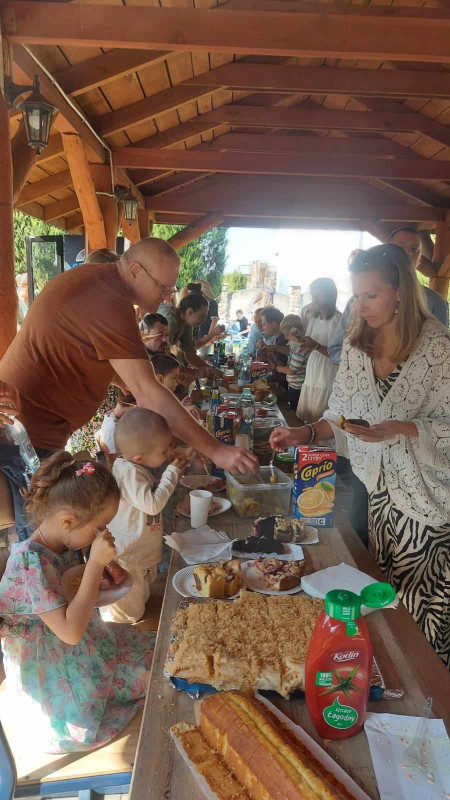 Nasze spotkanie rozpoczęło się o Św. Liturgią, której przewodniczył Proboszcz Parafii ks. prot. Andrzej Bołbot wraz z o. Dawidem Romanowiczem, o. Dawidem Martyniukiem. Po Liturgii dzieci z rodzicami udały się na piknik rodzinny przygotowany przez przedstawicieli Rady Rodziców naszego punktu katechetycznego i pomocników.