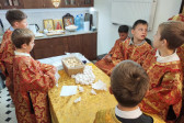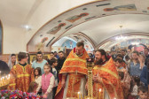 W naszej parafii w ten niedzielny poranek odbyły się 3 Boskie Liturgie: o godz. 7.00, 8.30 oraz 10.00. Po każdej służbie duchowni wychodzili na środek świątni, aby pokłonić się Czcigodnemu i Życiodajnemu Krzyżowi Pańskiemu. Po głównej Liturgii ks. proboszcz, Adam Misijuk, serdecznie podziękował wszystkim osobom odpowiedzialnym za przygotowanie i realizację peregrynacji cząstki Życiodajnego Krzyża Jezusa Chrystusa w wolskiej parafii.