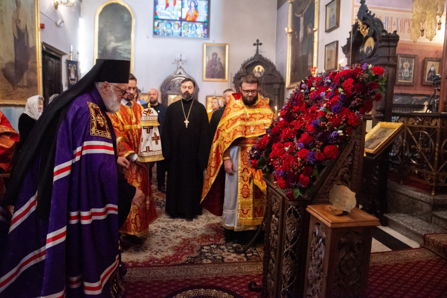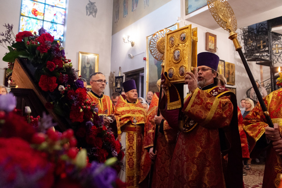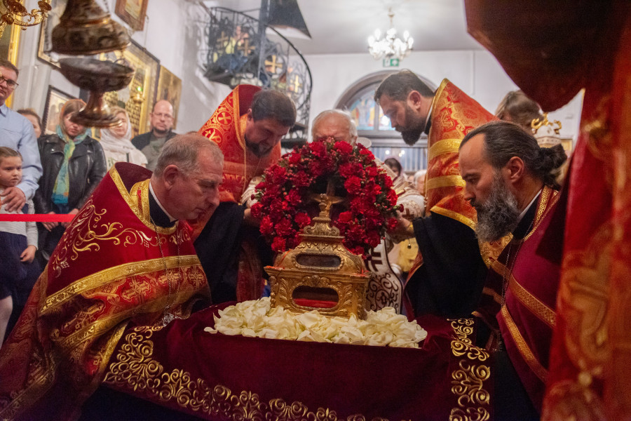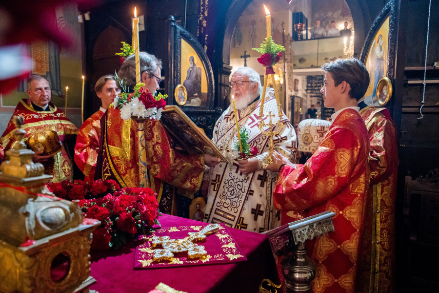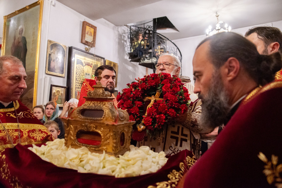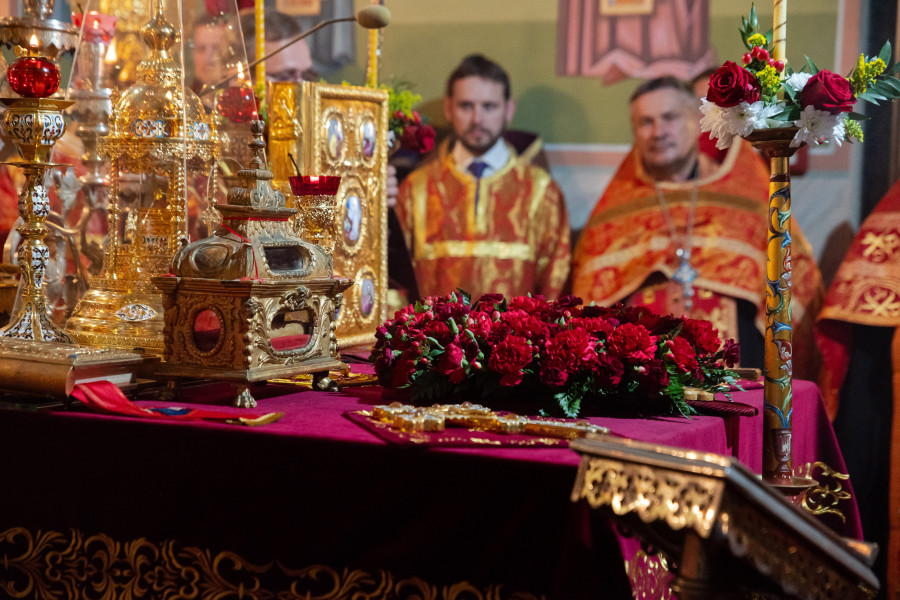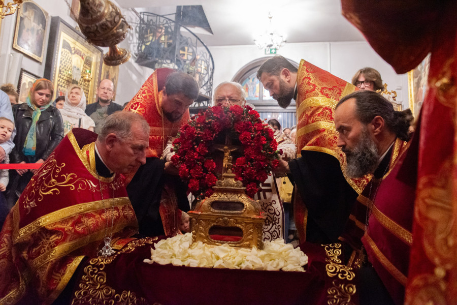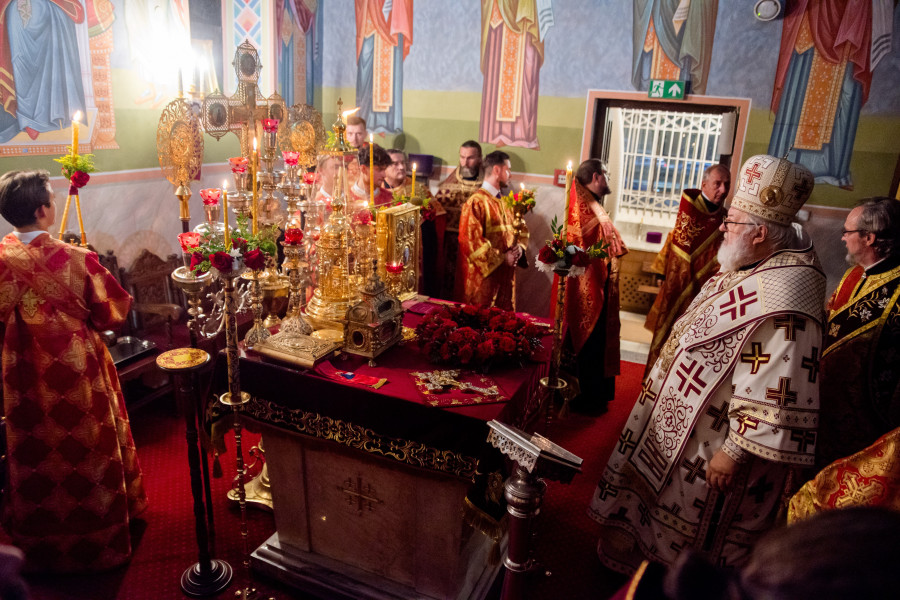 W wigilię święta Podwyższenia Krzyża Pańskiego, przed całonocnym czuwaniem o godz. 17.00, Relikwie przeniesiono w uroczystej procesji z plebanii do świątyni. Wieczornej służbie, a także św. Liturgii następnego dnia przewodniczył J.E. Najprzewielebniejszy Warsonofiusz, biskup Siemiatycki. W słowie skierowanym do wiernych podczas Liturgii arcypasterz zwrócił uwagę, jak ważna jest nasza wierność i oddanie Chrystusowi, czego świadectwem jest m.in. noszenie znaku krzyża na piersi.