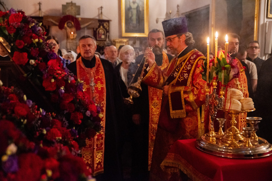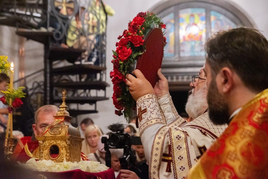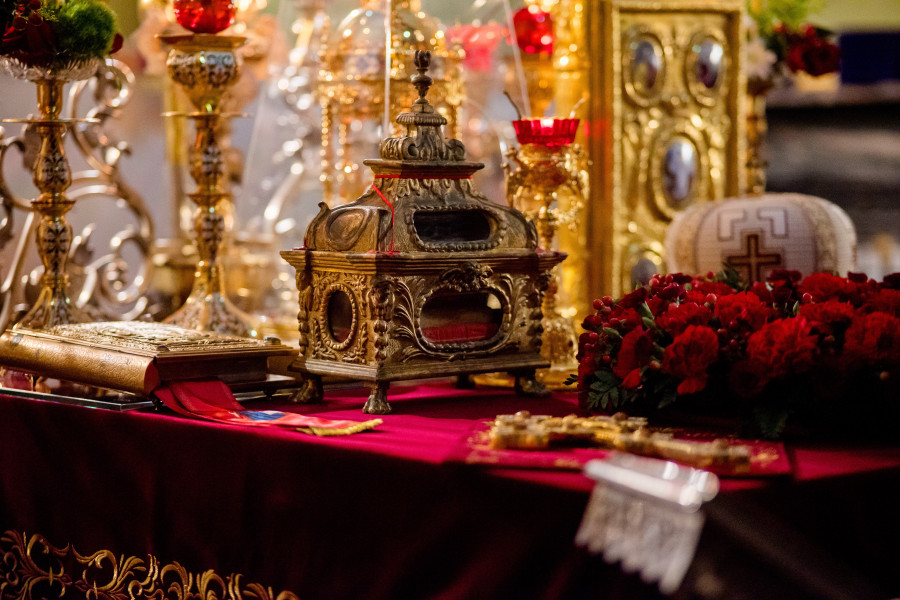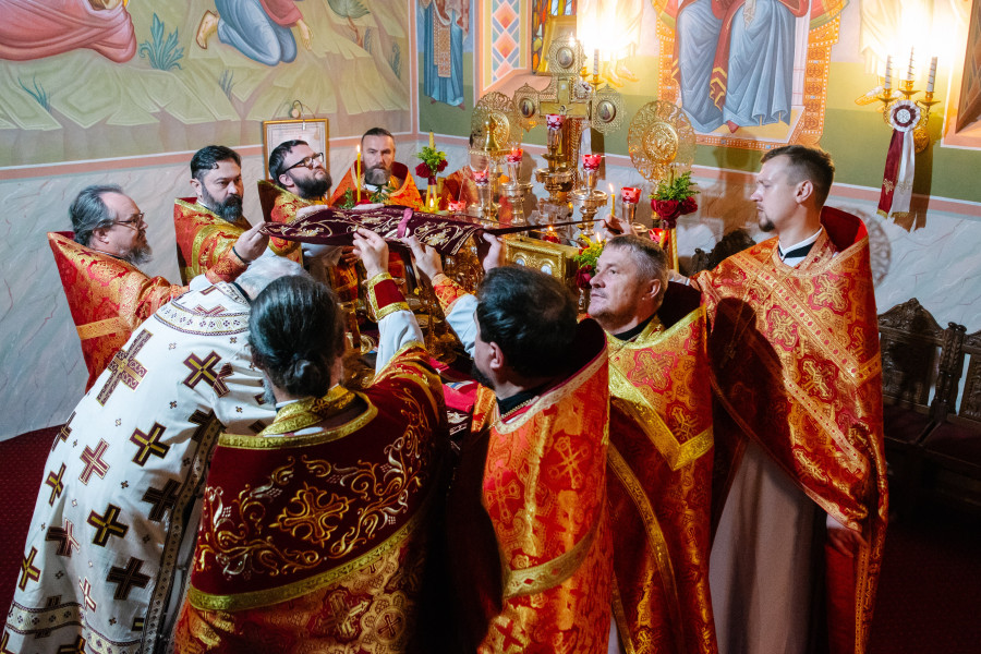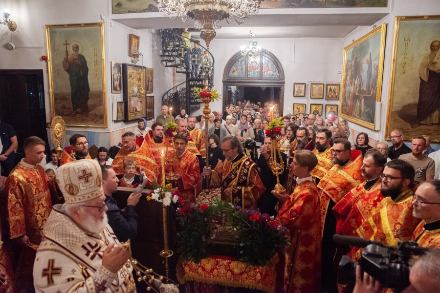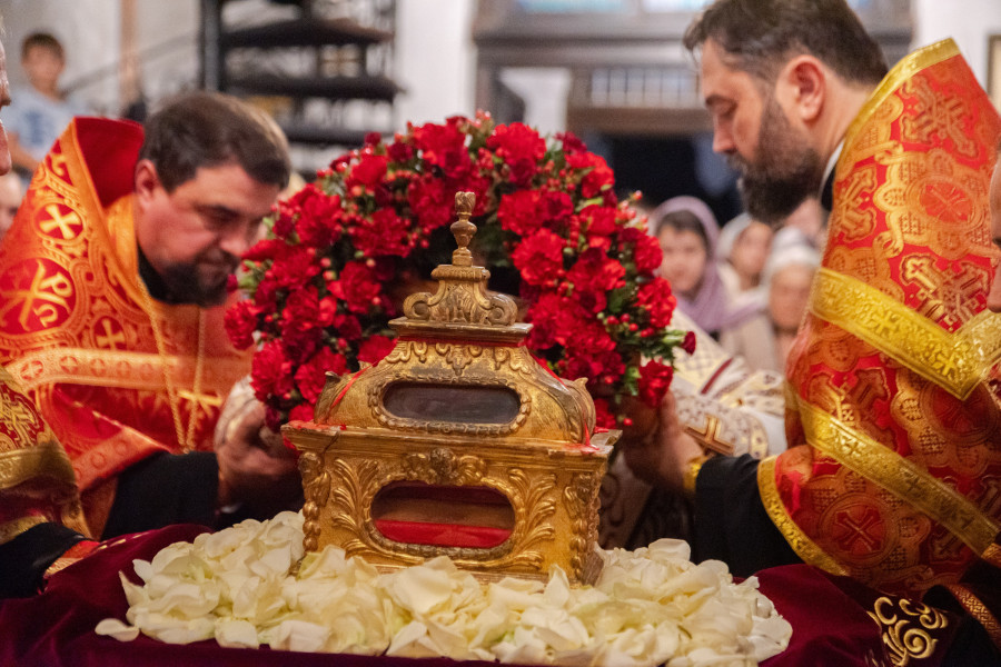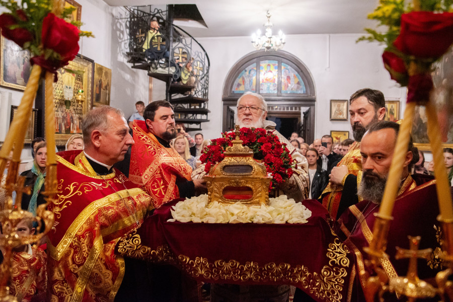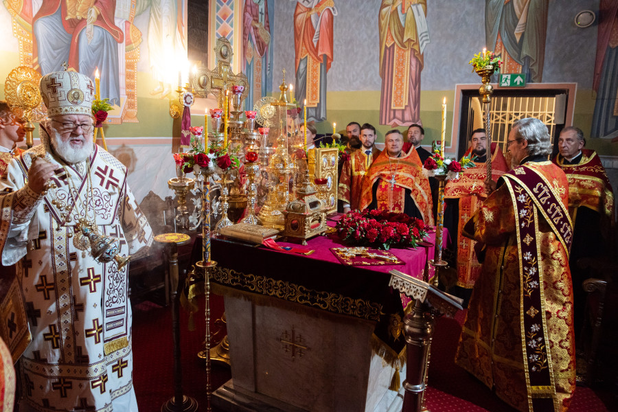 W wigilię święta Podwyższenia Krzyża Pańskiego, przed całonocnym czuwaniem o godz. 17.00, Relikwie przeniesiono w uroczystej procesji z plebanii do świątyni. Wieczornej służbie, a także św. Liturgii następnego dnia przewodniczył J.E. Najprzewielebniejszy Warsonofiusz, biskup Siemiatycki. W słowie skierowanym do wiernych podczas Liturgii arcypasterz zwrócił uwagę, jak ważna jest nasza wierność i oddanie Chrystusowi, czego świadectwem jest m.in. noszenie znaku krzyża na piersi.
