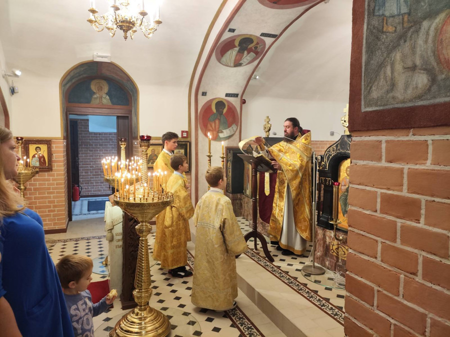 W naszej parafii w ten dzień odsłużone zostały 3 Boskie Liturgie: o godz. 7.00, 8.30 oraz 10.00. Po głównej służbie kapłani wyszli na środek świątyni, aby pokłonić się ikonie św. Jana Chrzciciela, którego pamięć dziś wspominamy oraz cząstce Życiodajnego i Czcigodnego Krzyża Pańskiego, zaś ks. Remigiusz Sosnowy pozdrowił wszystkich zebranych oraz życzył błogosławionej niedzielii.