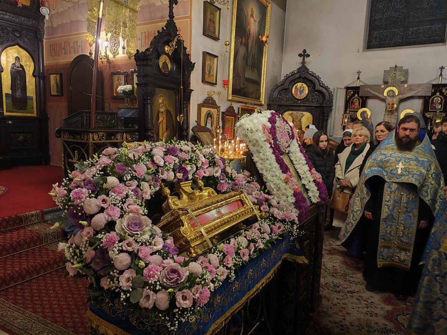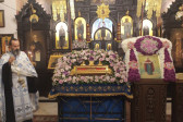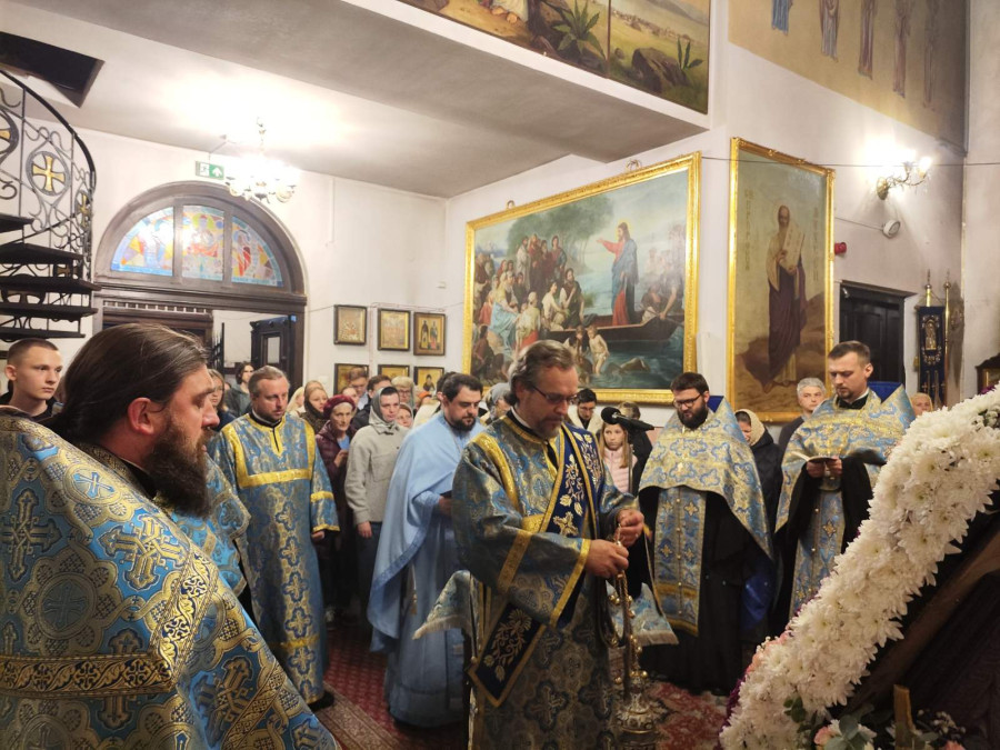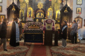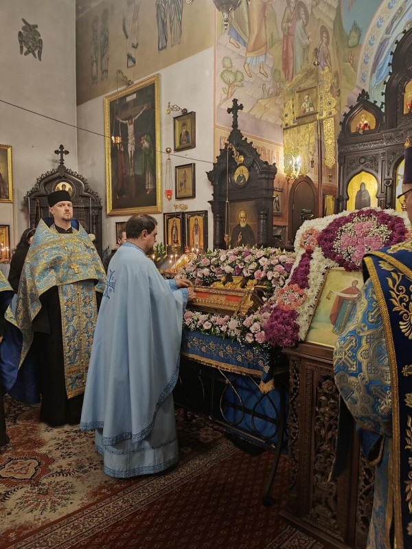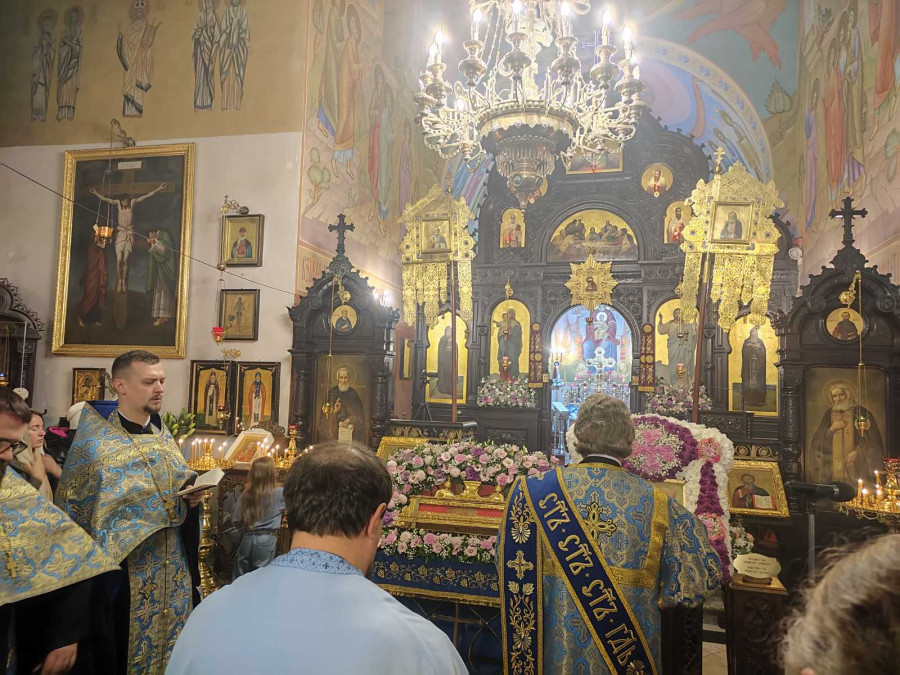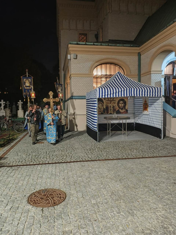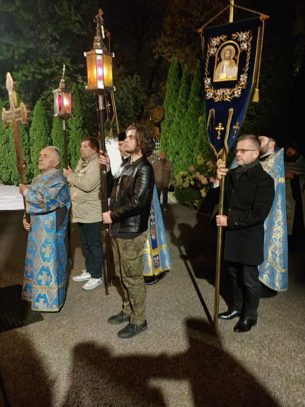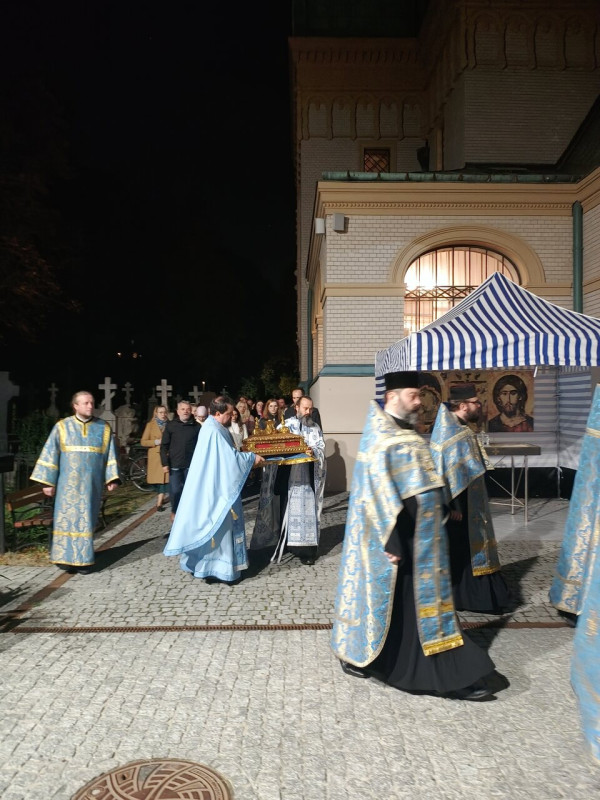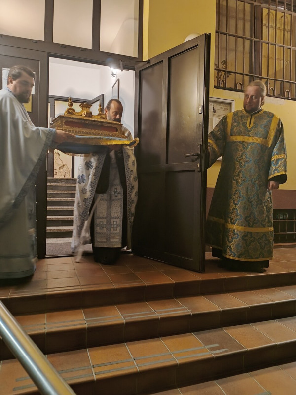 O godz. 22.00 odbyła się procesja duchownych wraz z wiernymi z wolskiej świątyni do domu parafialnego. Tam powitano Relikwię, a następnie wszyscy udali się do cerkwi. Chwilę później rozpoczął się akatyst ku czci Przenajświętszej Bogurodzicy, któremu przewodniczył ks. Michaił Bułgakow, jeden z incjatorów i pomysłodawców peregrynacji Relikwii do Polski. Następnie, o godz. 24.00, odbyła się Boska Liturgia, podczas której wielu wiernych przystąpiło do sakramentu spowiedzi i Eucharystii.