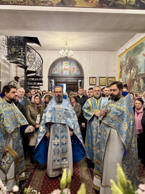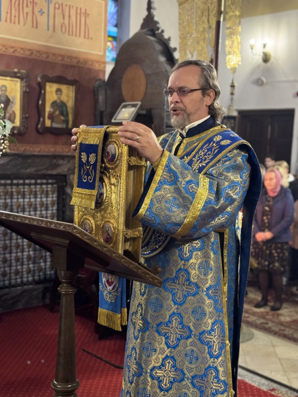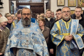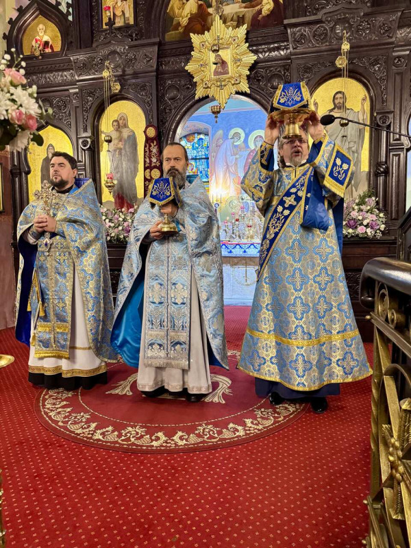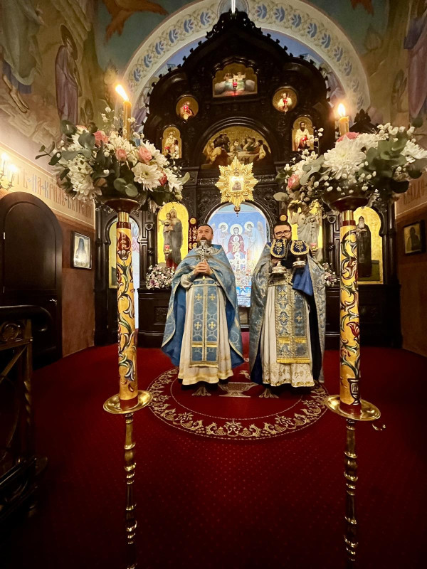 W naszej parafii w ten jesienny poranek odbyły się 3 Boskie Liturgie: o godz. 7.00, 8.30 oraz 10.00. Po głównej służbie duchowni wyszli na środek świątyni pokłonić się Relikwi szaty Przenajświętszej Bogurodzicy, która zawitała do naszej parafii z Włoch. Na koniec proboszcz, ks. Adam Misijuk pozdrowił wszystkich zebranych oraz zachęcił, aby chwilę pozostać i przedstawić swe troski, kłopoty , radości Matce Bożej.