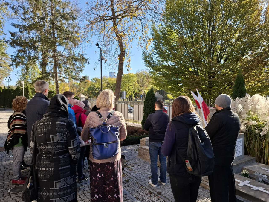 W sobotę, 19 października 2024 r., naszą parafię odwiedzili nauczyciele z Mazowieckiego Samorządowego Centrum Doskonalenia Nauczycieli (Wydział w Warszawie). Najpierw pedagodzy zostali oprowadzeni przez proboszcza, ks. Adama Misijuka, po cmentarzu ukazując jego bogatą i często nieznaną historię. Następnie udali się do cerkwi św. Jana Klimaka, gdzie zobaczyli dolną i górną cerkiew, polichromię ś.p. prof. Jerzego Nowosielskiego, wgłębili się w meandry teologiczne architektury cerkiewnej oraz w znaczenie jej wnętrza. Na koniec wszyscy udali się do Domu Parafialnego, gdzie nastąpiła projekcja filmu pt. Sto lat autokefalii. Tysiąc lat historii.