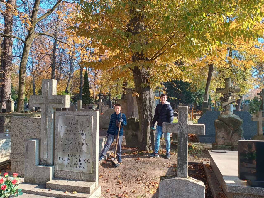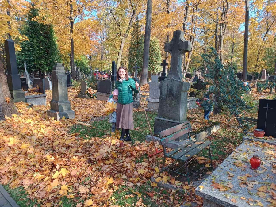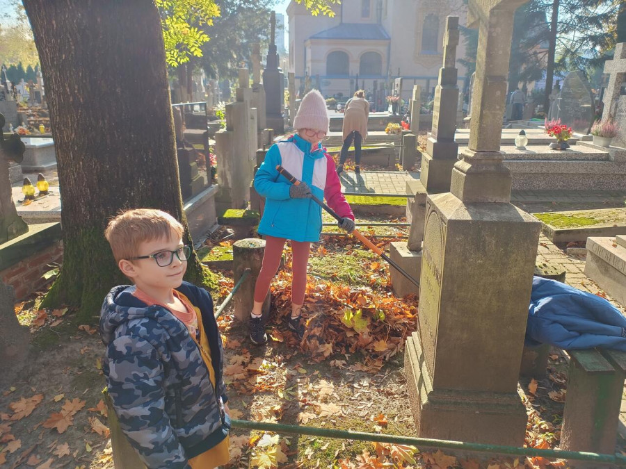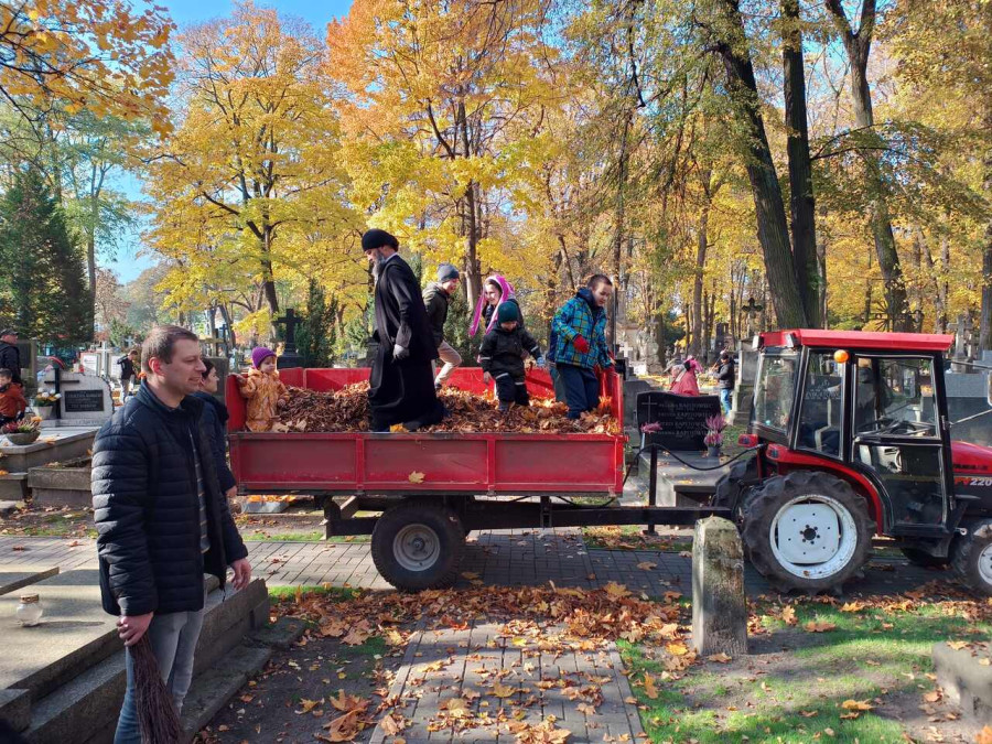 W sobotę (26.10.2024r.) zaraz po Św. Liturgii i panichidzie na cmentarzu zebrało się mnóstwo dzieci z naszego punktu, rodziców, katechetów oraz ludzi dobrej woli, którzy z ogromnym zapałem pomagali uprzątnąć cmentarz ze spadających liści.