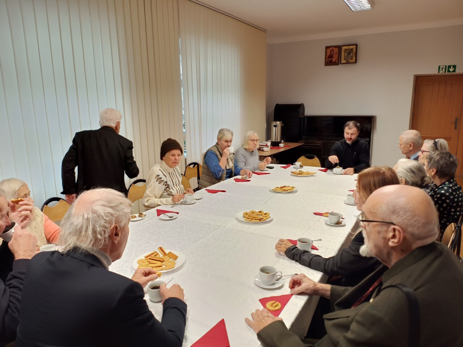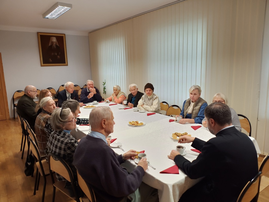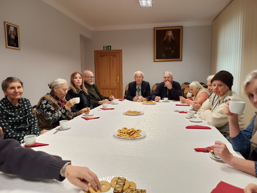 W środę, 27.11.2024 r., odbyło się kolejne Spotkanie Seniorów Parafii św. Jana Klimaka na Woli. O godz. 9.00 odsłużono Boską Liturgię, a następnie wszyscy uczestnicy z opiekunem grupy, ks. Remigiuszem Sosnowym, udali się do Prawosławnego Seminarium Duchownego. Uczestników przywitał rektor PSD, ks. prof. Jerzy Tofiluk, a następnie wraz z ks. dr Tomaszem Stempą, prorektorem PSD, wszyscy pomodlili się w przyseminaryjnej kaplicy pw. Wprowadzenia do Świątyni Przenajświętszej Bogurodzicy. Na koniec spotkania udano się do świetlicy, gdzie przy kawie i herbacie można było porozmawiać z ks. Tomaszem na tematy związane z PSD, historią polskiej Cerkwi, i prawosławnym chrześcijaństwem.