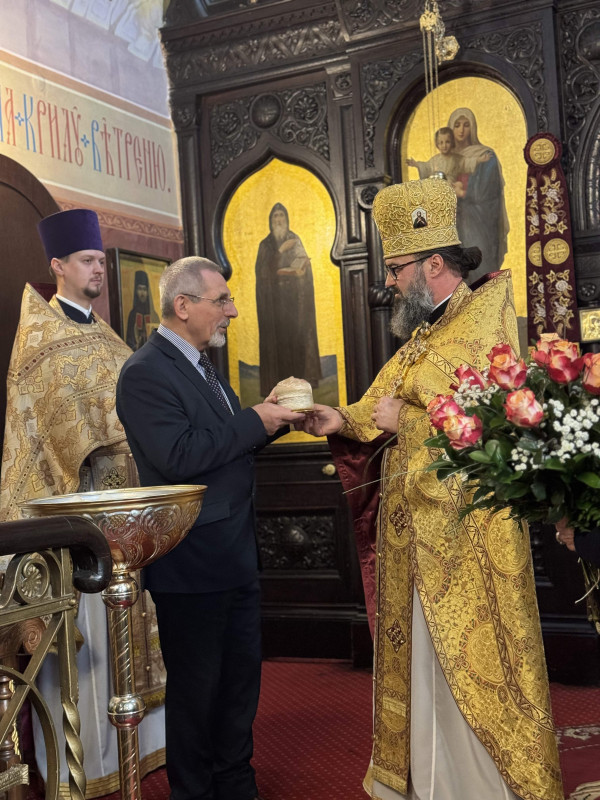W naszej parafii w ten niedzielny poranek odbyły się trzy Boskie Liturgie: o godz. 7.00, 8.30 oraz 10.00. Po głównym nabożeństwie głos zabrał proboszcz parafii, ks. Adam Misijuk, który w imieniu duchowieństwa, Rady Parafialnej i wszystkich zebranych złożył serdeczne życzenia imieninowe p. Grzegorzowi Kozioł - Zastępcy Starosty Rady w naszej parafii.
