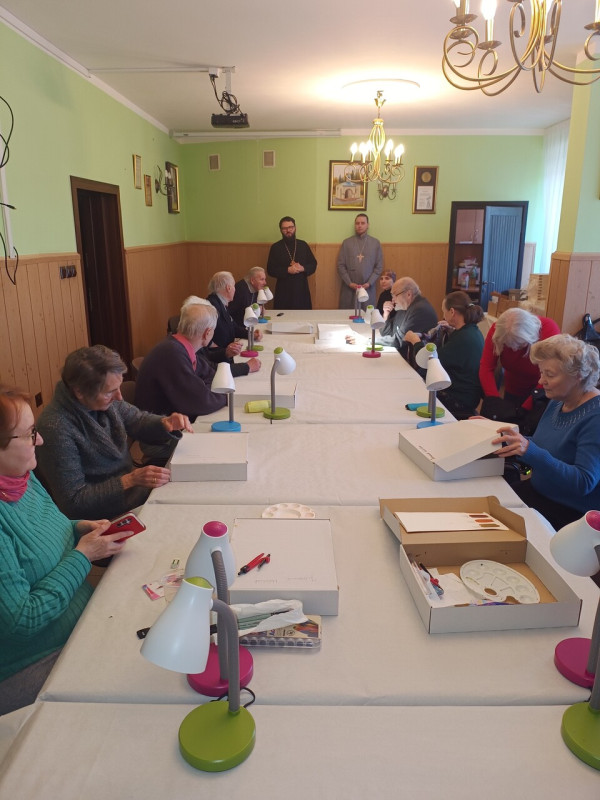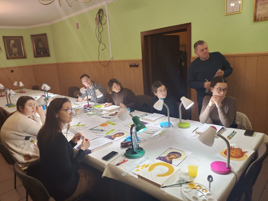 W dniach 17-21.02.2025 r. w Prawosławnej Parafii św. Jana Klimaka w Warszawie odbywa się kolejna edycja kursu ikonograficznego, w którym biorą udział 2 grupy: poranna (seniorzy) oraz wieczorna (osoby zainteresowane). Zajęcia prowadzi o. Aleksy Adamczuk, ikonograf z Wrocławia. W zeszłym roku uczestnicy napisali ikonę Chrystusa w wizerunku Mandylionu, zaś w tym roku stworzą ikonę Matki Bożej Agiosoritisa (scs. Zaszczytnica).