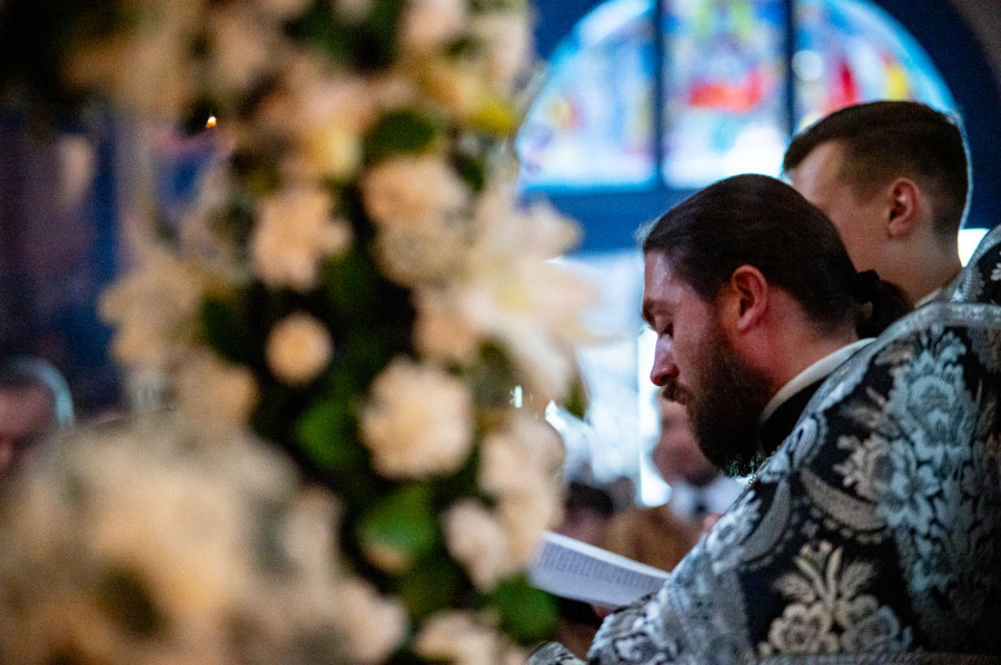 W naszej parafii o godz. 7.00 rozpoczęły się królewskie godziny kanoniczne, zaś o godz. 16.00 odbyła się wieczernia Wielkiego Piątku z wyniesieniem Całunu (scs. płaszczennicy), a od razu po niej jutrznia Wielkiej Soboty. Pięknie przystrojony Grób w obfitości białych kwiatów napełniał wiernych pewnością nadchodzącego Zmartwychwstania. Na koniec słowo wygłosił proboszcz parafii, ks. Adam Misijuk, który zwrócił uwagę słuchaczy na teksty liturgiczne jutrzni. Ukazują one paradoks Stwórcy, który poddaje się cierpieniu zadawanemu przez Swe stworzenie, aby następnie je zbawić.
