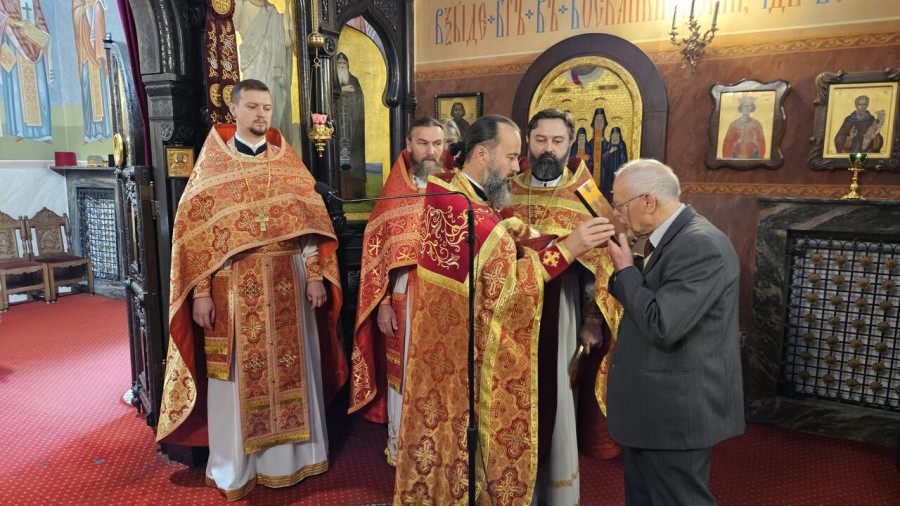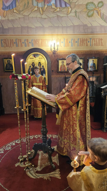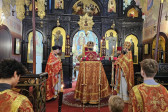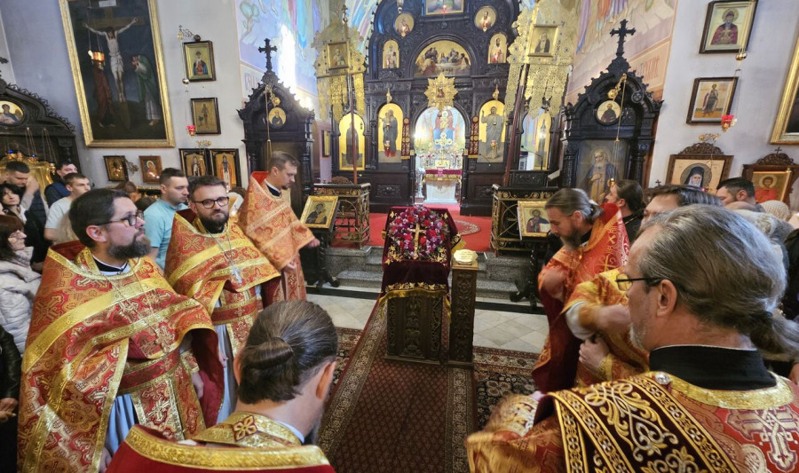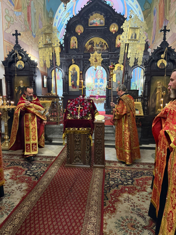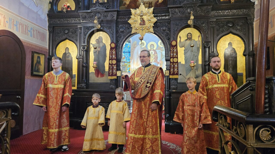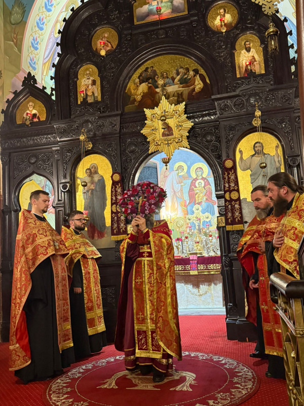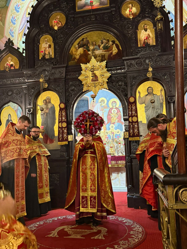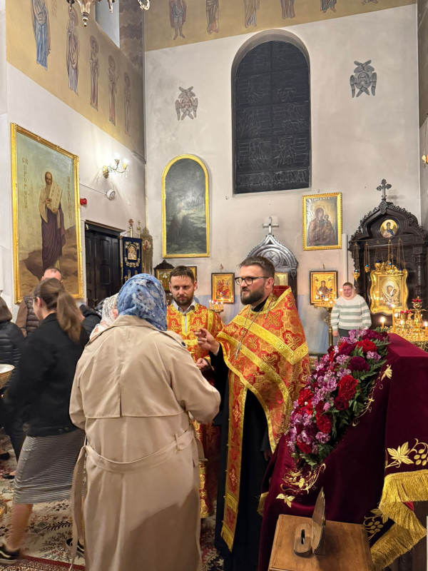 W sam dzień święta (27.09.2025 r.) odbyły się dwie Boskie Liturgie: o godz. 24.00 oraz 9.00. Po głównej Liturgii wszyscy duchowni wyszli na środek świątyni, aby pokłonić się Krzyżowi, który pozostanie na anałojczyku przez 8 dni - do dnia zakończenia święta. Na koniec ks. proboszcz Adam Misijuk w imieniu duchowieństwa, Rady Parafialnej i wszystkich wiernych złożył serdeczne życzenia urodzinowe p. Konstantemu Sterlingow, zasłużonemu parafianinowi, wieloletniemu Członkowi Rady Parafialnej.