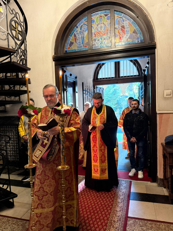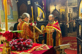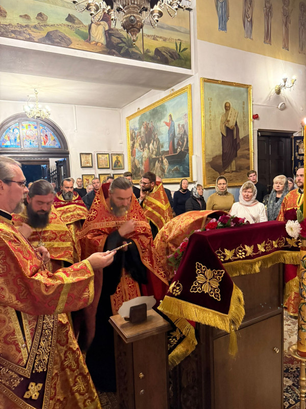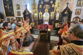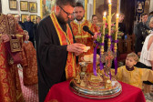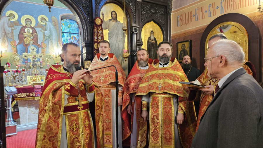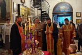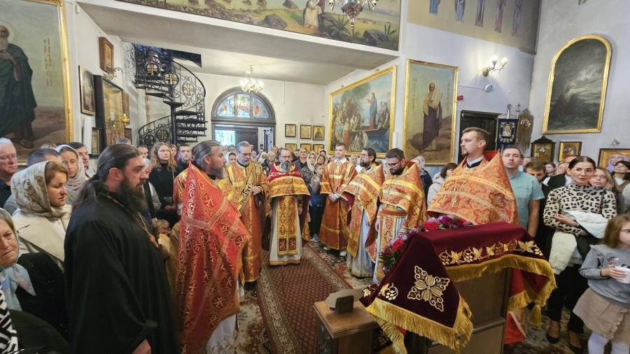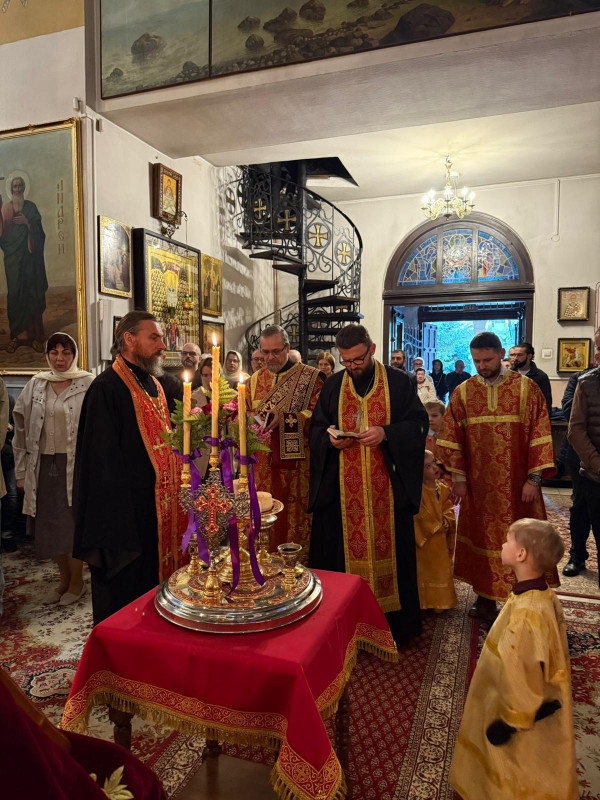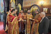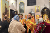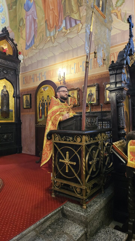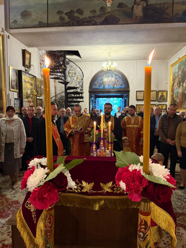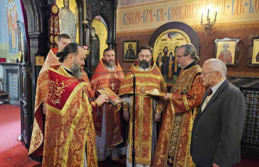 W sam dzień święta (27.09.2025 r.) odbyły się dwie Boskie Liturgie: o godz. 24.00 oraz 9.00. Po głównej Liturgii wszyscy duchowni wyszli na środek świątyni, aby pokłonić się Krzyżowi, który pozostanie na anałojczyku przez 8 dni - do dnia zakończenia święta. Na koniec ks. proboszcz Adam Misijuk w imieniu duchowieństwa, Rady Parafialnej i wszystkich wiernych złożył serdeczne życzenia urodzinowe p. Konstantemu Sterlingow, zasłużonemu parafianinowi, wieloletniemu Członkowi Rady Parafialnej.