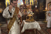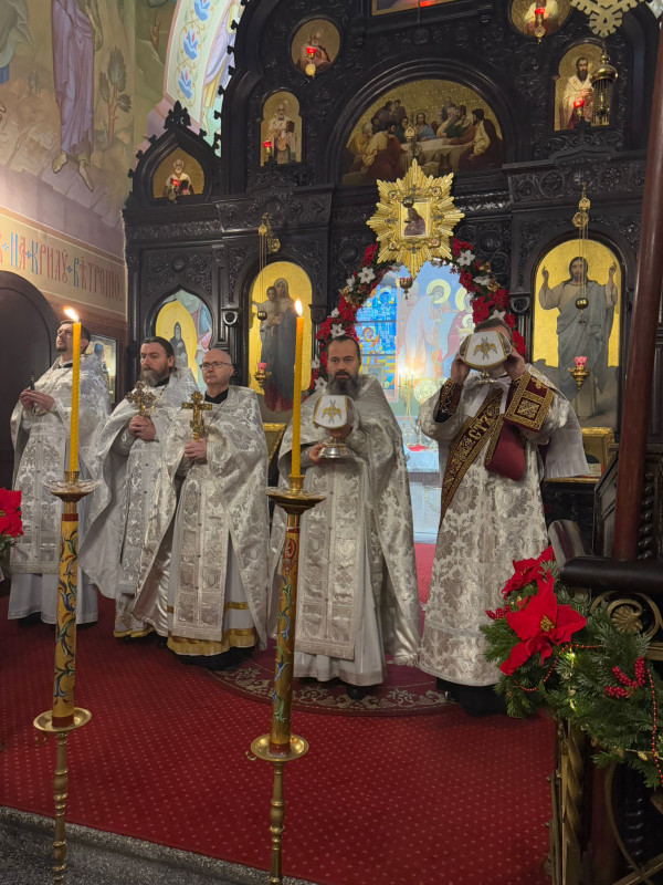 W naszej parafii rozpoczęliśmy świętowanie we wtorek (13.1.2026 r.) o godz. 17.00 od odsłużenia całonocnego czuwania. Następnego dnia, o godz. 9.00 rozpoczęła się Boska Liturgia św. Bazylego Wielkiego, której przewodniczył proboszcz, ks. Adam Misjiuk w asyście całego parafialnego duchowieństwa. Po zakończonym nabożeństwie duchowni wyszli na środek świątyni pokłonić się ikonie św. Bazylego.