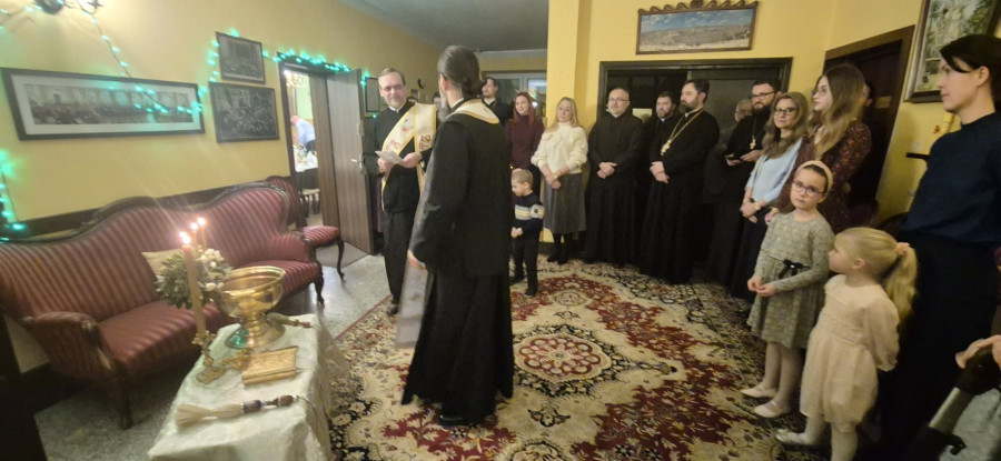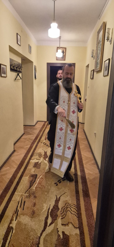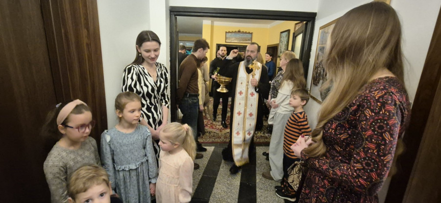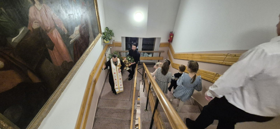Zgodnie z tradycją, po święcie Objawienia Pańskiego, duchowni oświęcają mieszkania wiernych wodą Jordańską. Tak też stało się i w naszym domu parafialnym. W niedzielny wieczór (25.01.2026 r.) wszyscy duchowni i mieszkańcy plebanii wraz z rodzinami, zebrali się w głównym holu na wspólnej modlitwie. Proboszcz parafii ks. Adam Misijuk oświęcił mieszkania, pomieszczenia kancelaryjne i gospodarcze, sale w których prowadzone są lekcji religii, prosfornię, a następnie wygłosił okolicznościowe słowo oraz życzył błogosławieństwa Bożego i zdrowia na rozpoczynający się rok kalendarzowy.