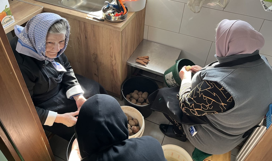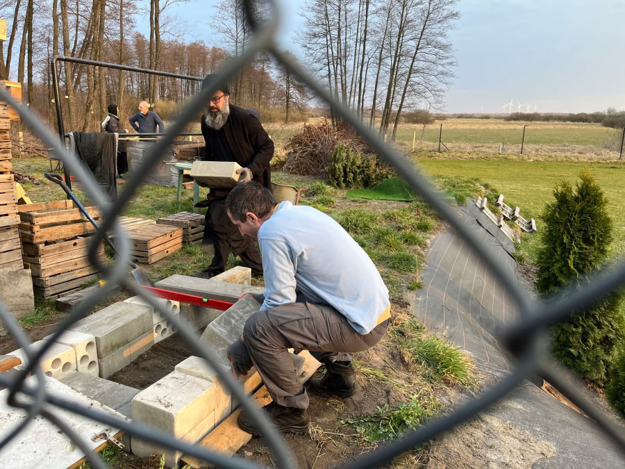 I nie byłoby może w tym nic wyjątkowego, gdyby nie fakt, że akurat Ci pielgrzymi zawsze przyjeżdżają ze swoim duchowym opiekunem - proboszczem parafii, ojcem Adamem Misiejukiem, który na naszym monasterskim podwórku trudzi się na równi ze wszystkimi, ale jak sam powtarza, bez dwóch filarów każdego z tych wyjazdów - Pani Ireny i Pana Grzegorza, z działającego przy parafii stowarzyszenia "Wierni Tradycji Pokoleń", nic by nie było.