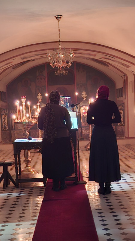 Jest już głęboka noc, dopalają świece, które troskliwe ręce wymieniają w świecznikach. Ci, którzy przeczytali swoje katyzmy, siadają w stasidiach i słuchają.