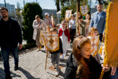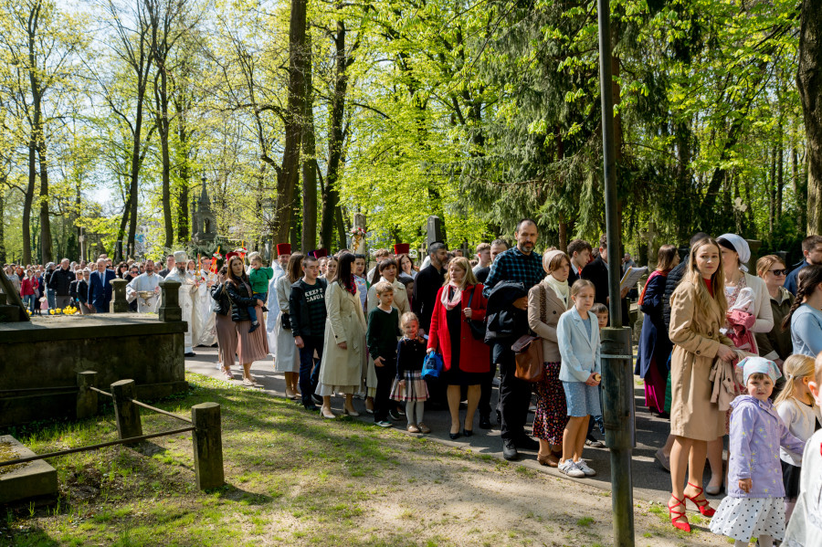 Następnie wszyscy udali się na panichidę przed świątynią oraz uroczystą procesję wokół cerkwi i wśród alejek cmentarza, podczas której dzieci głosiły fakt Zmartwychwstania Chrystusa niosąc dumnie znak krzyża na chorągwiach. Po procesji odbyła się agapa w domu parafialnym.