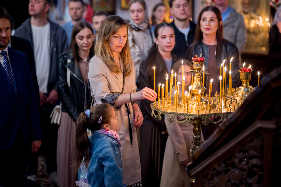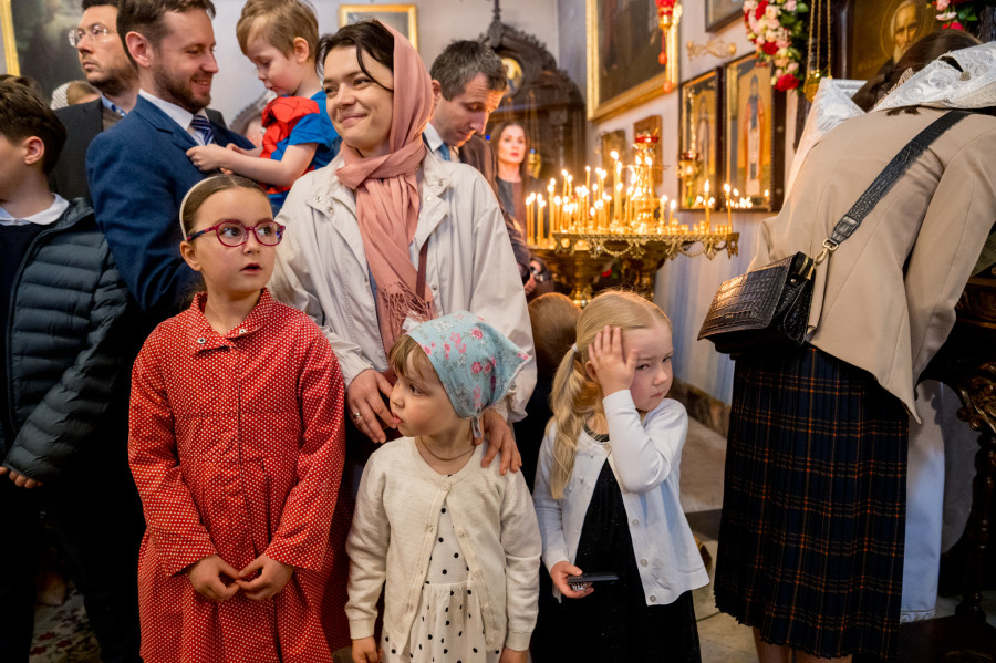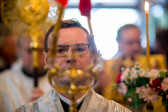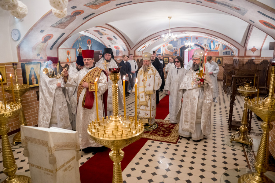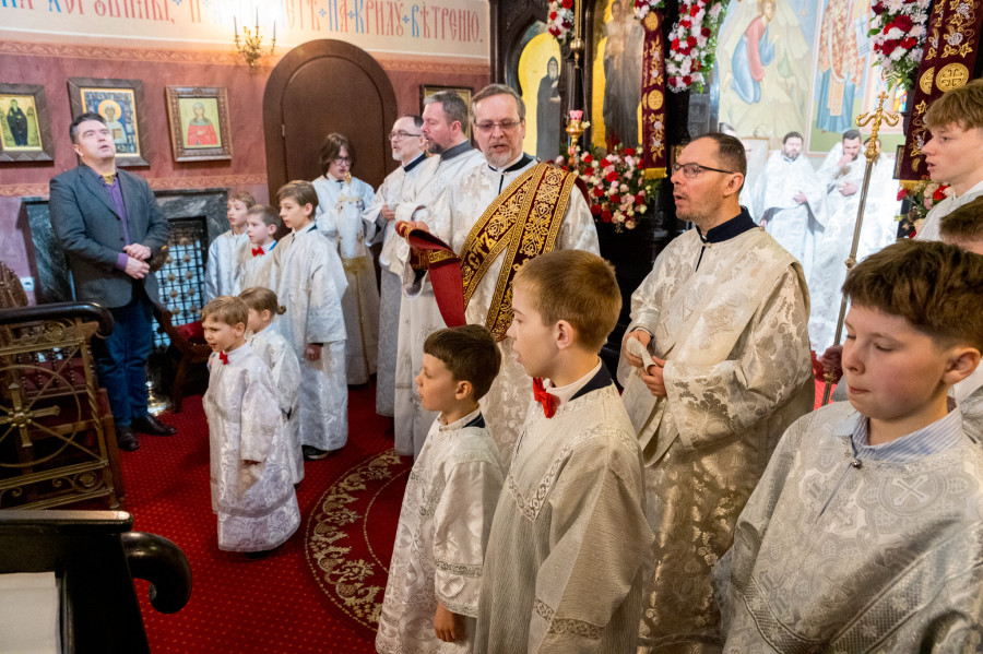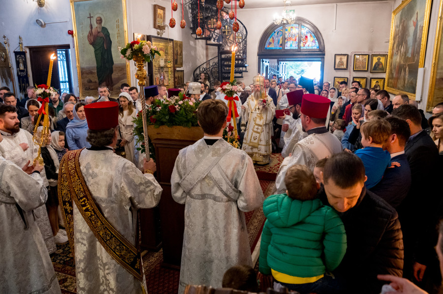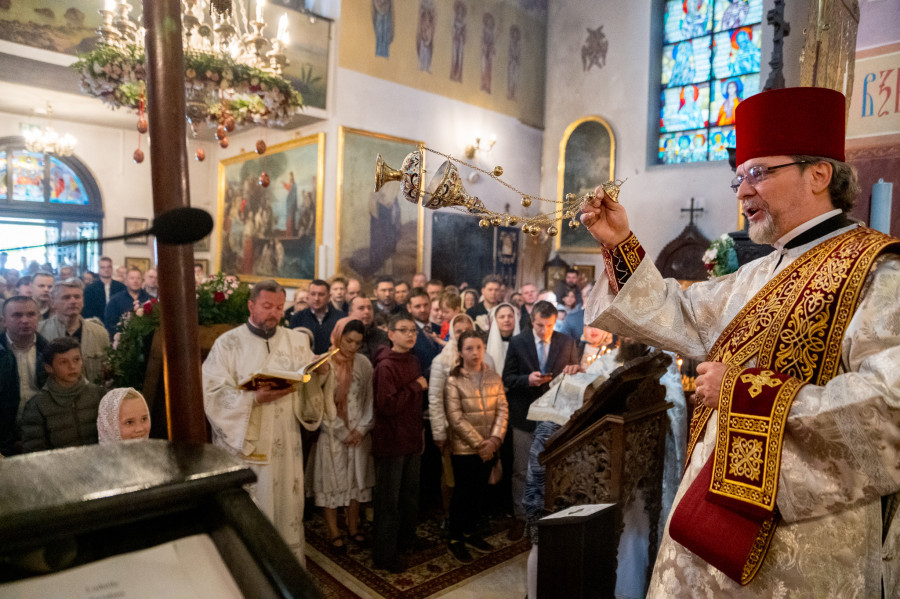 Świętowanie rozpoczęliśmy od całonocnego czuwania o godz. 17.00 w sobotę (18.04.2026 r.). Następnego dnia odbyły się 2 Boskie Liturgie: o godz. 7.00 oraz 9.00. Głównemu nabożeństwu przewodniczył Jego Eminencja Wielce Błogosławiony Sawa, Metropolita Warszawski i Całej Polski. Władykę przywitały dzieci, następnie u progu świątyni młodzież oraz reprezentanci Rady Parafialnej. To wielka radość, że Władyka jest w nami w tak ważnym dniu. Po Świętej Ewangelii, słowo do wiernych wygłosił o. Pantelejmon (Karczewski), który przybliżył znaczenie Antypaschy w rozumieniu semantycznym oraz teologicznym. Na zakończenie nabożeńśtwa J.E. metr. Sawa podkreślił jak ważna jest wiara w życiu każdego człowieka, i nie ma tak naprawdę ludzi niewierzących. Proboszcz wolskiej parafii, ks. Adam Misiujuk podziękował hierarchom za przewodnictwo w modlitwie oraz przykład wiary, a także wszystkim którzy trudzili się w przygotowaniu święta, Radzie Parafialnej, duchownym i wszystkim zebranym wiernym.