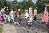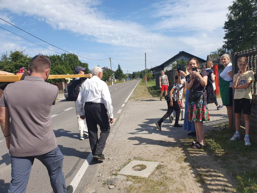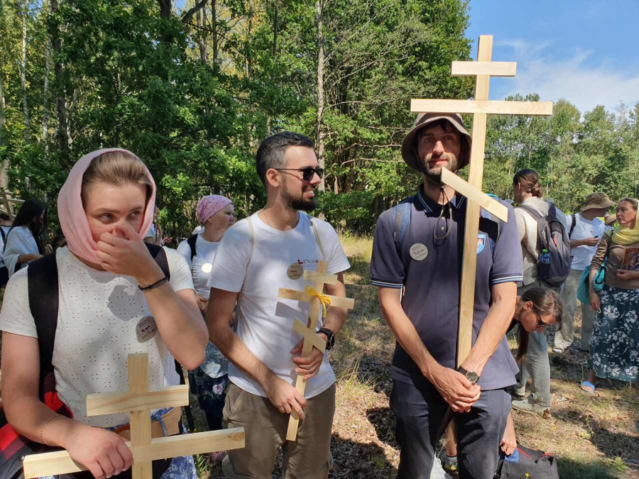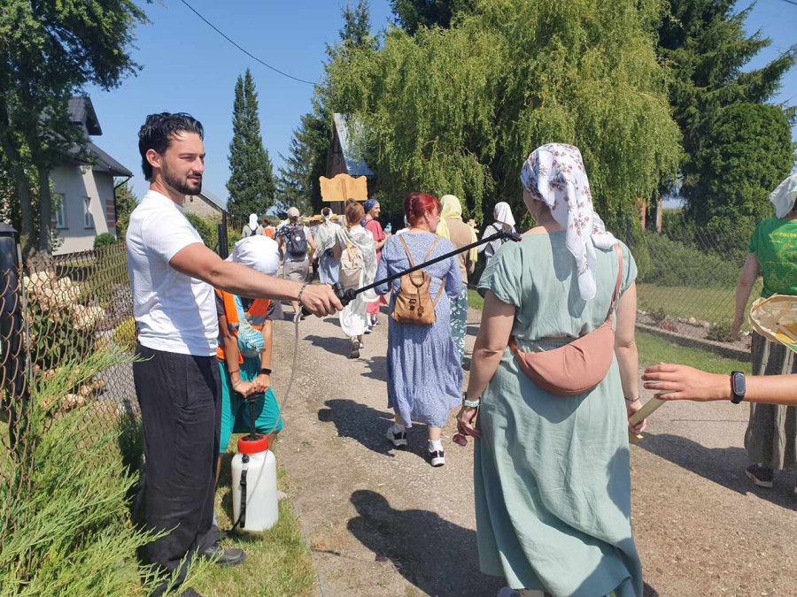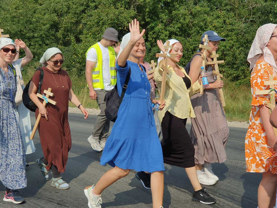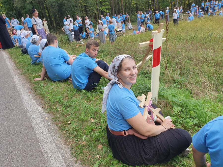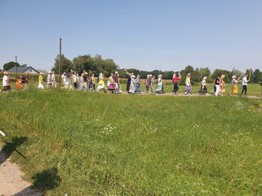 Na drewnianym krzyżu pierwsze słowa modlitwy, które towarzyszą nam przez całe życie, każdego dnia i są znakiem naszej wiary, jestestwa, tego – kim jesteśmy. Będziemy je wspólnie i osobiście rozważali w czasie tegorocznej Pielgrzymki, ofiarowanej pamięci Ojców Cerkwi, którzy w trakcie I Soboru Powszechnego opracowali pierwszą część naszego Wyznania Wiary. Czując na sobie błogosławiące gesty Chrystusa i świętych z ikon w cerkwi św. Apostołów Piotra i Pawła w Wołominie, skąd tradycyjnie wyrusza warszawska Pielgrzymka, i błogosławieństwo Jego Eminencji Wielce Błogosławionego Sawy, Metropolity Warszawskiego i całej Polski – ruszamy w drogę. Trasa – znajoma, te same miejsca, gdzie celebrowane są św. Liturgie, te same miejsca noclegów. Wielu znajomych i przyjaciół wokół, dobrze znane słowa modlitw i pątniczych pieśni. A jednak każda Pielgrzymka jest inna. Bo my sami zmieniamy się – niesiemy inny bagaż trosk i duchowych rozterek, nowe intencje czy – uwierające jak niewygodne buty – grzechy. W relacjach z Pielgrzymek widzimy najczęściej radosną gromadę pątników z krzyżami w dłoniach i na ramionach oraz malownicze mazowiecko – podlaskie pejzaże. Zobaczmy teraz szczegóły pątniczego wędrowania ku Chrystusowi – asfaltowe kilometry dróg, liczne, choć drobne „tradycyjne” momenty – na które się czeka, ludzi, którzy goszczą pielgrzymów całym sercem i tych, którzy pokrzepiają ich po drodze uśmiechami i pozdrowieniem Szczęść Boże! Szczegóły ważne dla pątników i składające się na pięć dnia w roku, na które czeka się – cały rok!