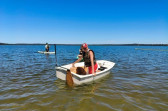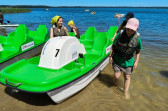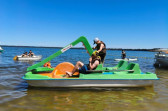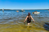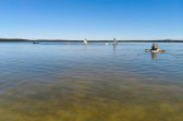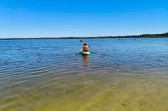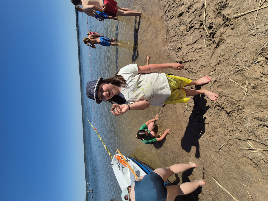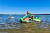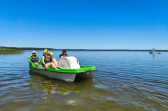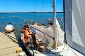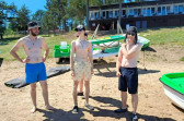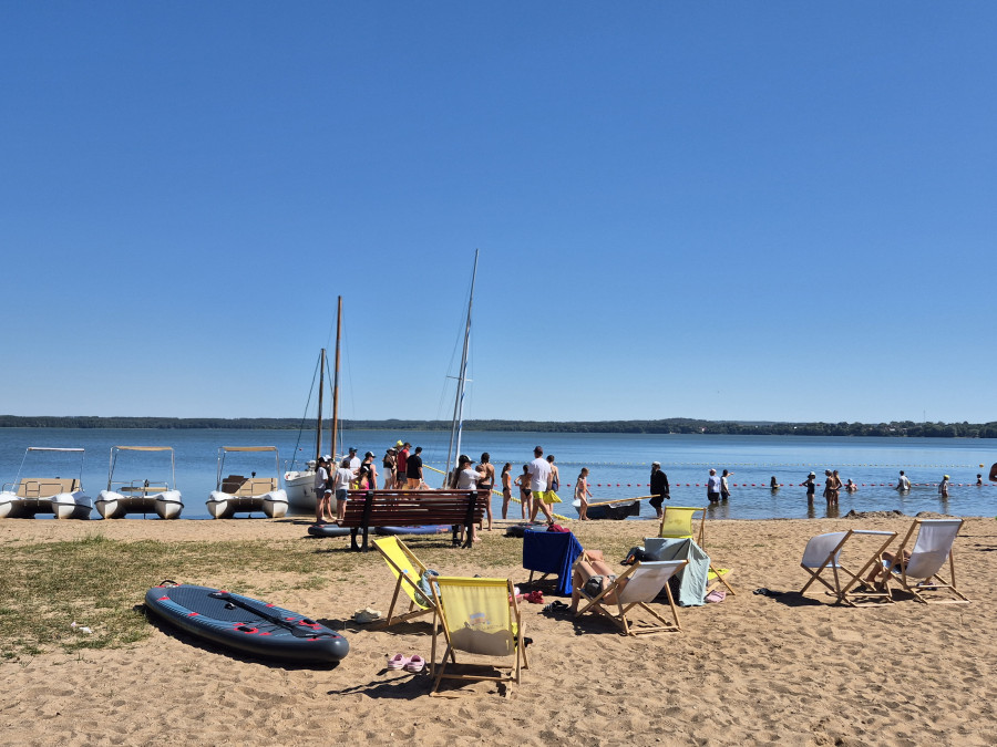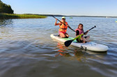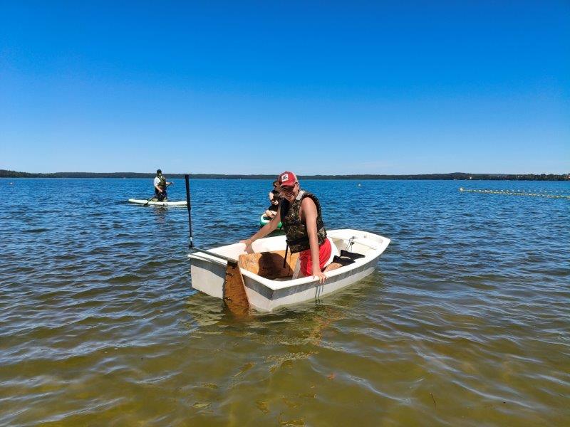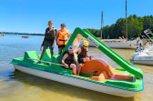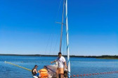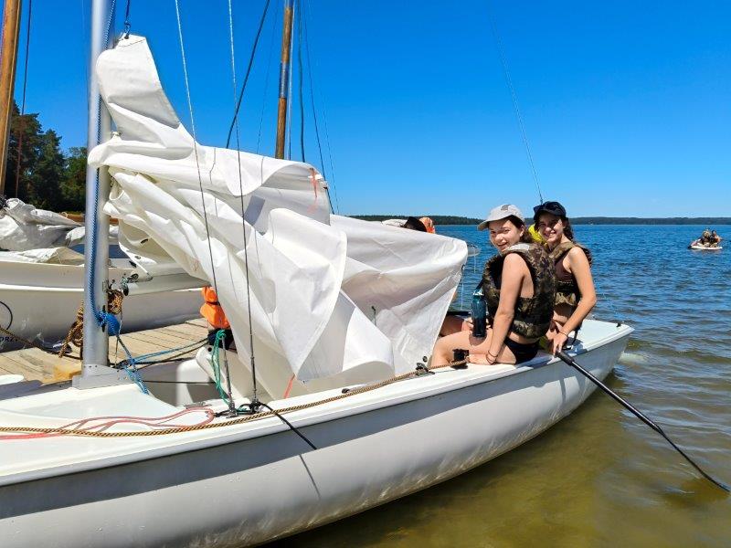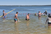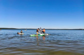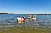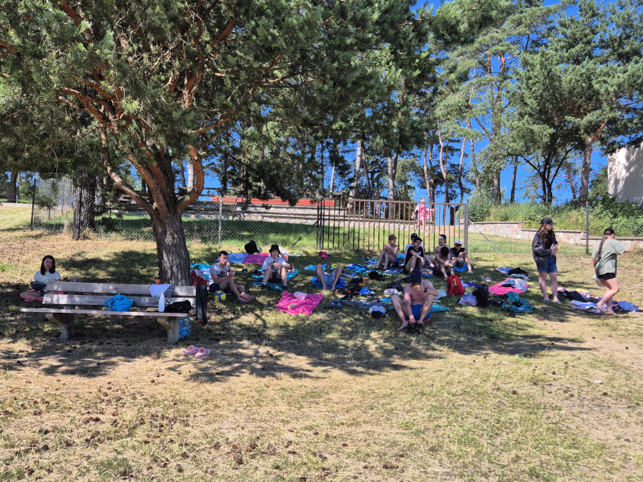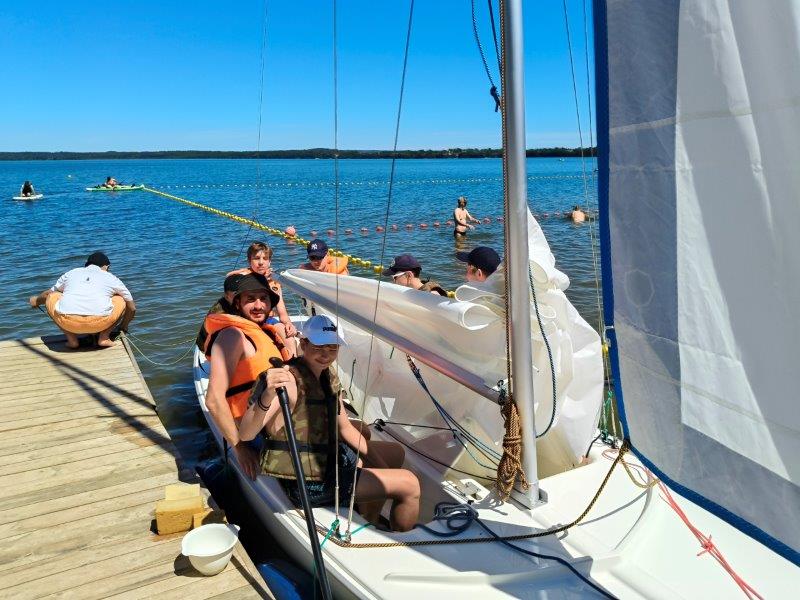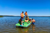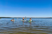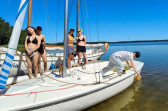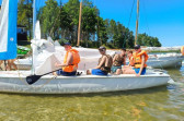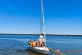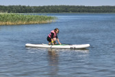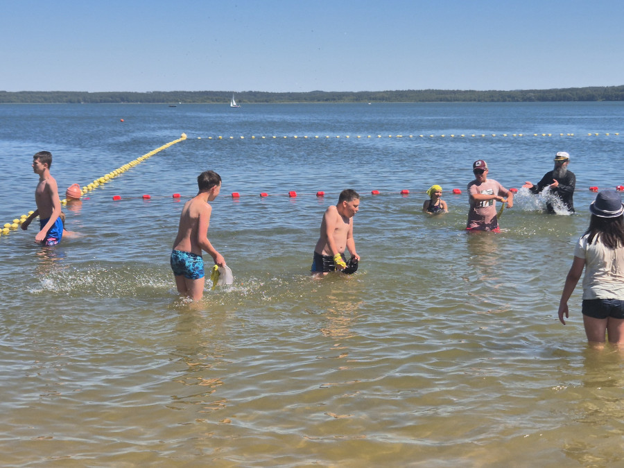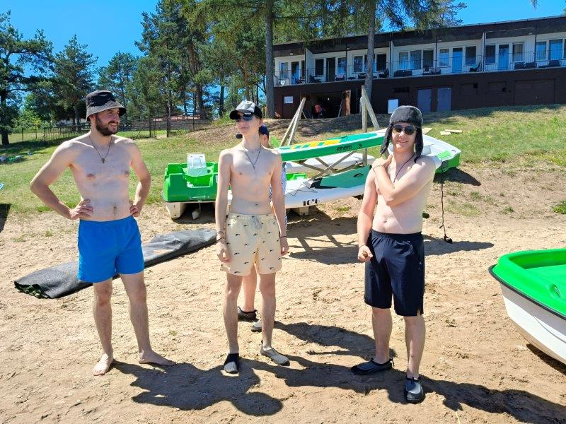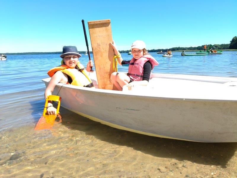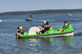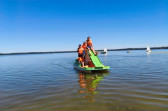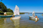 Piękna słoneczna pogoda umożliwiła nam skorzystanie z wszystkich atrakcji. Wszycy rozpoczęliśmy od kąpieli w jeziorze. Ogromną popularnością cieszyły się rowery wodne szczególnie te ze zjeżdżalnią i deski SUP. Następna grupa pogłębiała umiejętności pływania na łódkach typu "Optymist" z żaglem i na łódce typu "Omega" pod okiem naszego instruktora Jakuba i p. Tomka. W przerwach były gry w piłkę nożną, siatkową, koszykową.