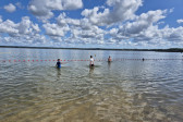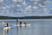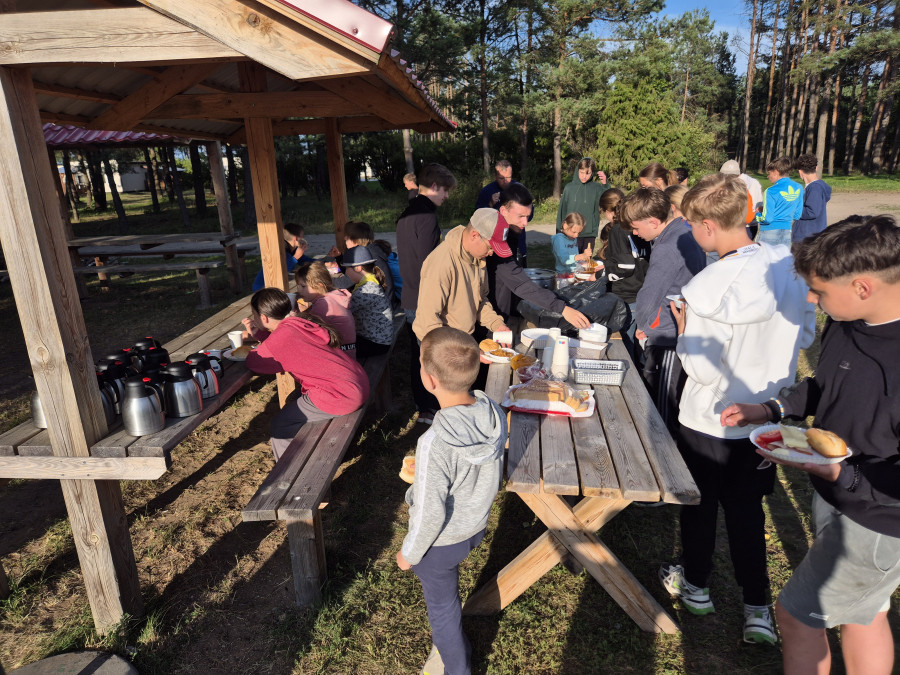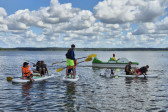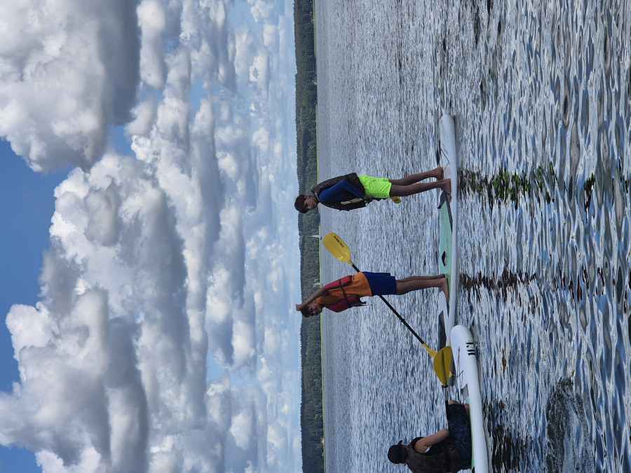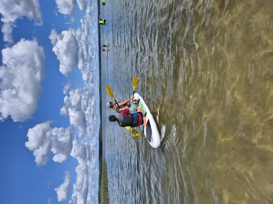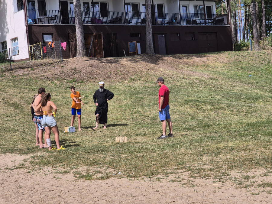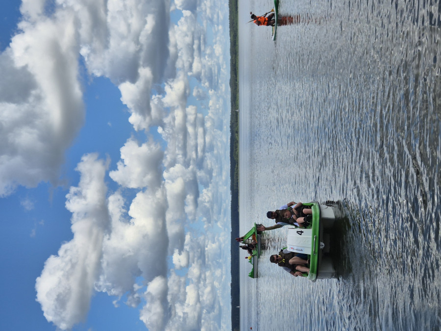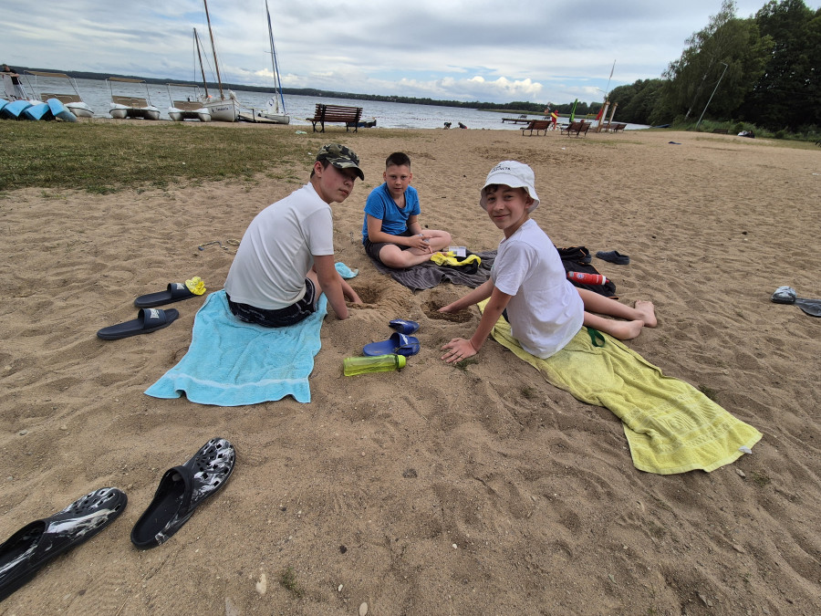 W tym czasie, gdy część z nas pływała na łódkach, pozostali kąpali się w wodzie, pływali na rowerach wodnych i deskach SUP, kajakach. W przerwach były gry i zabawy. Dzisiaj nauczyliśmy się gry w kręgle fińskie.