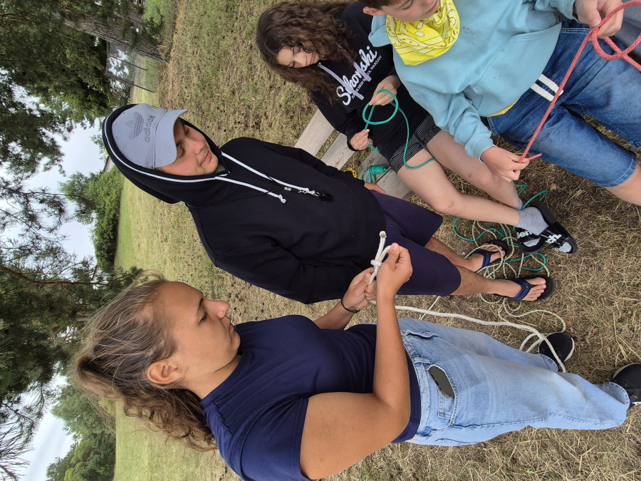 Po ciszy poobidniiej korzystaliśmy jeszcze z uroków plaży. Nasz instruktor żeglarstwa p. Jakub chętnych uczyłył wykonywania węzłów niezbędnych w żeglarstwie. Jedna grupa udała się z p. Tomkiem na gminny kort tenisowy. Przed kolacją były zakupy w sklepie.