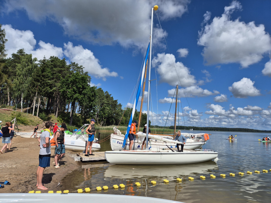 Pogoda, chociaż nie była taka jak poprzedniego dnia, to również skorzystaliśmy z kąpieli w jeziorze i mieliśmy kolejny dzień kursu żeglarskiego. Na początku było pływanie na "Omedze" a następnie na "DeZecie". Wszyscy poradzili sobie doskonale.